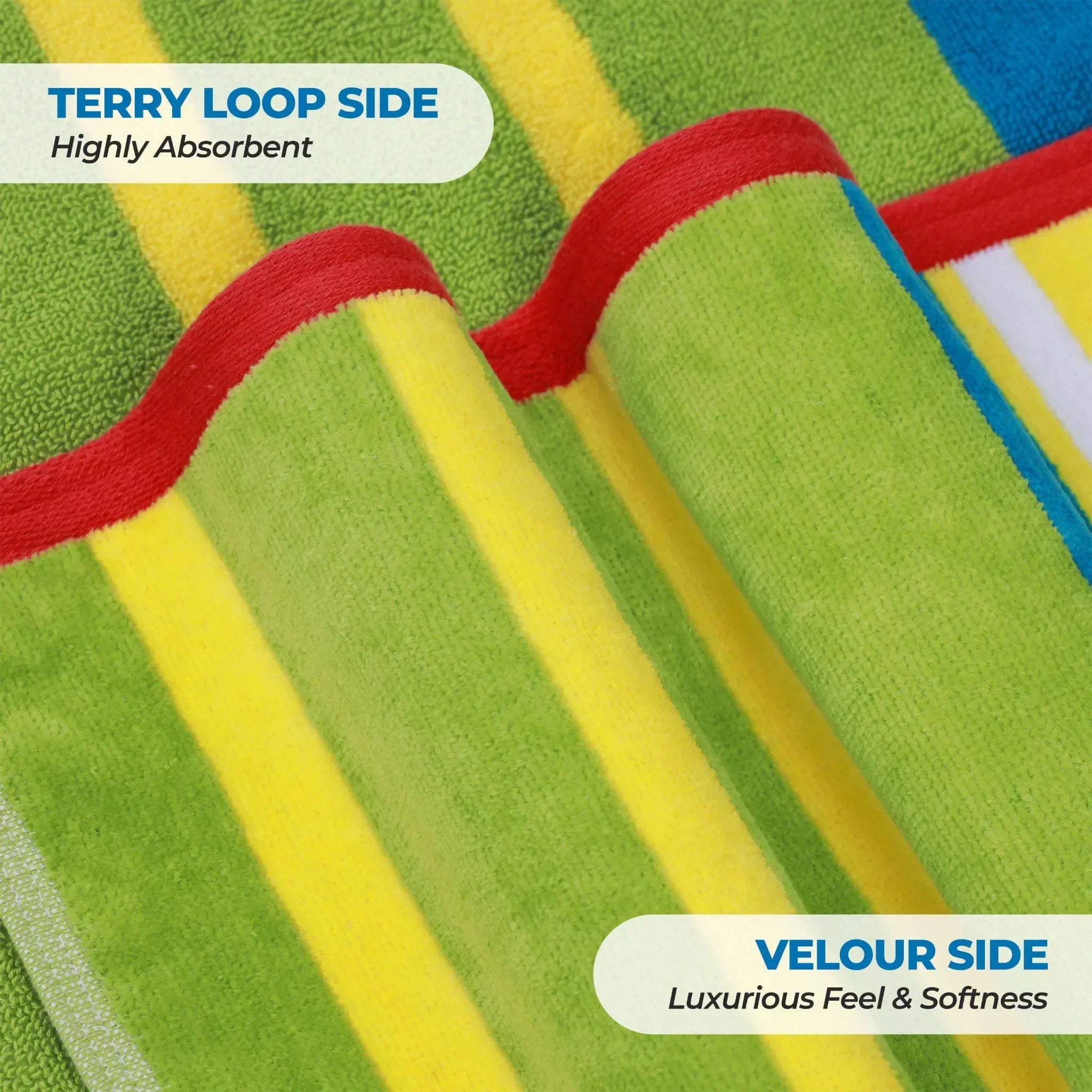 Dry off faster after a dip in the ocean or the pool with the Mira Striped Cotton Beach Towel. Crafted from Cotton, the extra large size of each towel covers more of you to keep you cozy. This beach towel has absorbent terry on one side and plush velour on the reverse to repel water and sand.