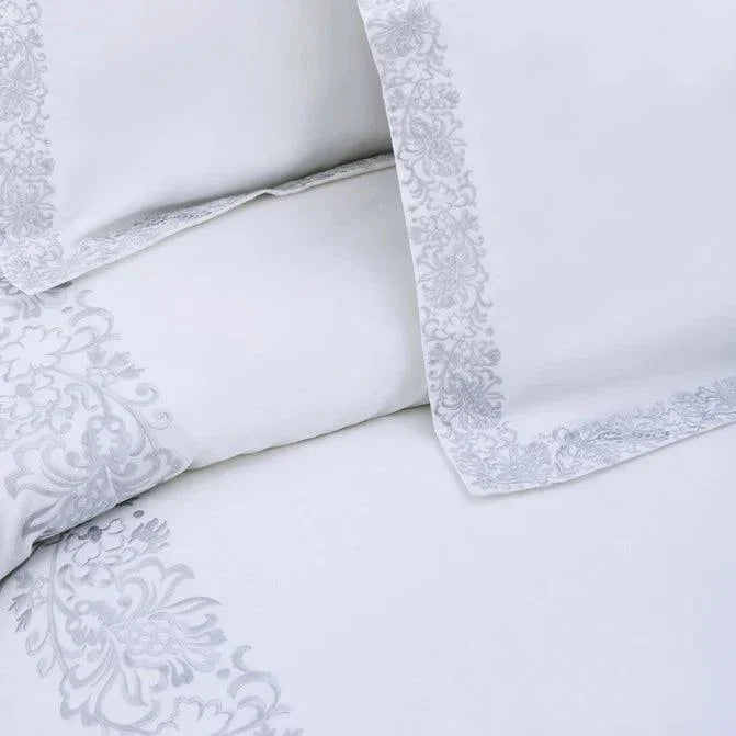 The 100% Cotton Moon Lawn Embroidered Duvet Cover Set is an embroidered Egyptian cotton duvet cover set that delivers luminous elegance, long-lasting comfort, and exquisite craftsmanship.
