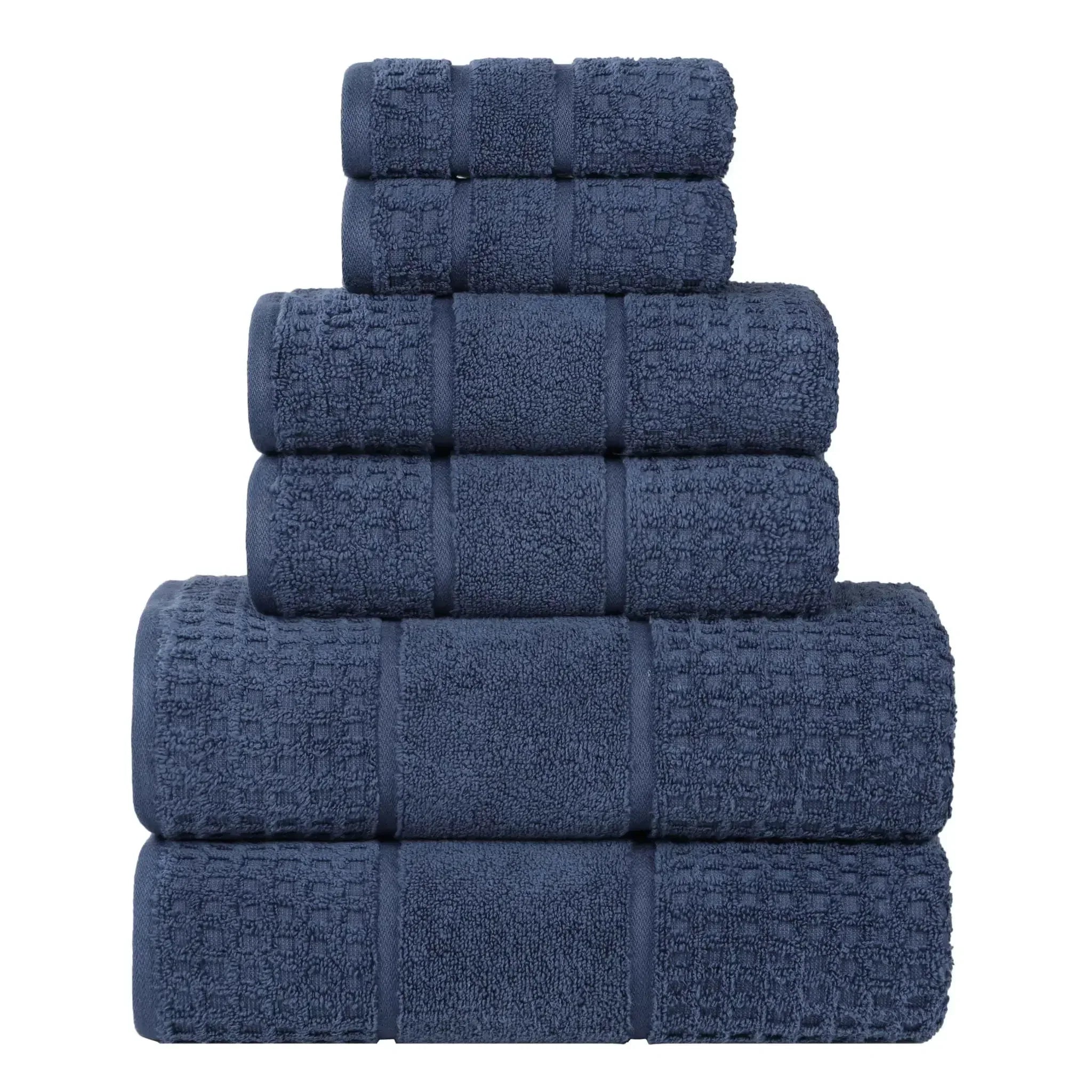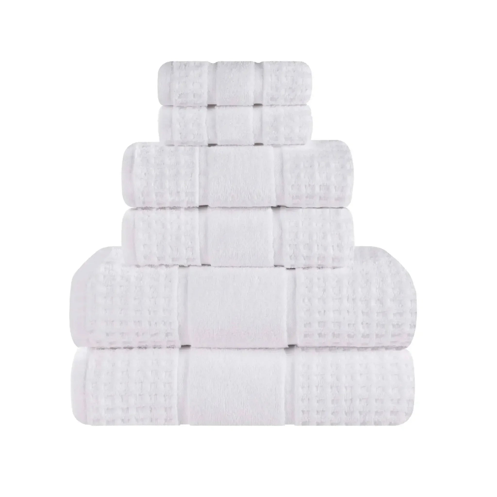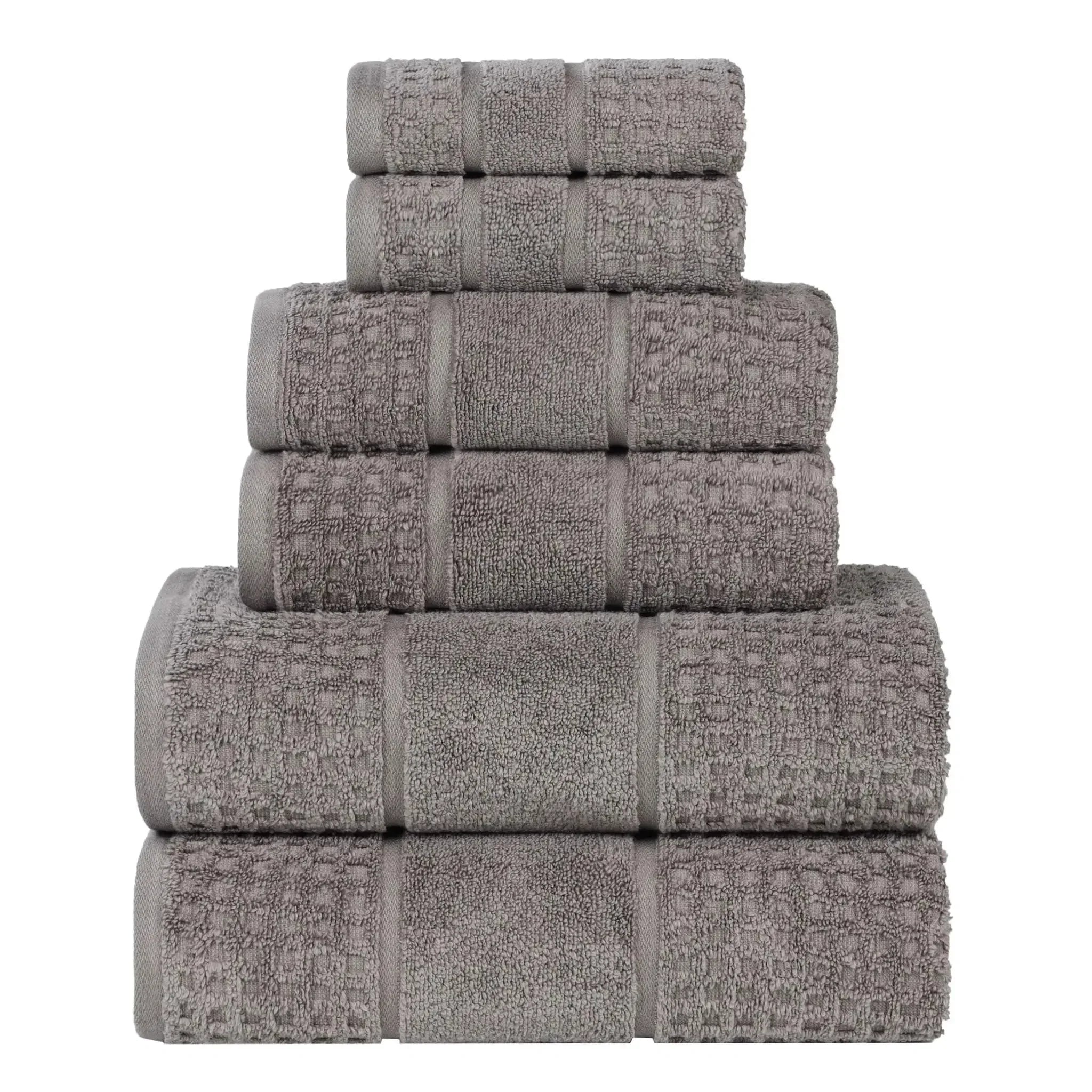 Discover everyday luxury with the Napa 6-Piece Towel Set, crafted from premium zero twist cotton. This unique material creates incredibly soft, fast-drying towels that feel gentle and plush against your skin. The decorative waffle honeycomb border adds a touch of sophisticated texture, making this set a beautiful addition to any bathroom.