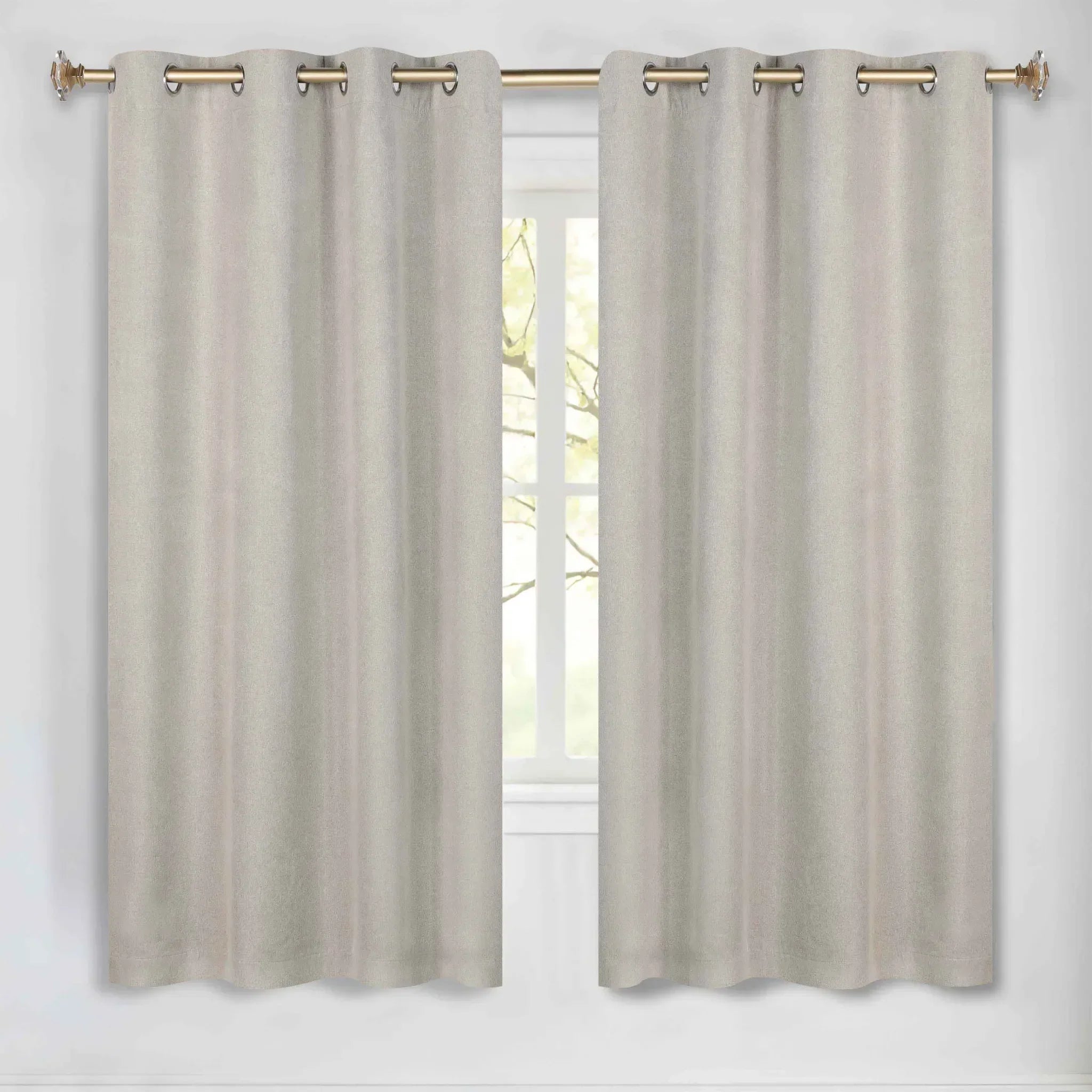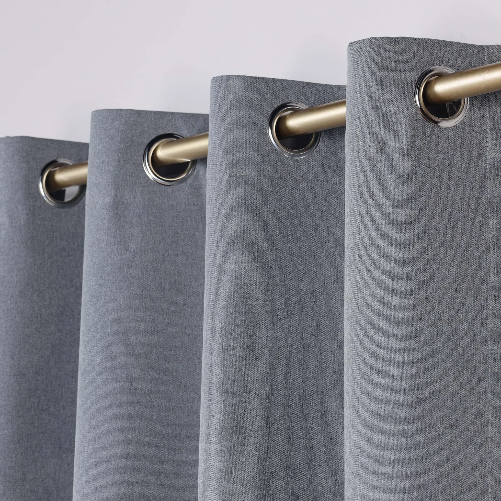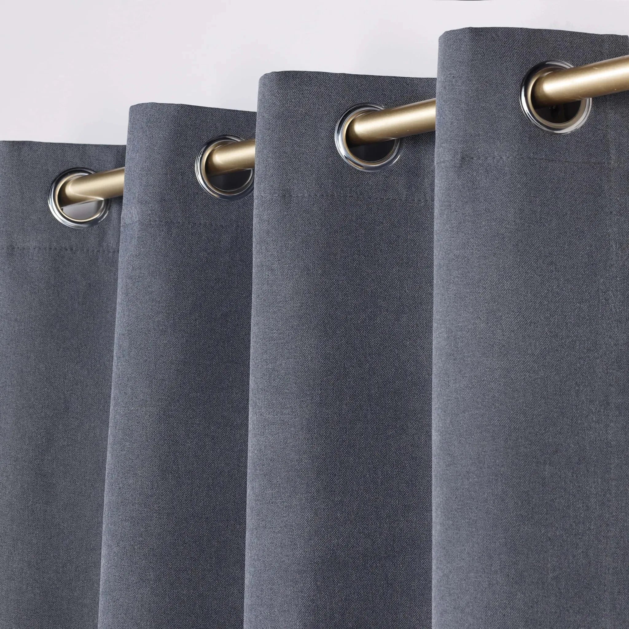 Create a serene and cozy atmosphere in your home with the Neal 100% Blackout Curtain Set. These thick, three-layer curtains provide complete blackout protection and thermal insulation to maintain a cozy room temperature. Featuring a sleek stainless steel grommet header, they effortlessly complement any decor while blocking sunlight and enhancing privacy.