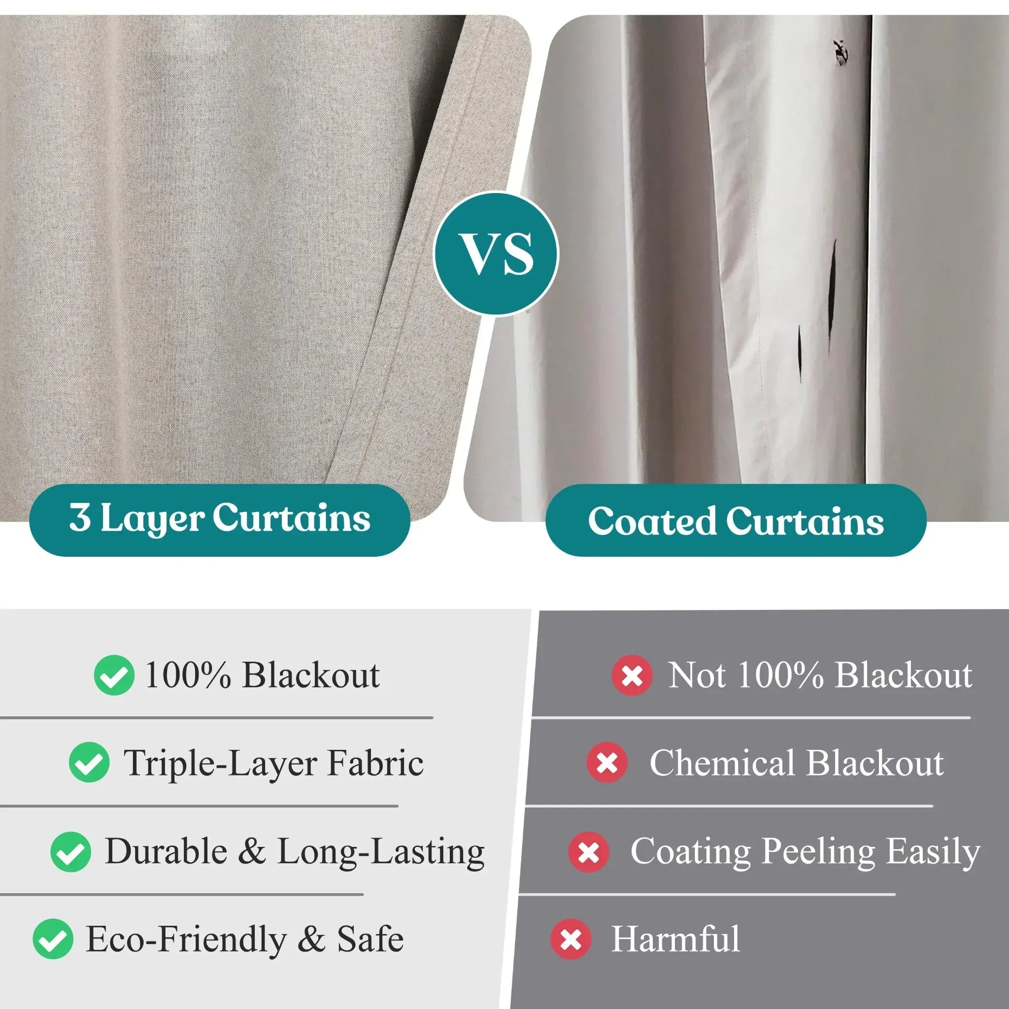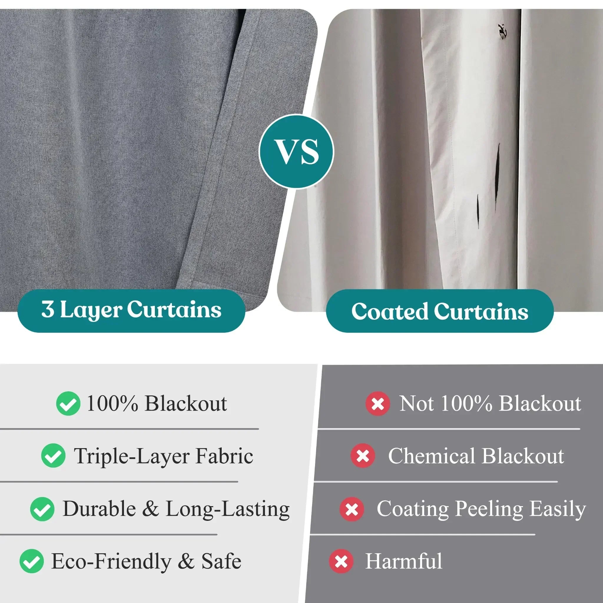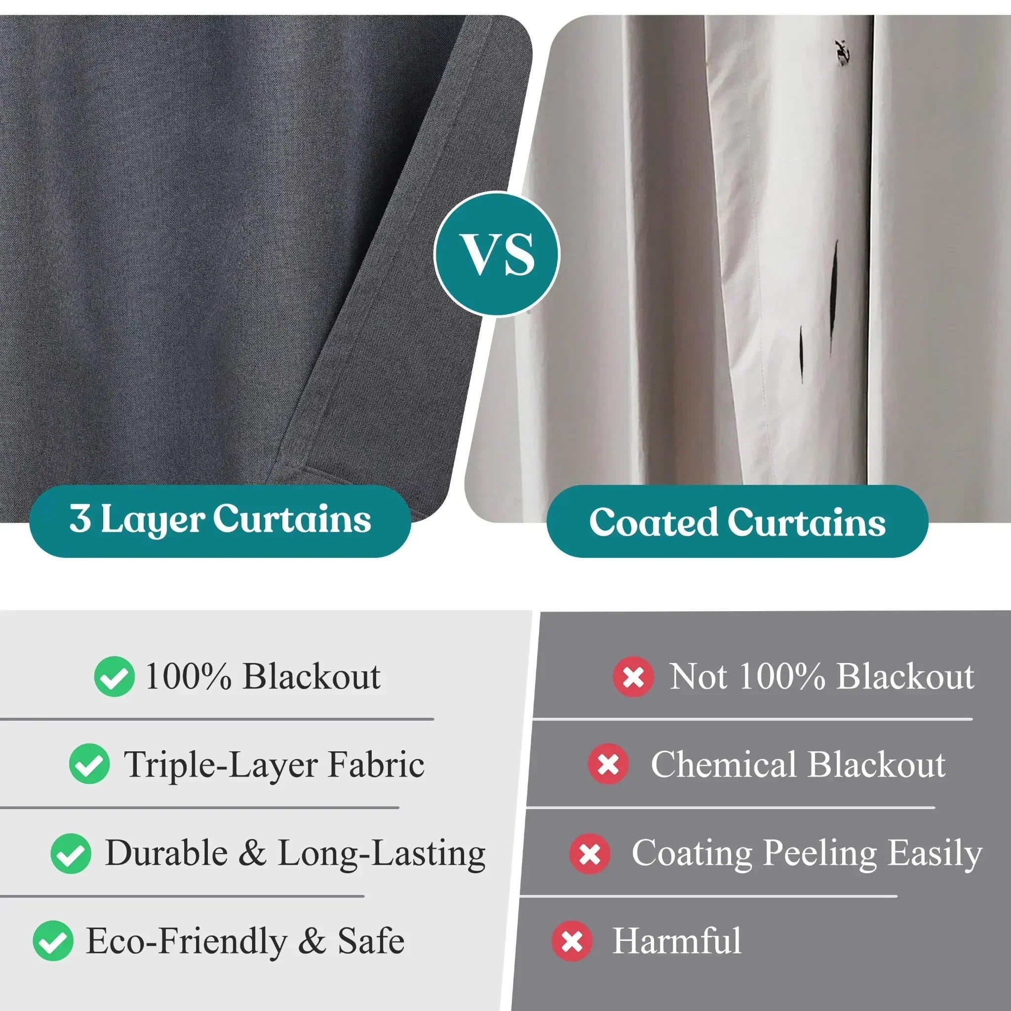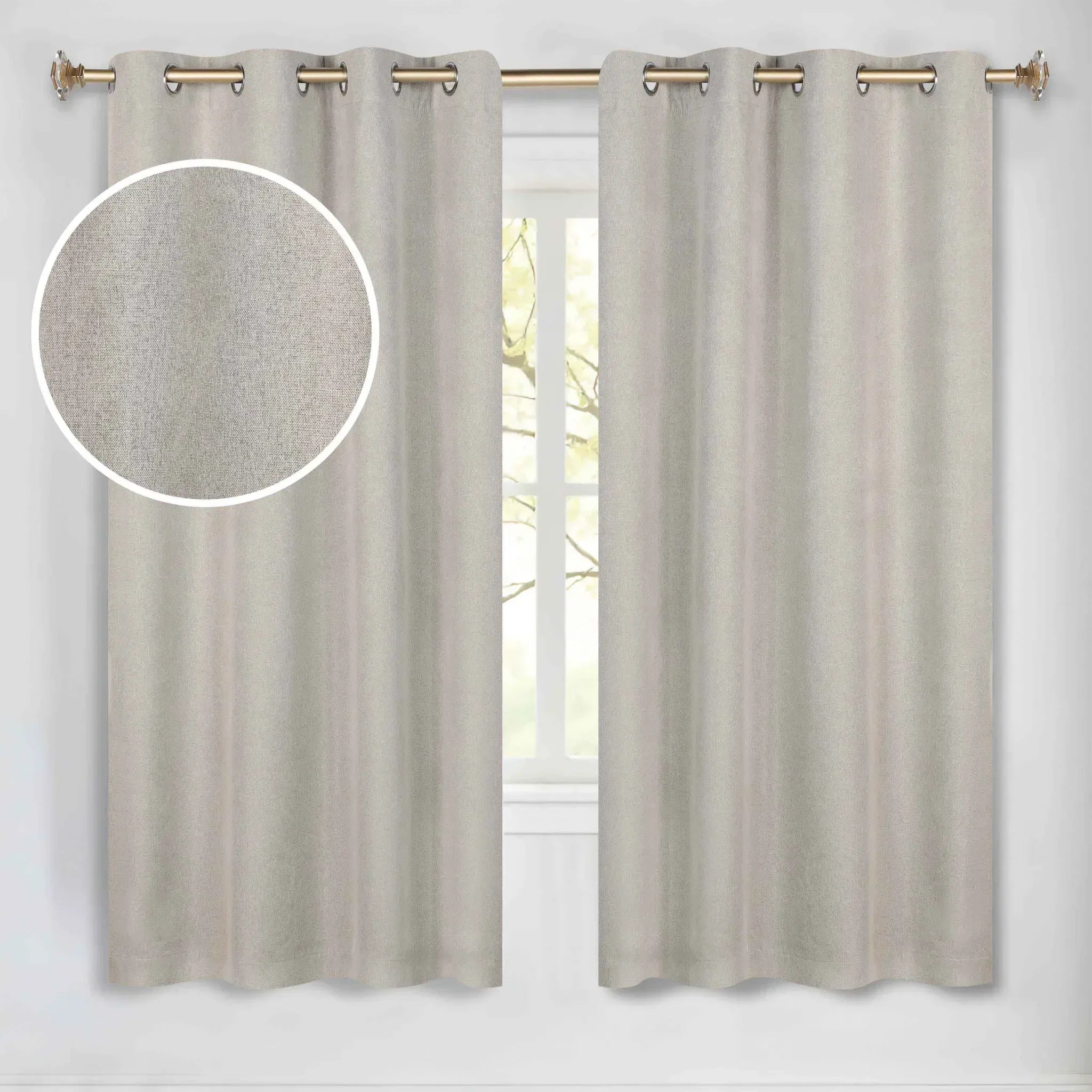 Create a serene and cozy atmosphere in your home with the Neal 100% Blackout Curtain Set. These thick, three-layer curtains provide complete blackout protection and thermal insulation to maintain a cozy room temperature. Featuring a sleek stainless steel grommet header, they effortlessly complement any decor while blocking sunlight and enhancing privacy.