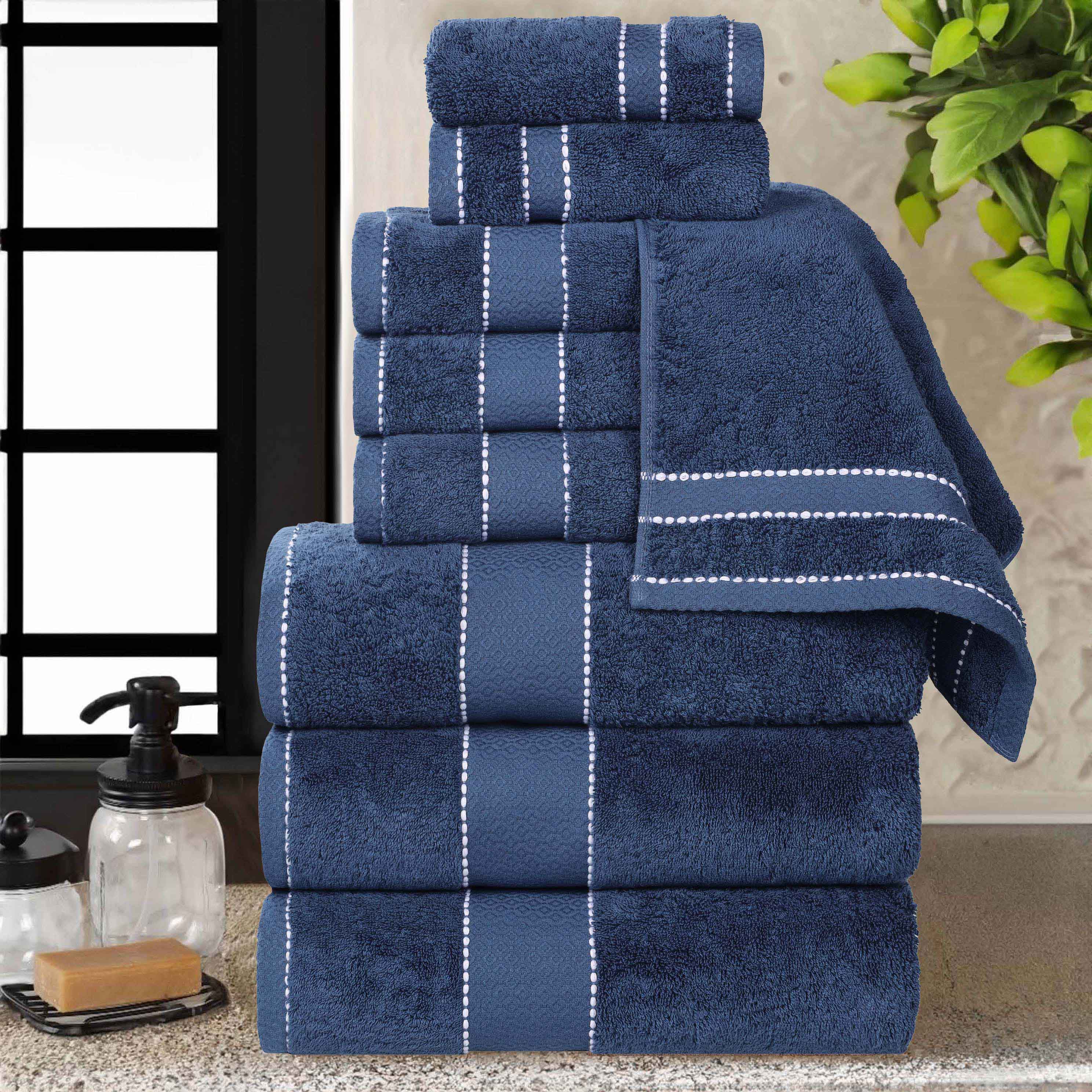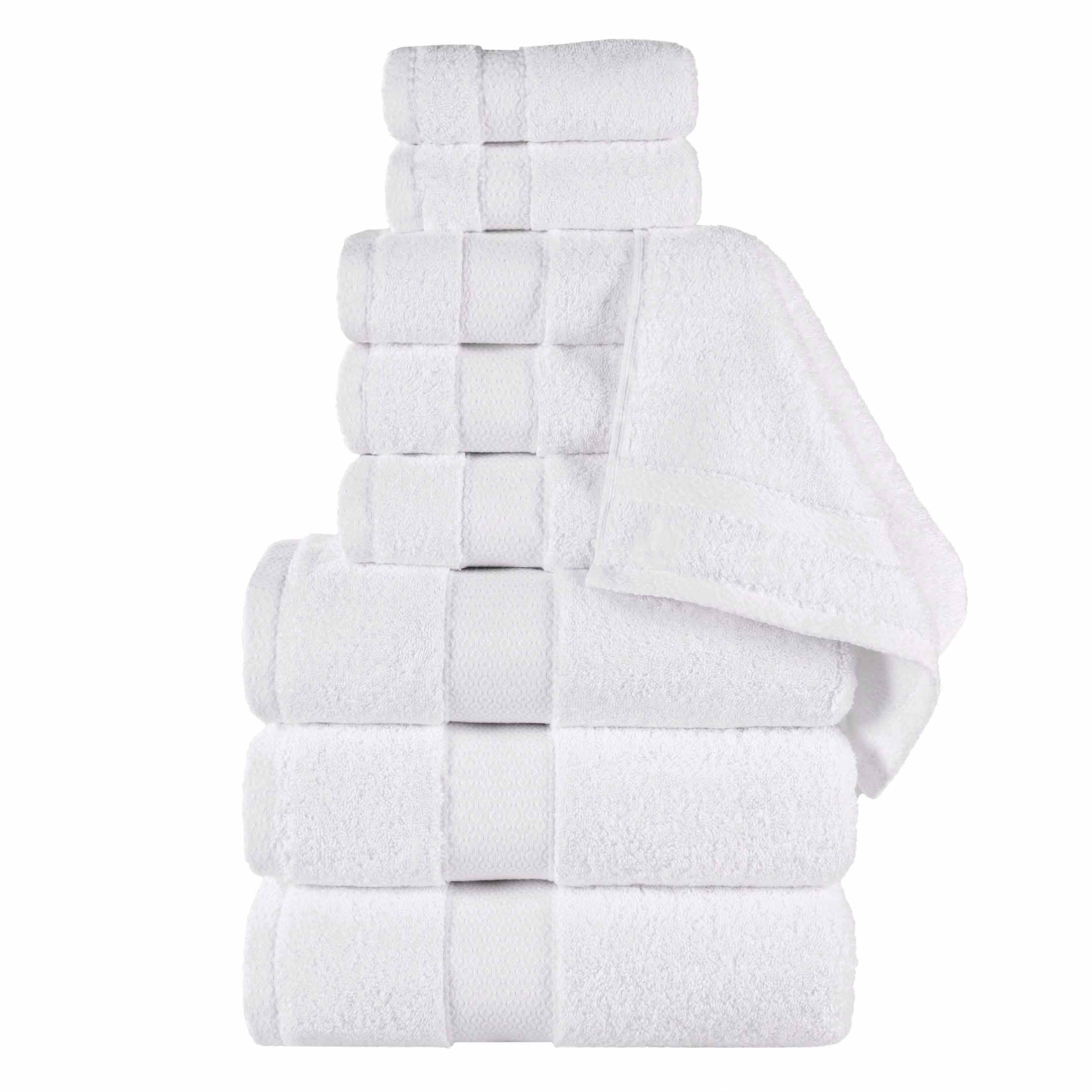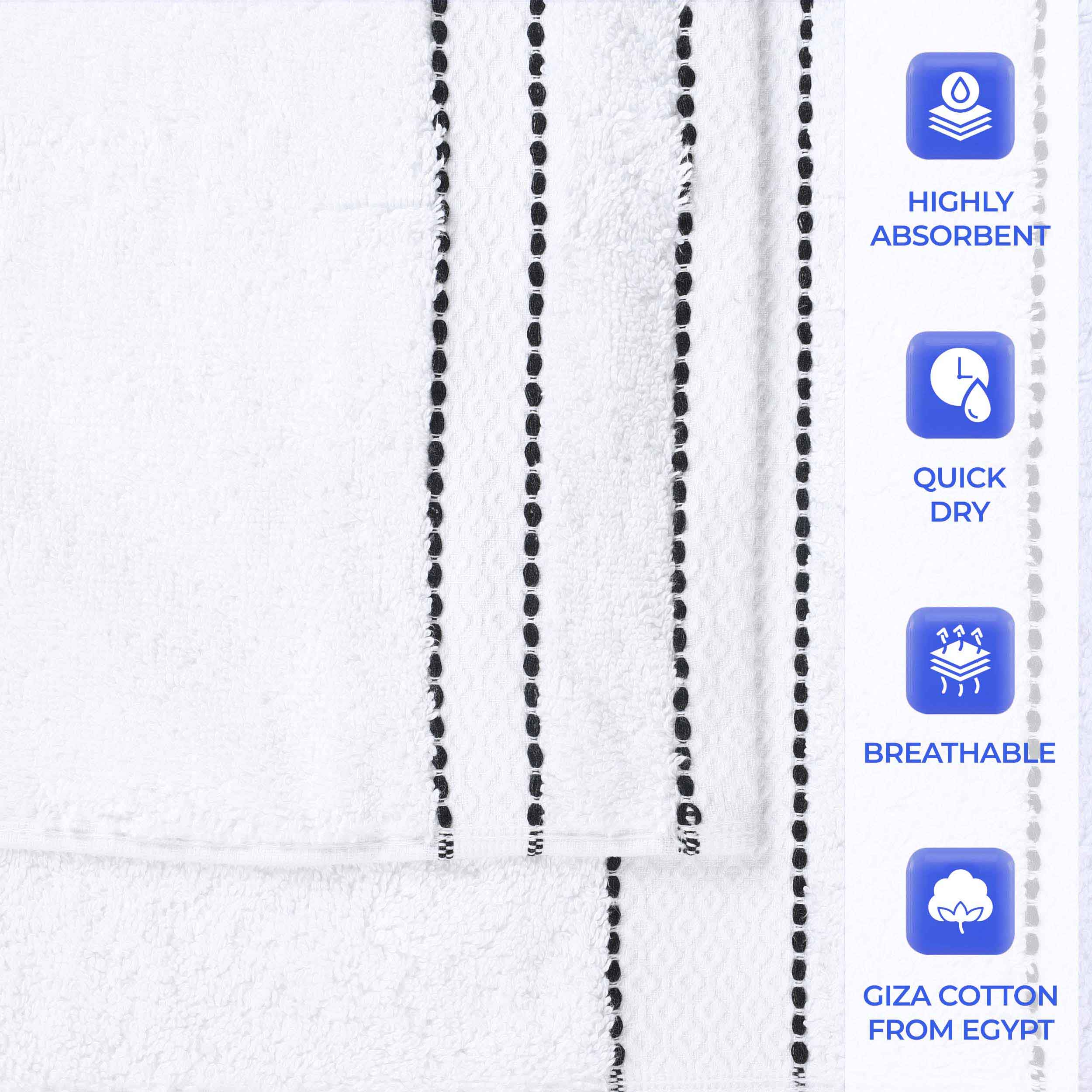 Each towel features a sophisticated diamond dobby border and delicate white stitching that adds timeless elegance to your bathroom decor.