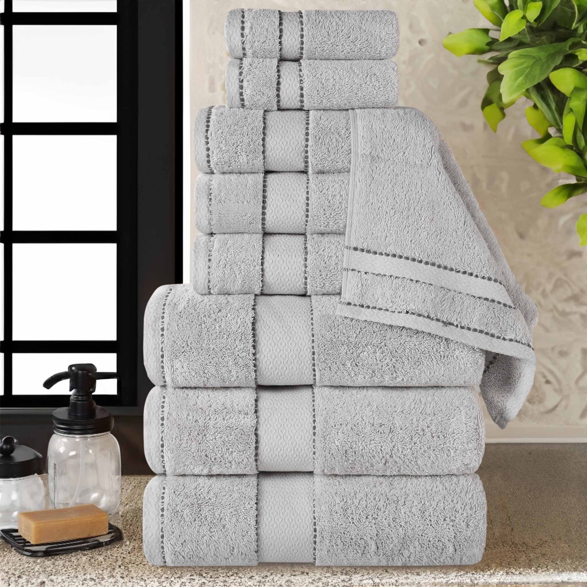 The Egyptian Giza Cotton Plush Heavyweight Soft Towel Set 9 Piece offers the ultimate towel bathroom set for those seeking luxury and volume.