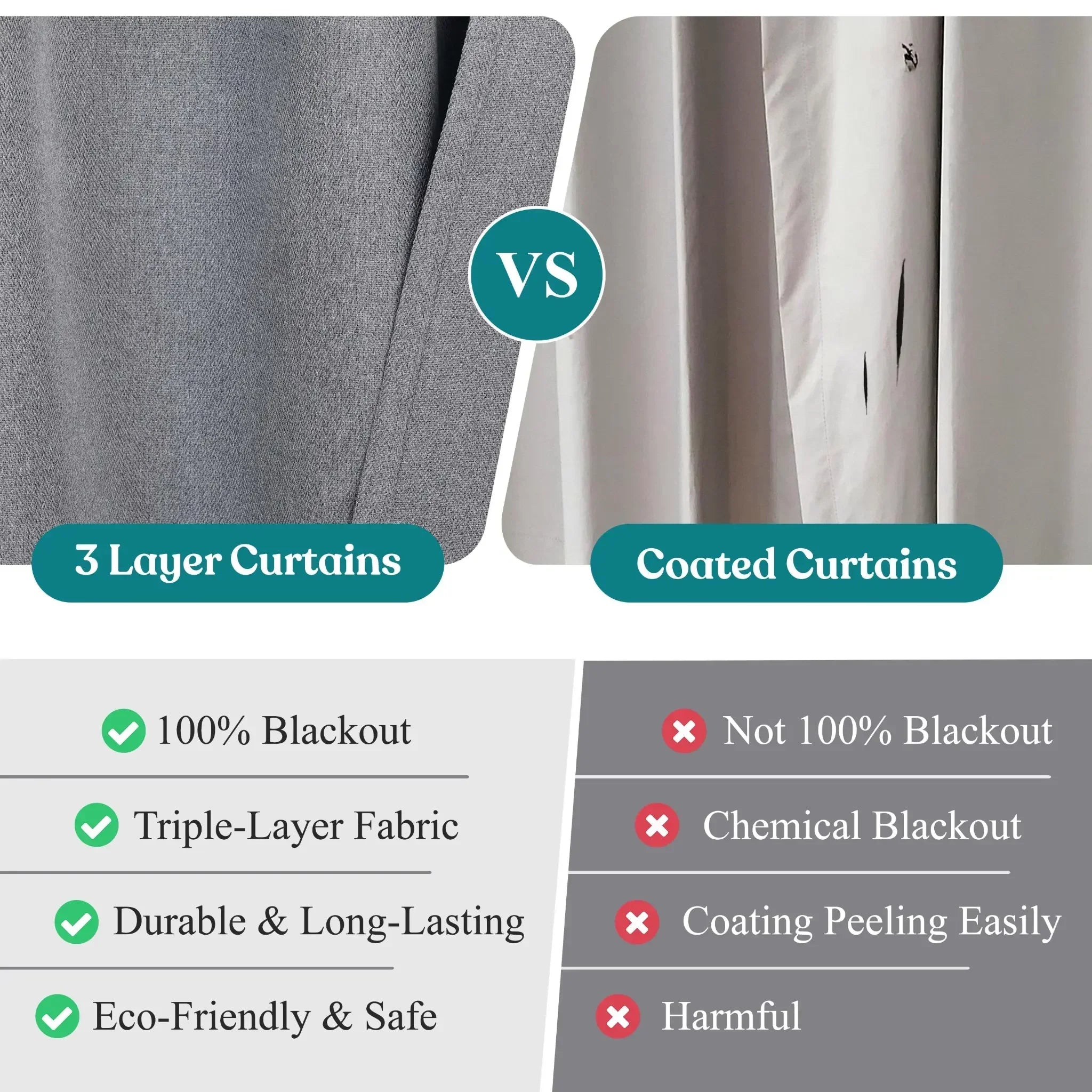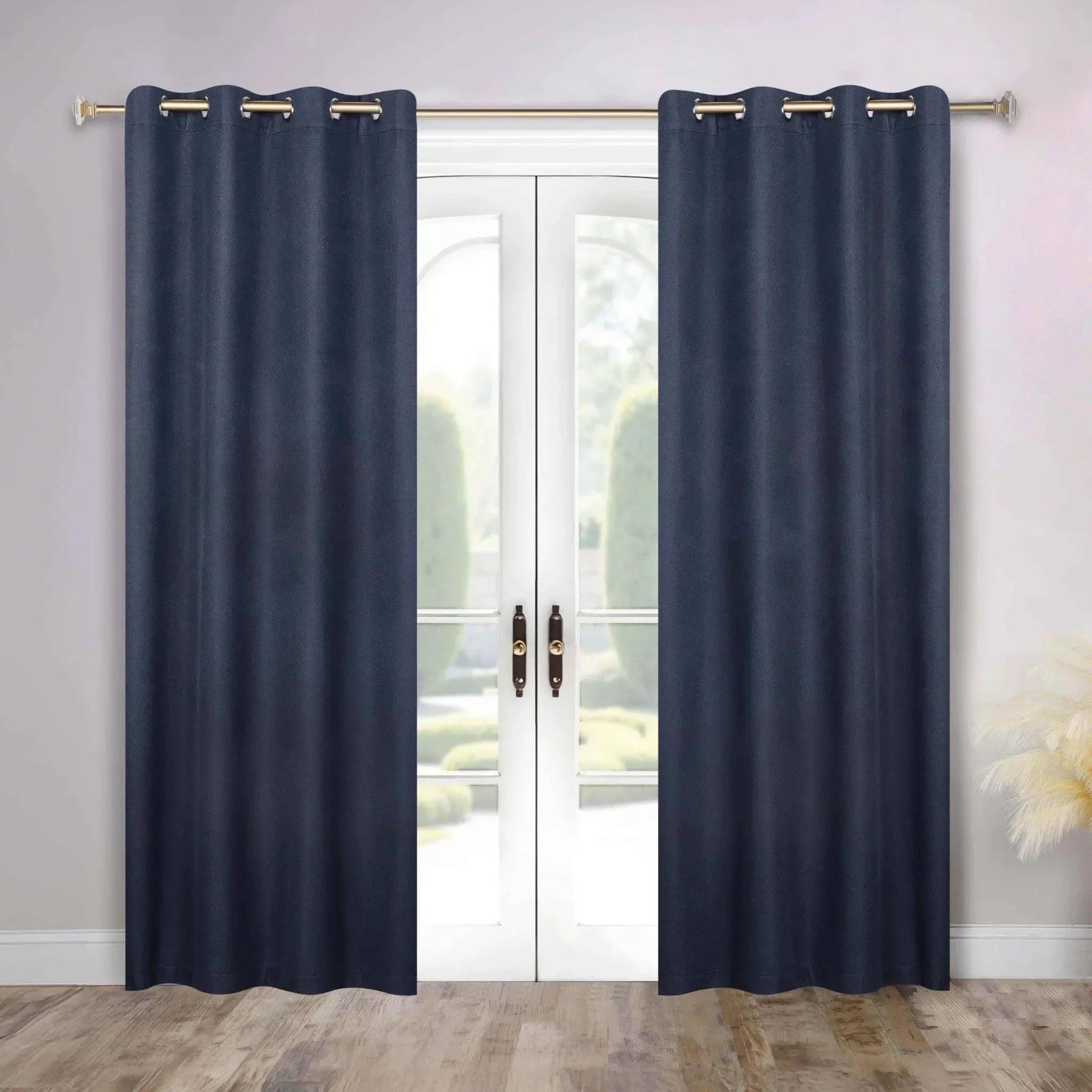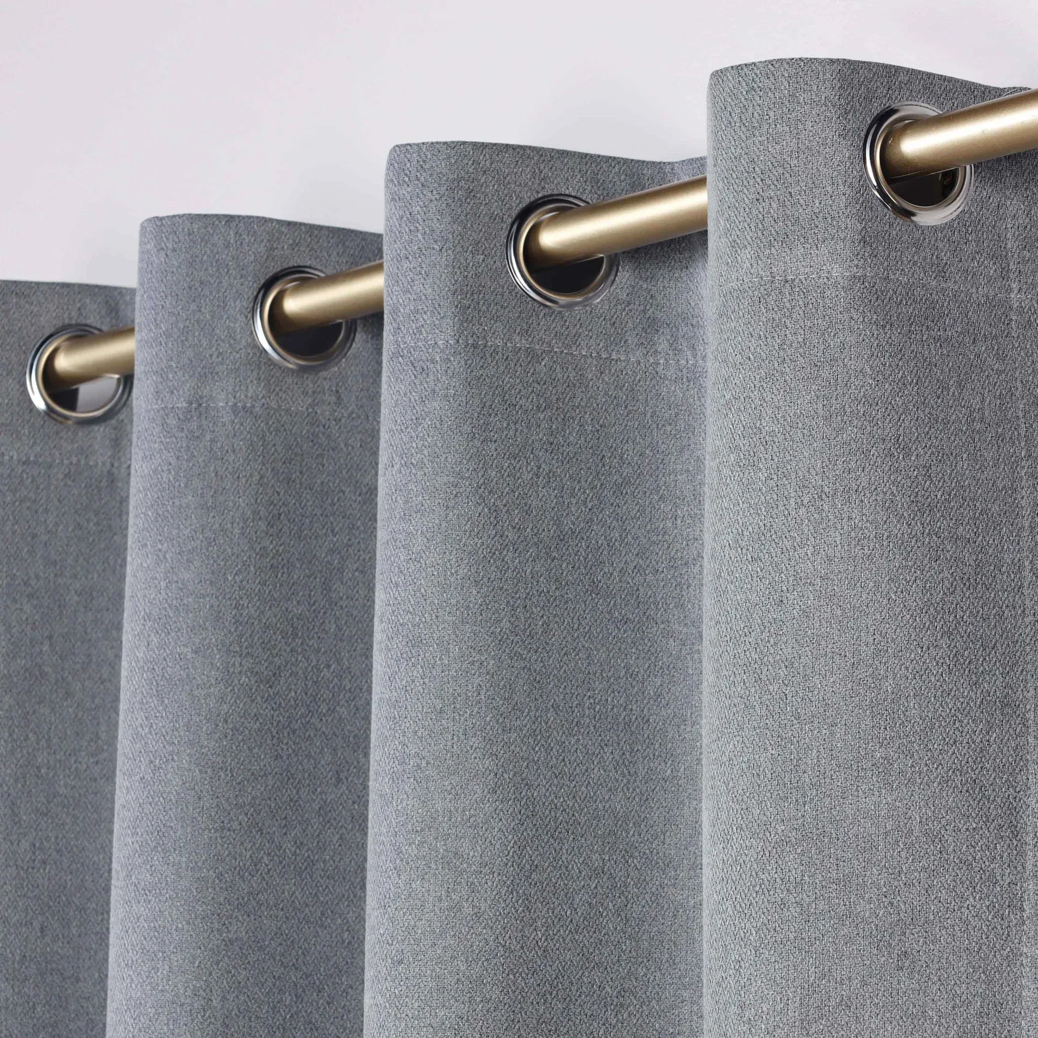 Add sophistication and comfort to your space with the Nyan 100% Blackout Curtain Set. These thick, three-layer curtains provide complete blackout protection and thermal insulation to maintain a cozy room temperature. Featuring a sleek stainless steel grommet header, they effortlessly complement any decor while blocking sunlight and enhancing privacy.