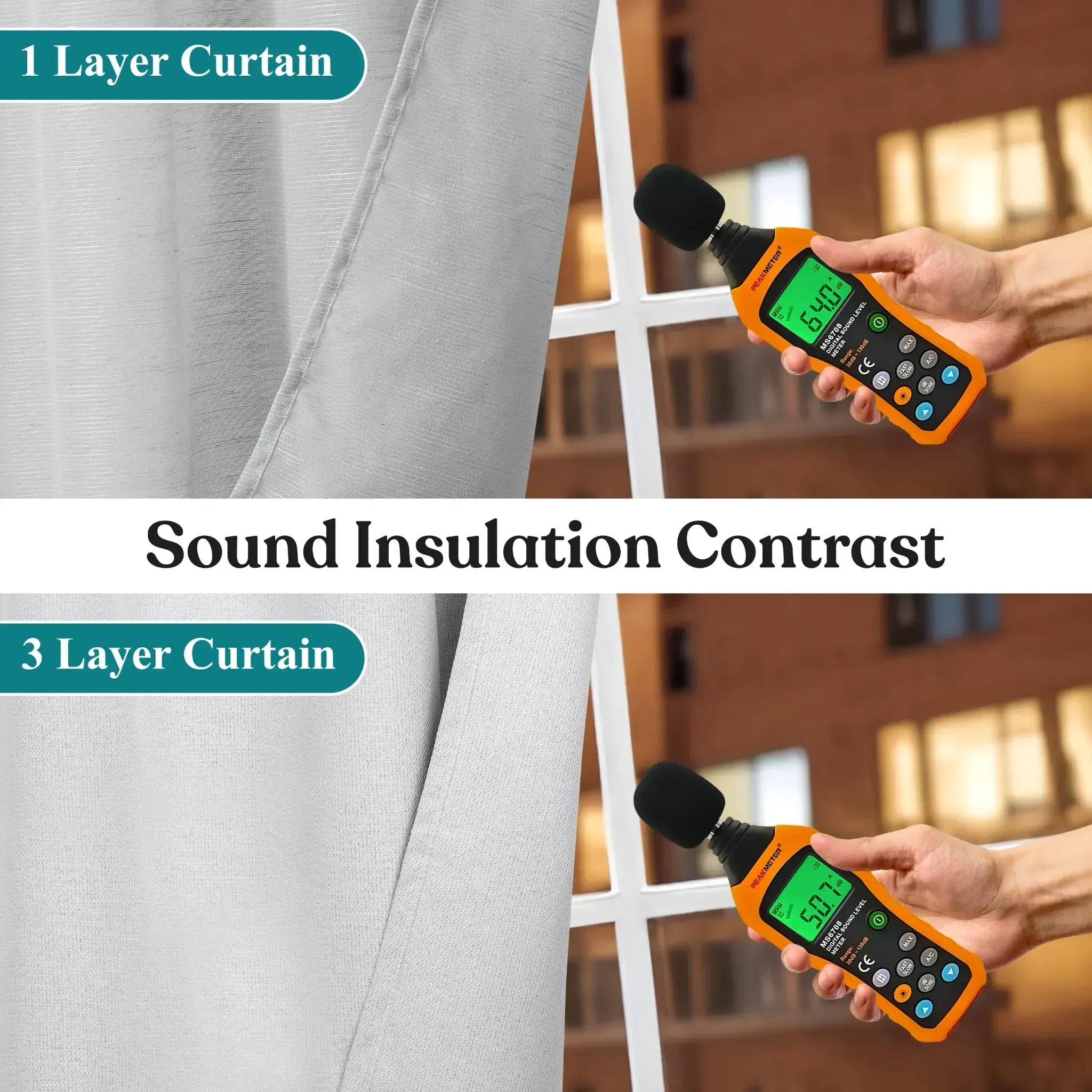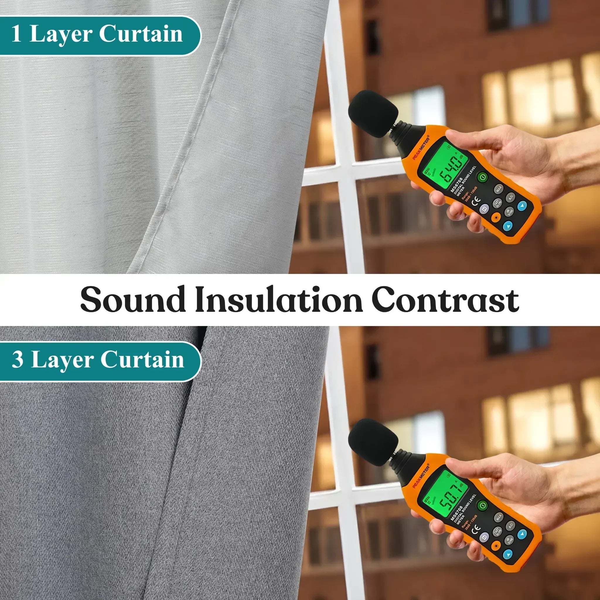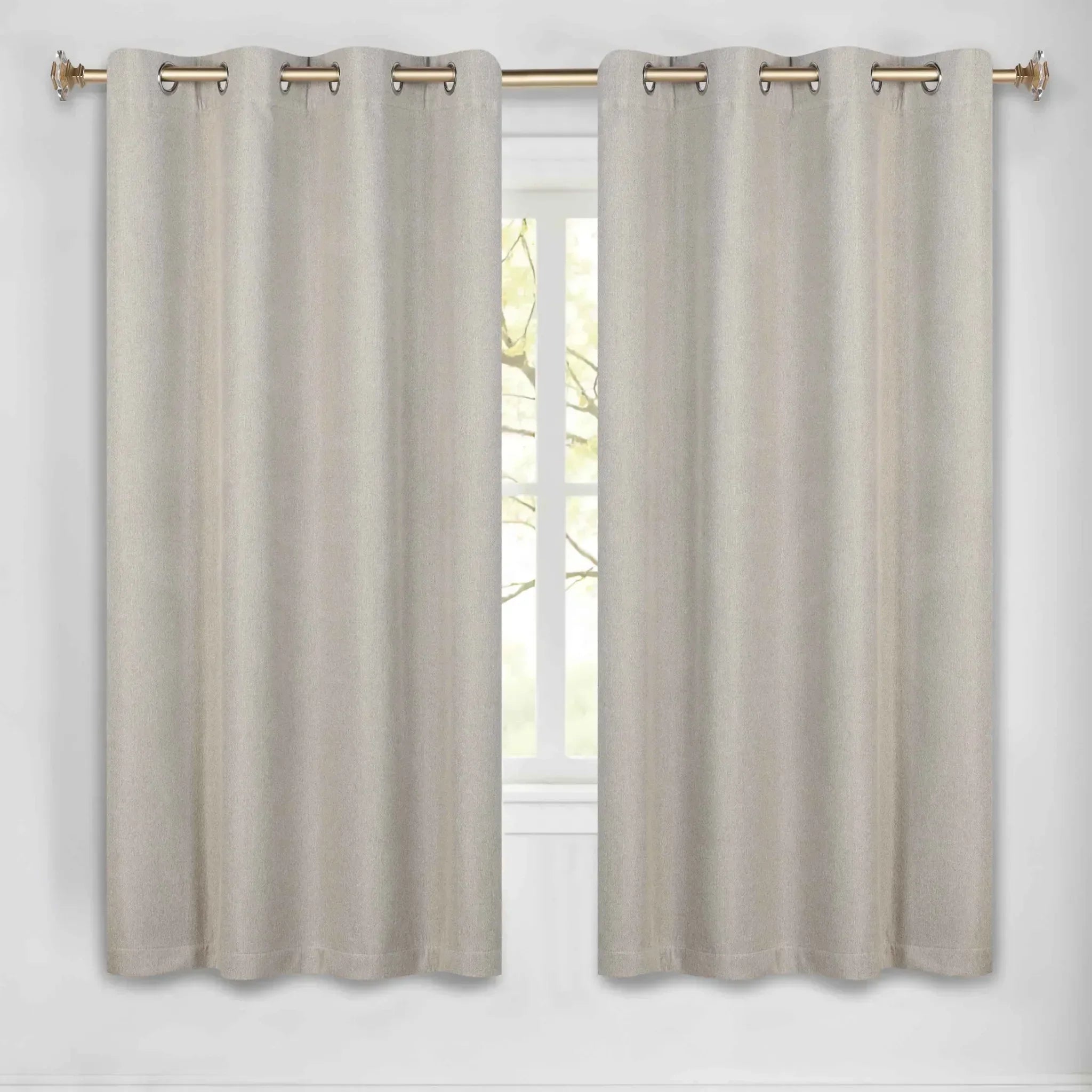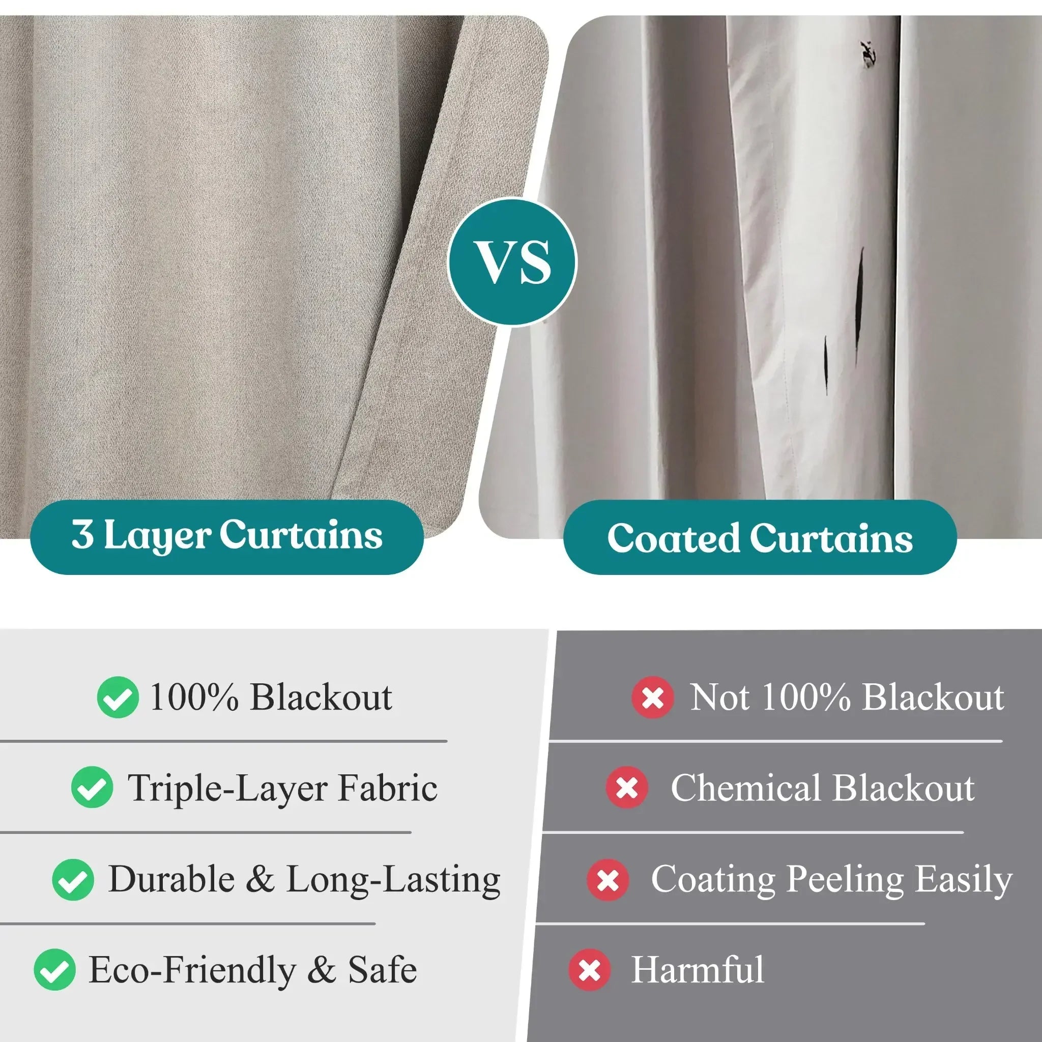 Add sophistication and comfort to your space with the Nyan 100% Blackout Curtain Set. These thick, three-layer curtains provide complete blackout protection and thermal insulation to maintain a cozy room temperature. Featuring a sleek stainless steel grommet header, they effortlessly complement any decor while blocking sunlight and enhancing privacy.