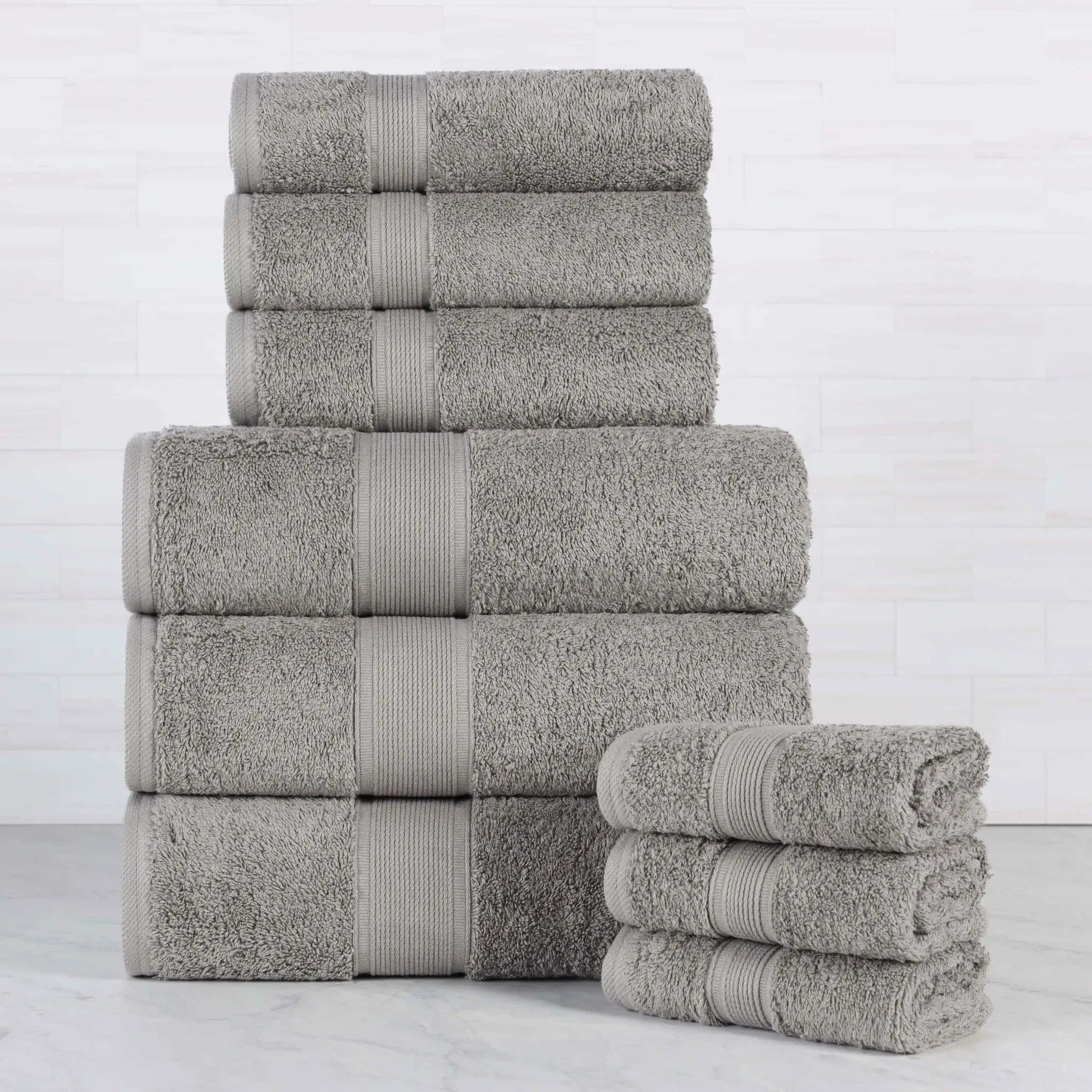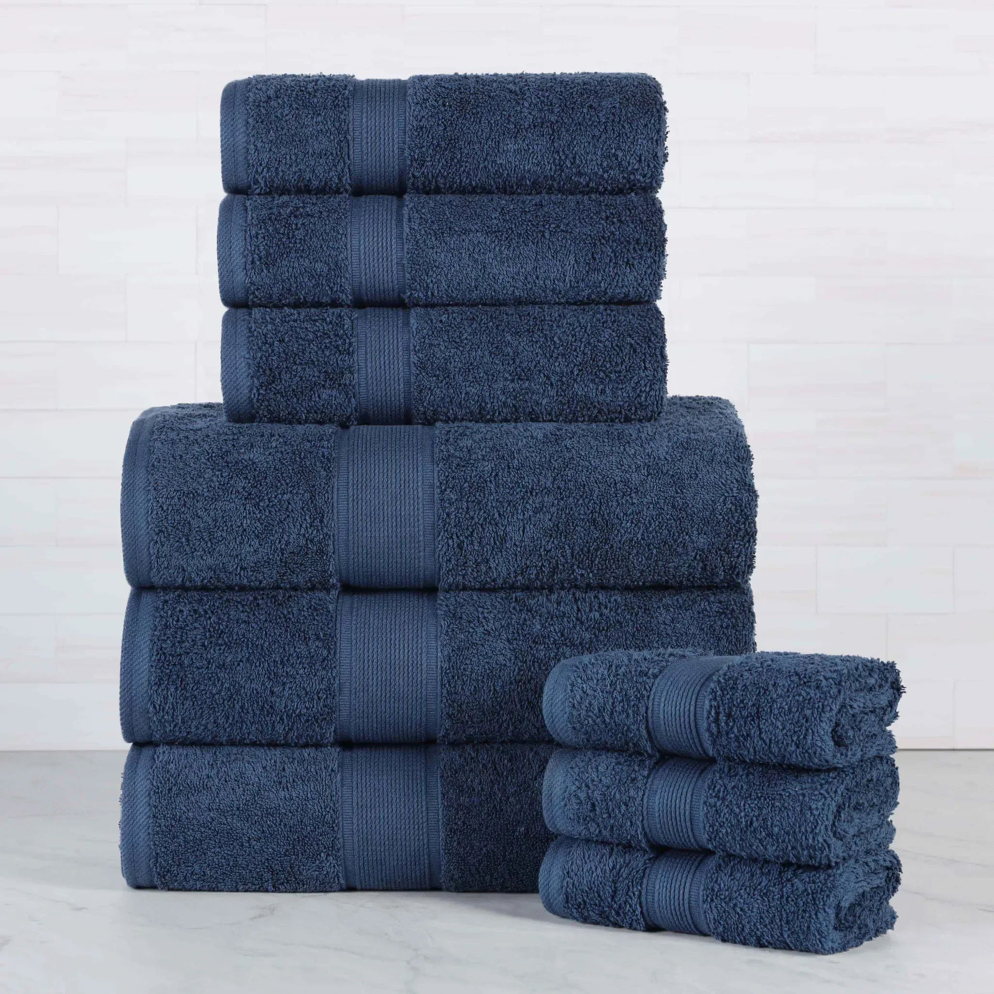 The Superior Oregon 9-Piece Towel Set combines sustainable luxury with everyday practicality. Ethically made from organic cotton, these towels offer a soft feel with high absorbency, ensuring a spa-like experience daily. Designed with a refined thick border and available in a selection of rich, classic colors, these towels effortlessly enhance the style and functionality of any bathroom space.