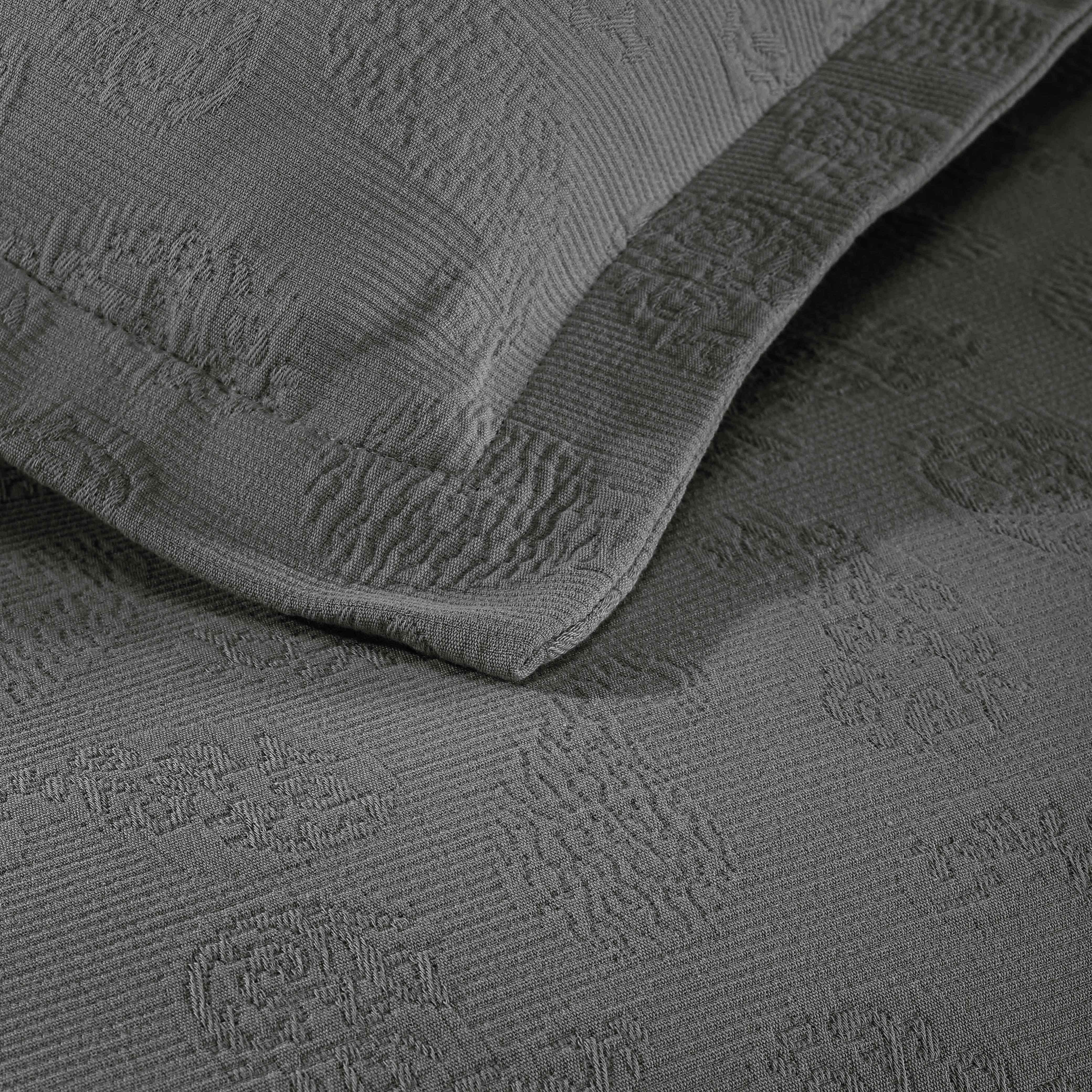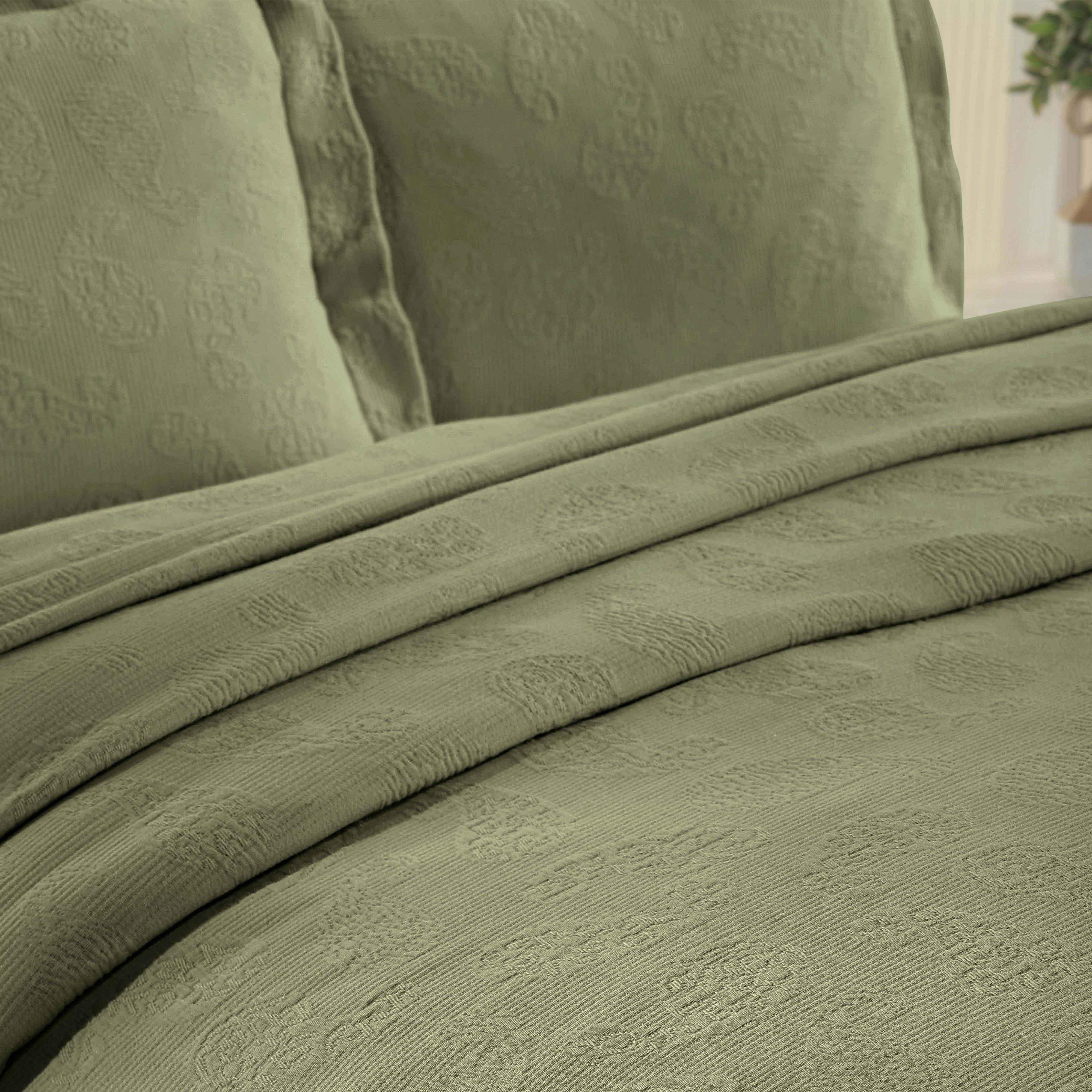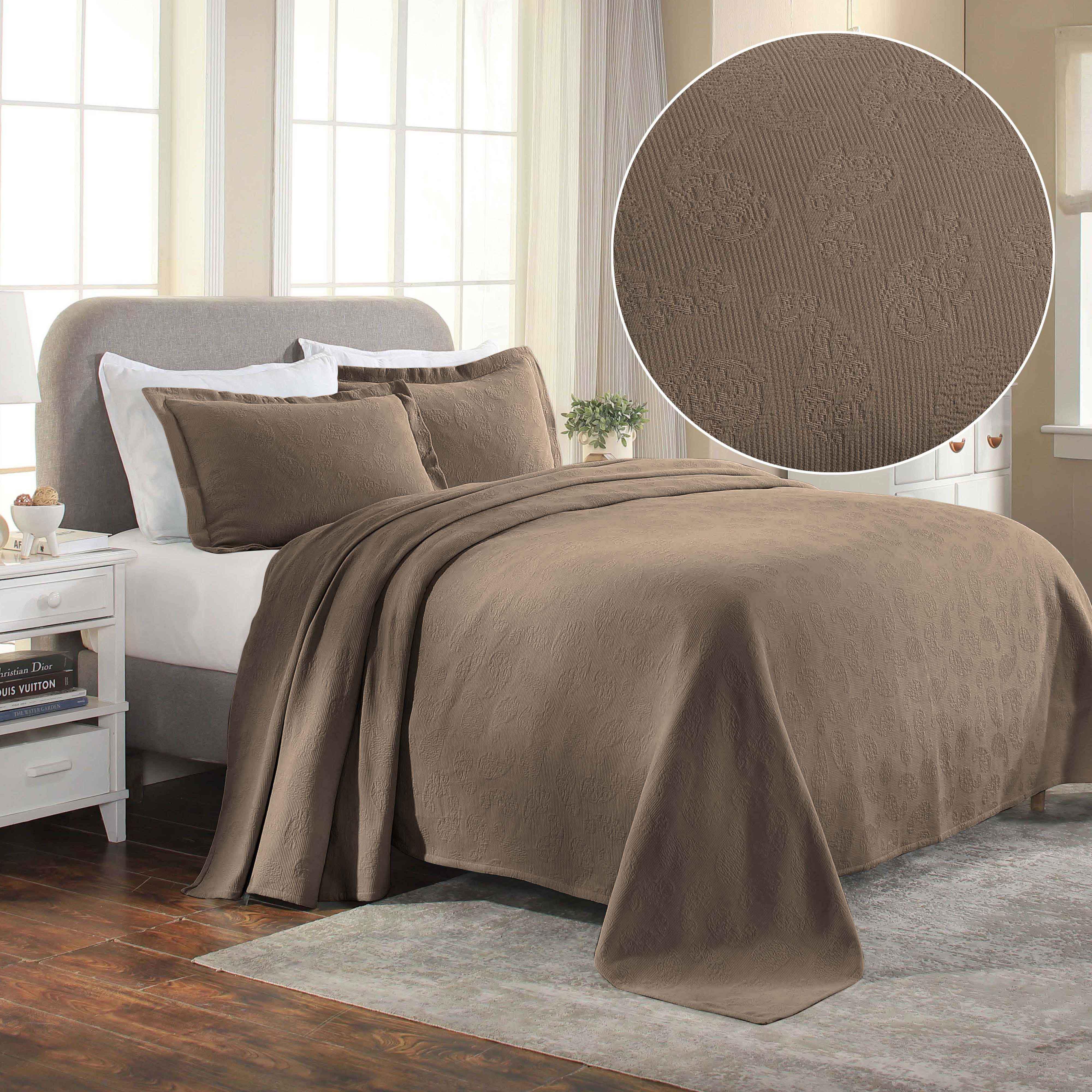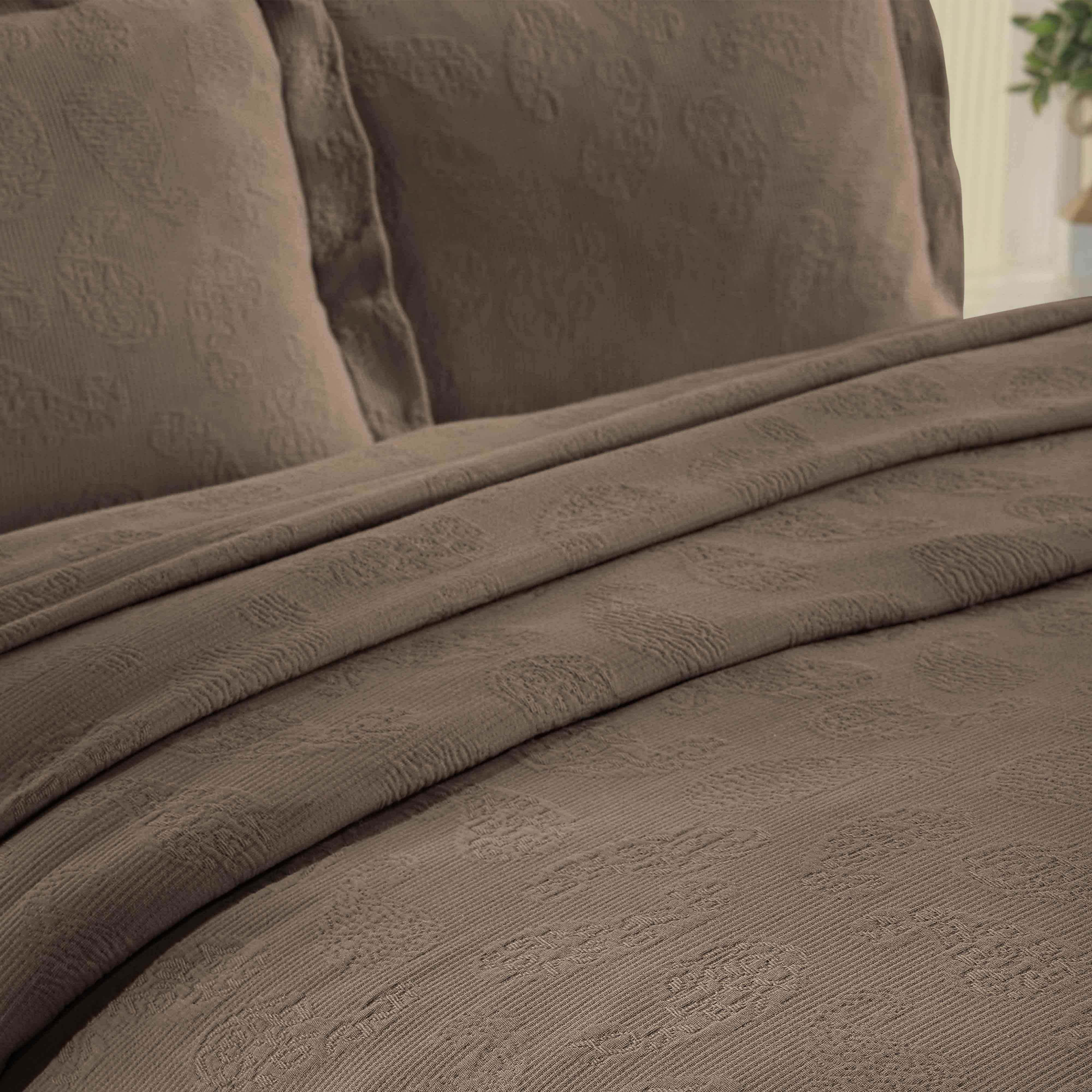 Upgrade your bedroom with our Jacquard Matelassé Paisley Cotton Bedspread Set. This stunning bedspread, crafted from 100% cotton, features a raised paisley design with a soft, sculpted texture. Generously sized to drape beautifully to the floor, it adds a touch of classic elegance to your space and eliminates the need for a bed skirt.