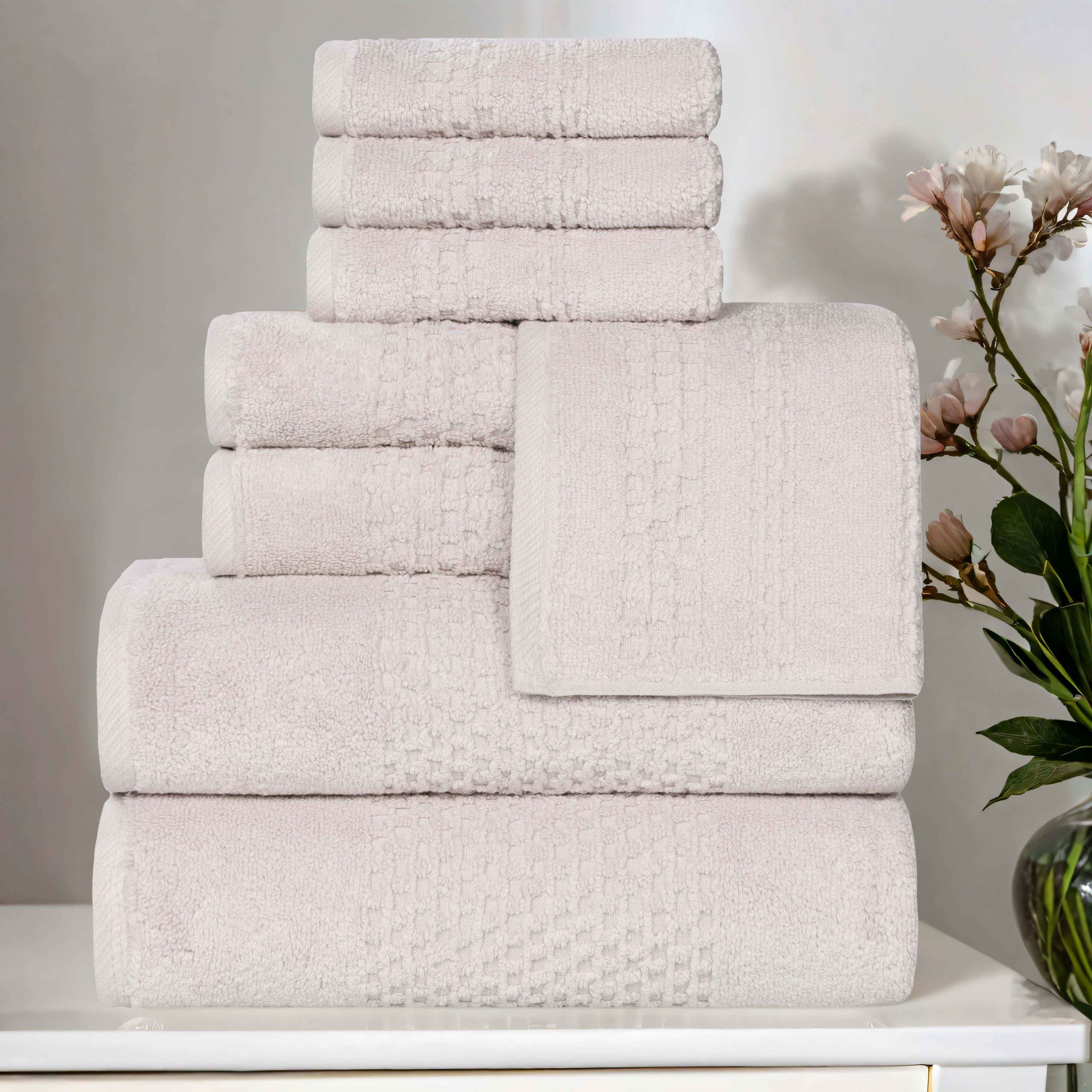 Discover the perfect blend of style and functionality with our Playa Zero Twist Solid Waffle Textured 8 Piece Towel Set. Featuring a classic design and versatile color palette, this set effortlessly complements any bathroom decor. The plush, absorbent texture and subtle waffle weave create a spa-like experience, while the innovative zero-twist design ensures lasting softness and durability. Transform your daily routine into a moment of indulgence with this exceptional towel set.