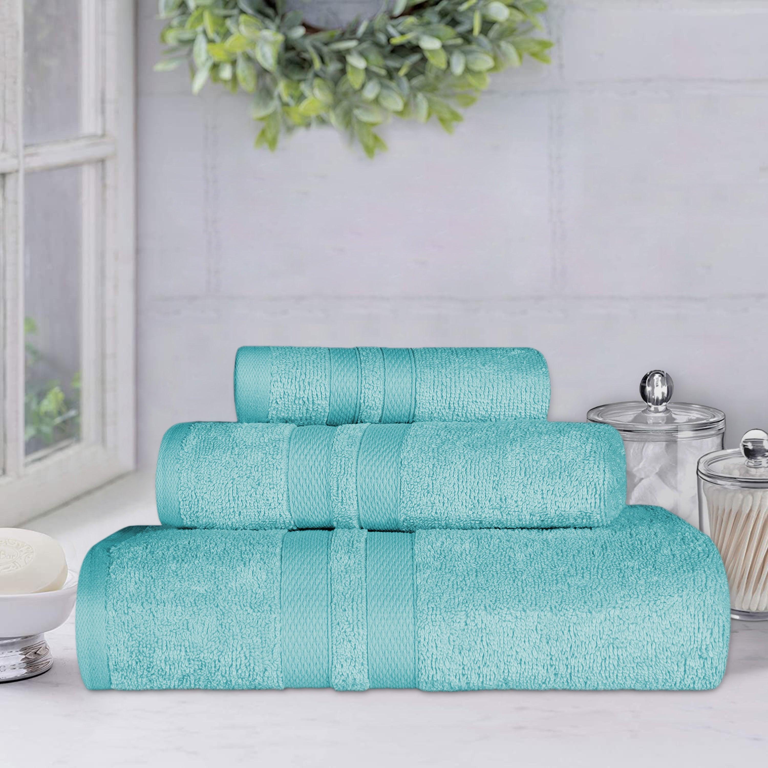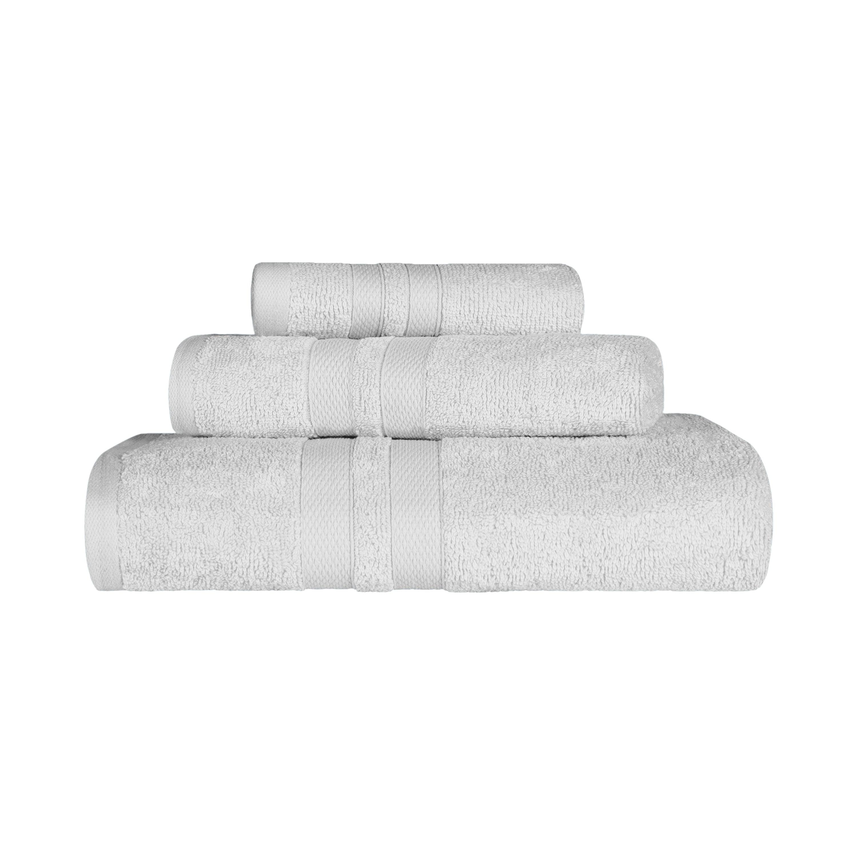 Bring the spa-vibe home with our amazingly soft and quick-drying Superior Ultra Soft Cotton Absorbent Solid Assorted 3-Piece Towel Set. Crafted from premium Cotton, each bath towel, hand towel, and washcloth feels incredibly gentle on your skin as soon as you step out of the shower or bath. In addition, the medium grams per square meter towel weight gives each towel its smooth and luxurious feel while absorbing water fast to help get you dry quickly. Adorning each towel is a delicate dobby border to bring a modern flourish to any master bath, powder room, or guest bath.