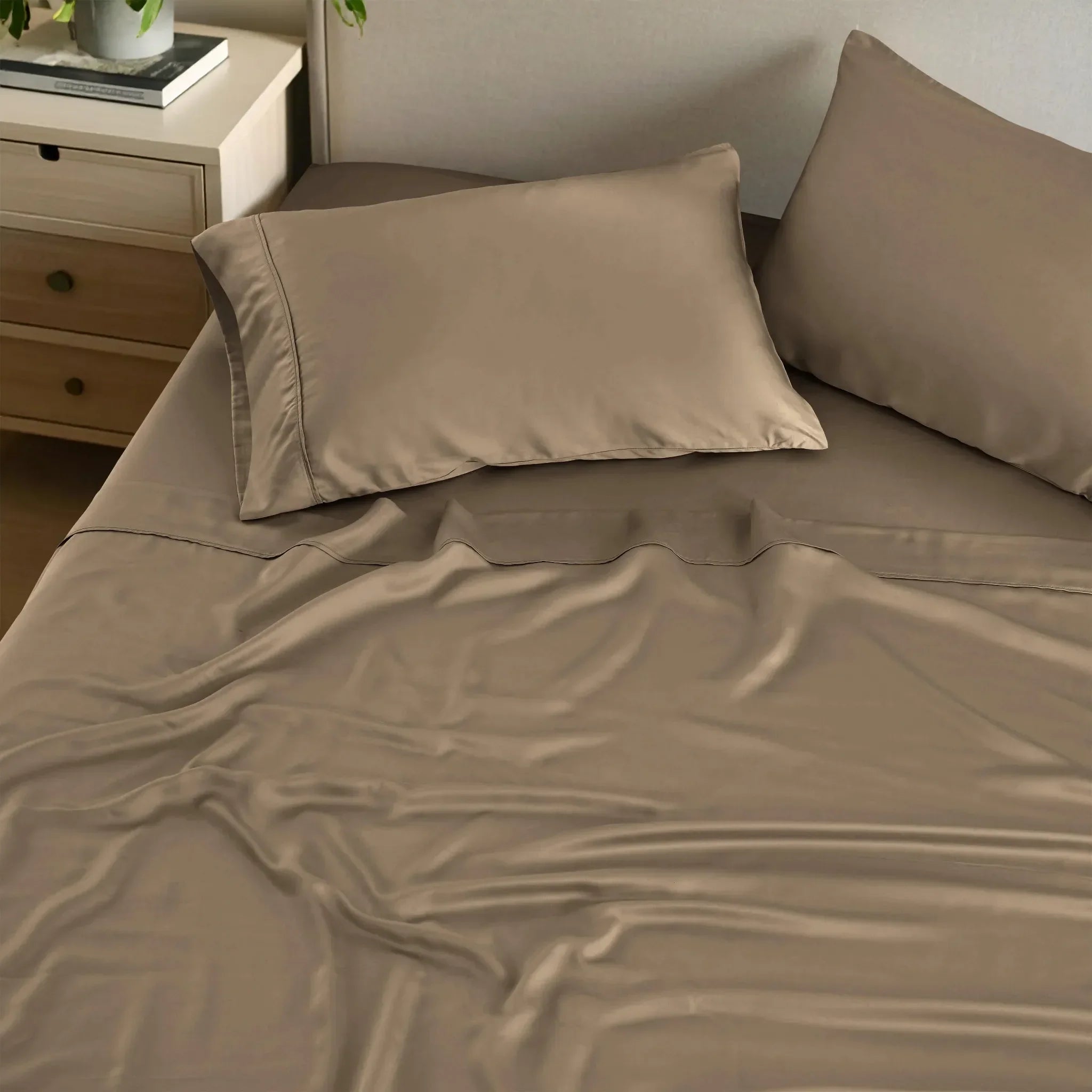 Crafted from premium rayon fibers derived from bamboo, these sheets offer a silky-smooth feel that is naturally soft, lightweight, and hypoallergenic, making them an excellent choice for those with sensitive skin or allergies.