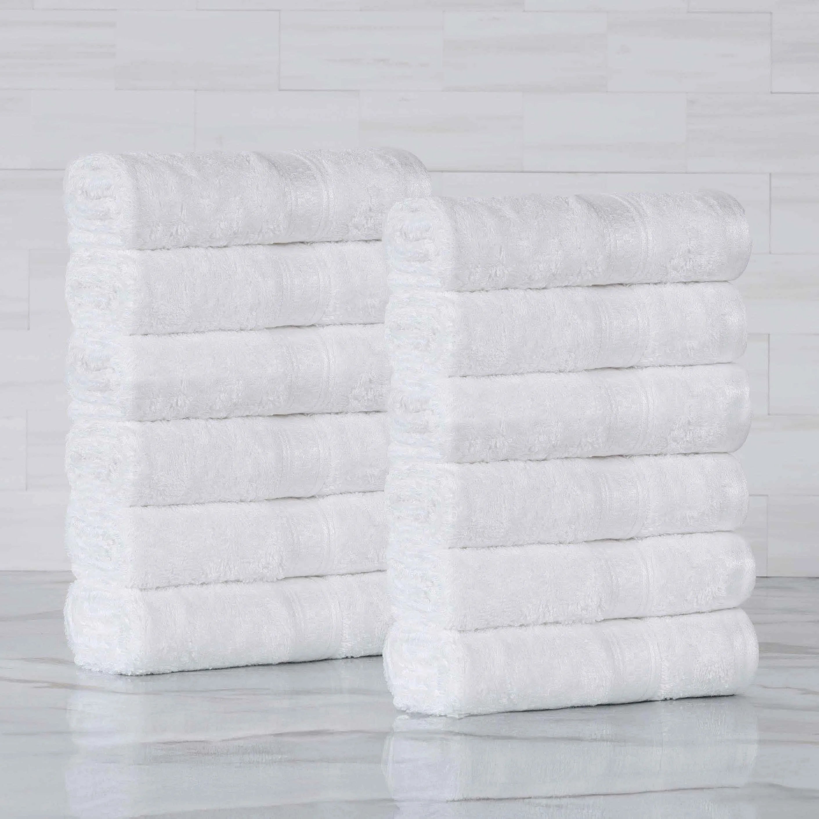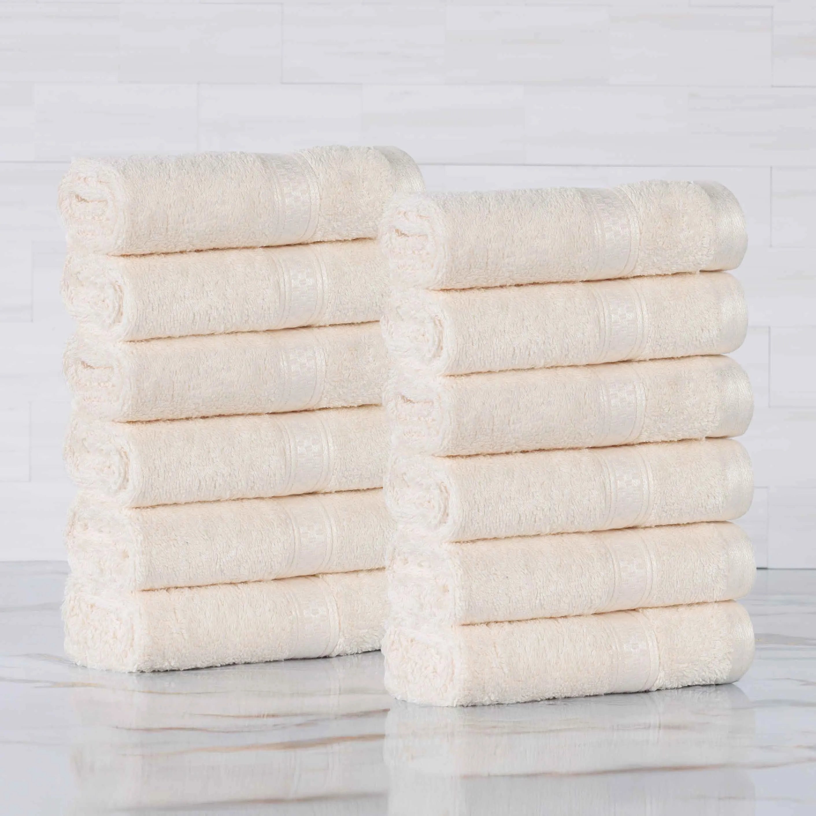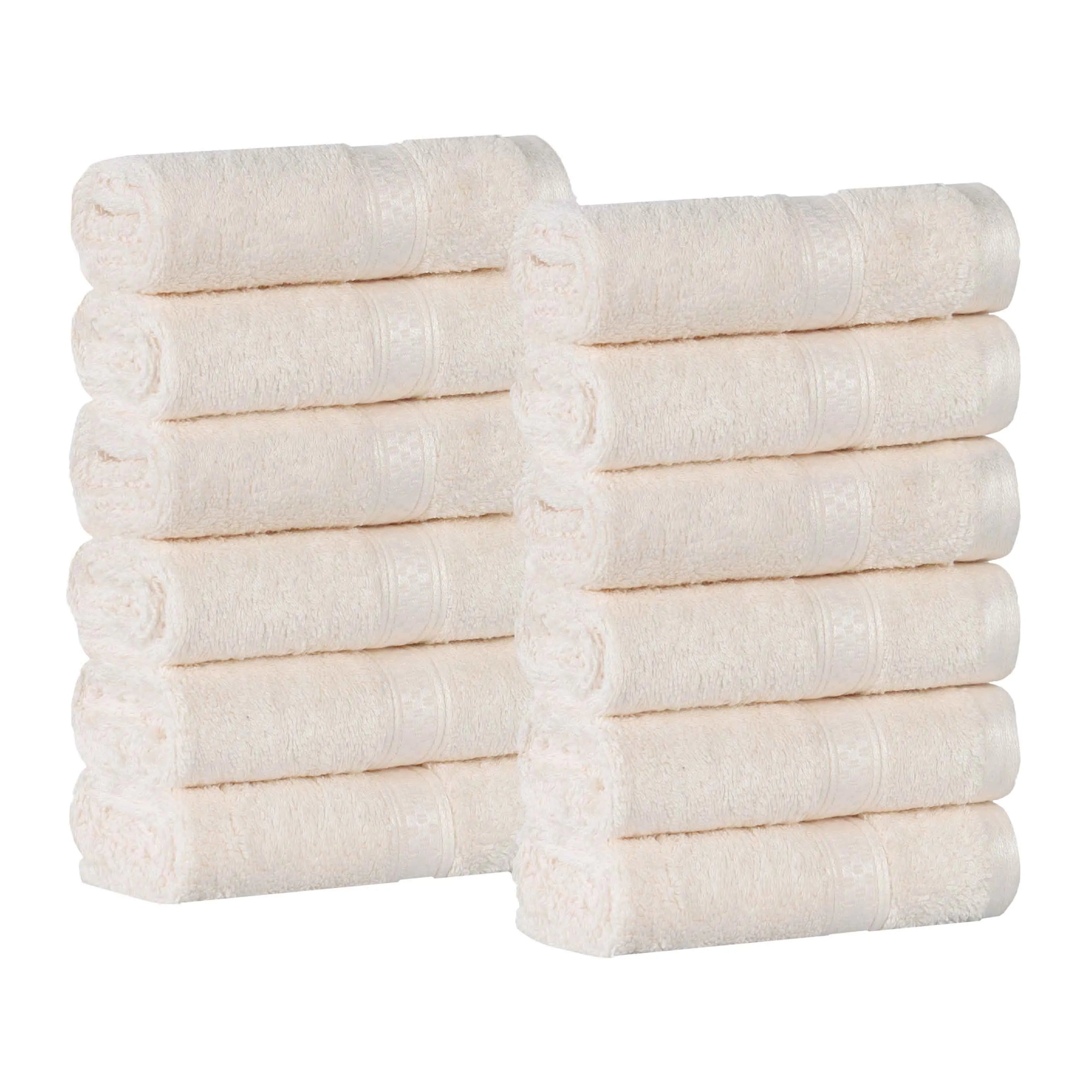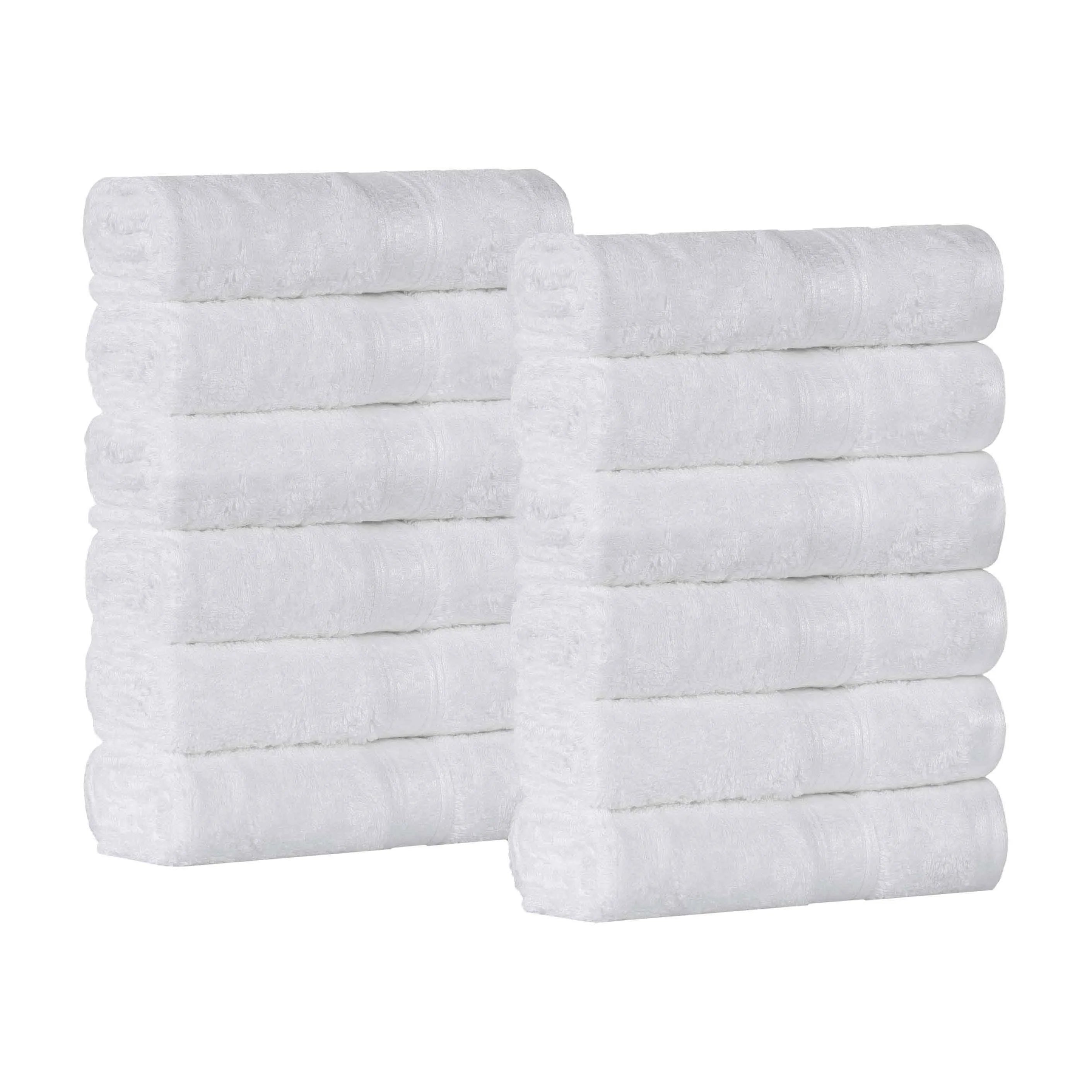 Wrap yourself in the supremely soft and cozy Rayon from Bamboo Blend 12-Piece Face Towel Set. The blended Rayon from Bamboo and Cotton construction has a luxurious, buttery smooth feel while also being highly absorbent to get you dry quickly. Rayon from Bamboo is naturally silky smooth, odor-resistant, and moisture-wicking to help soak up water fast. For added comfort, these towels feature a 650 grams per square meter towel weight for increased softness. This beautiful bundle includes 12 solid face towels/washcloths that feature a decorative checkered trim for modern flair.