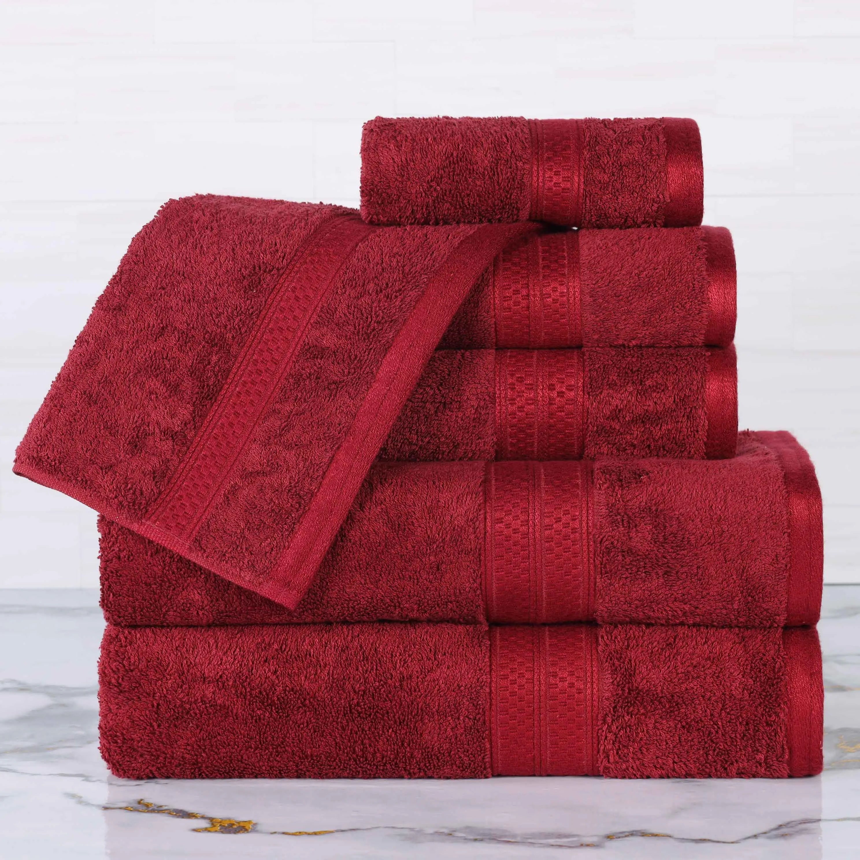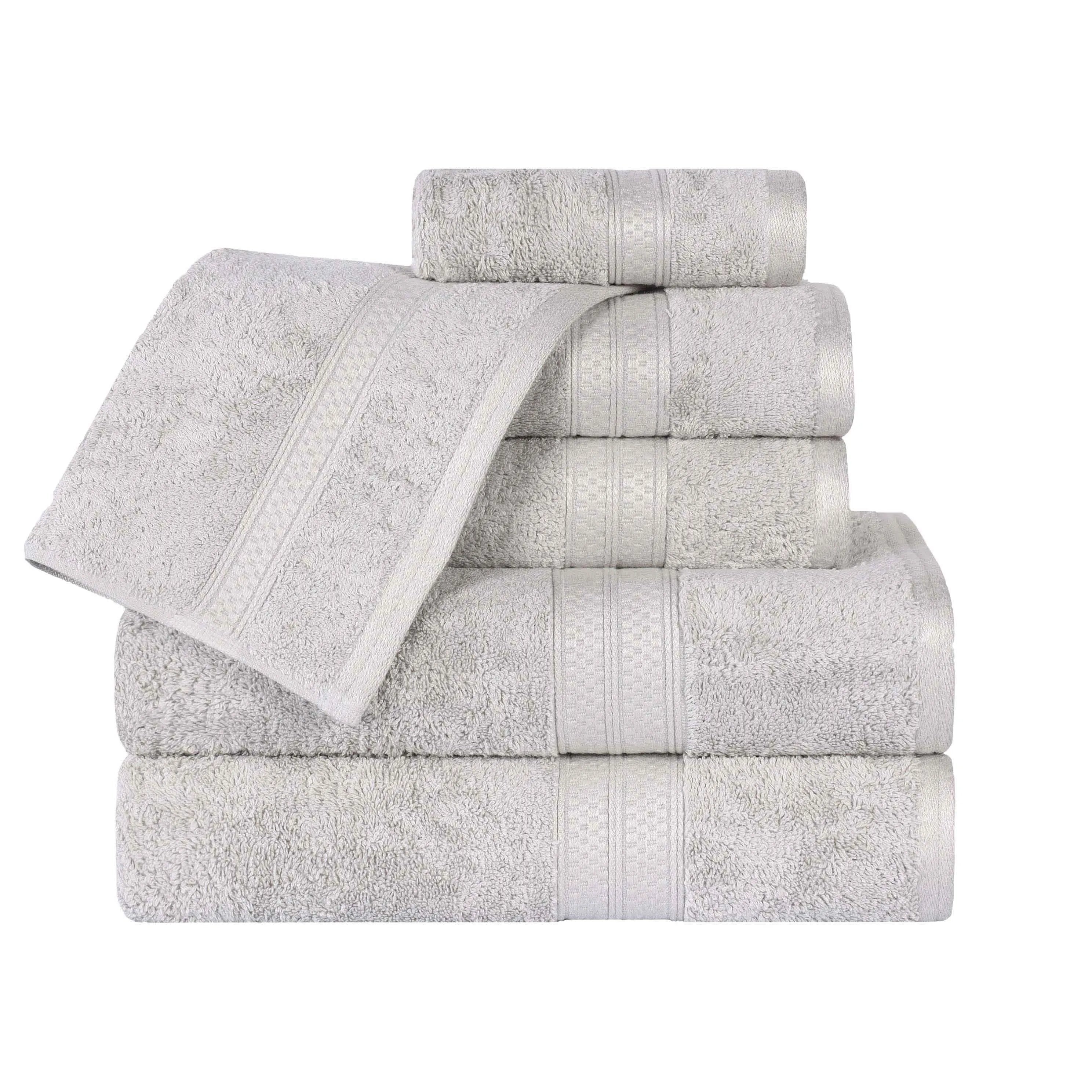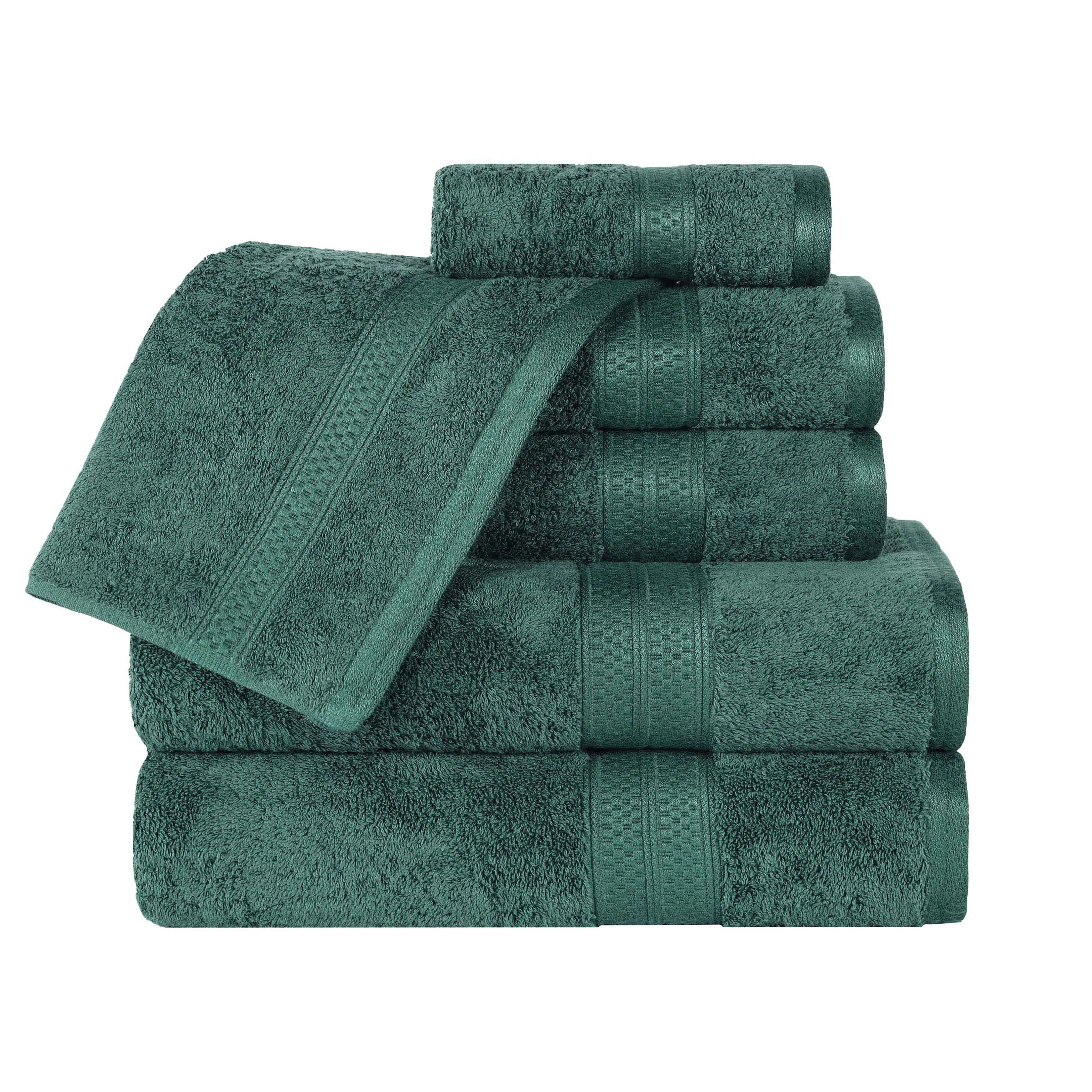 Featuring a solid pattern with a coordinating border, this bamboo bath towel set will match with any modern bathroom decor styles. These bamboo and cotton towels are the ultimate in soft luxury. Update your powder room, dorm room, or apartment in an instant with this essential towel set.