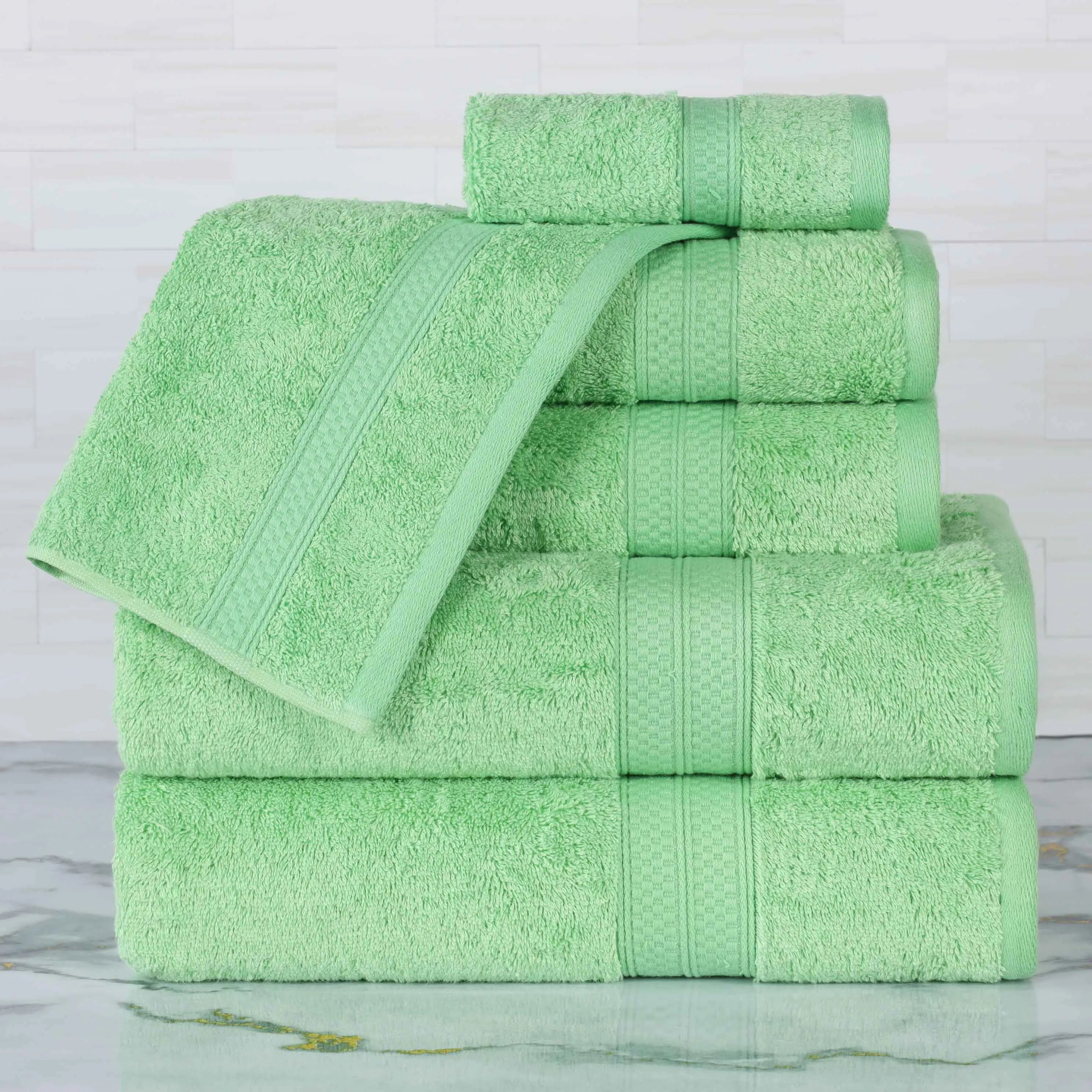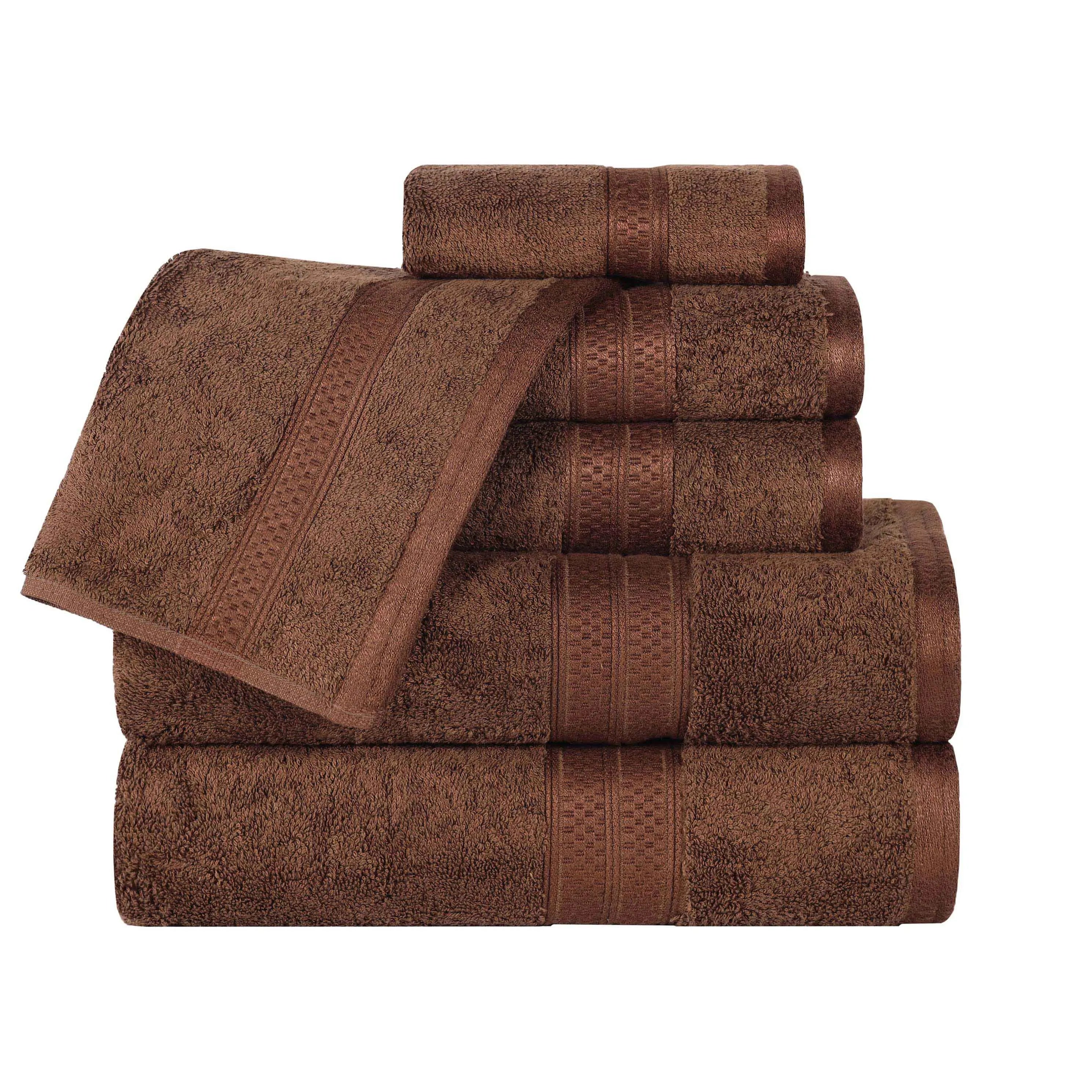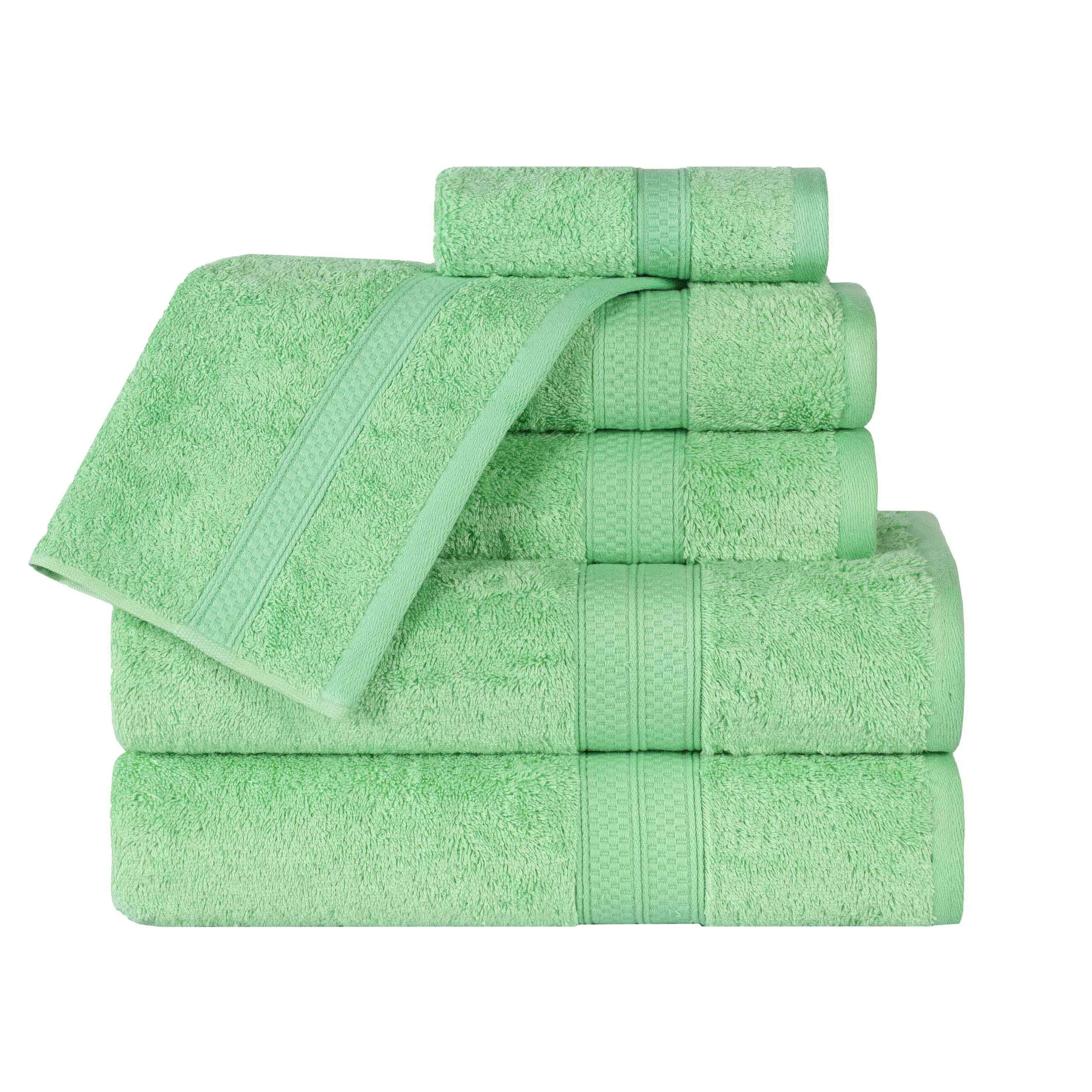 Featuring a solid pattern with a coordinating border, this bamboo bath towel set will match with any modern bathroom decor styles. These bamboo and cotton towels are the ultimate in soft luxury. Update your powder room, dorm room, or apartment in an instant with this essential towel set.