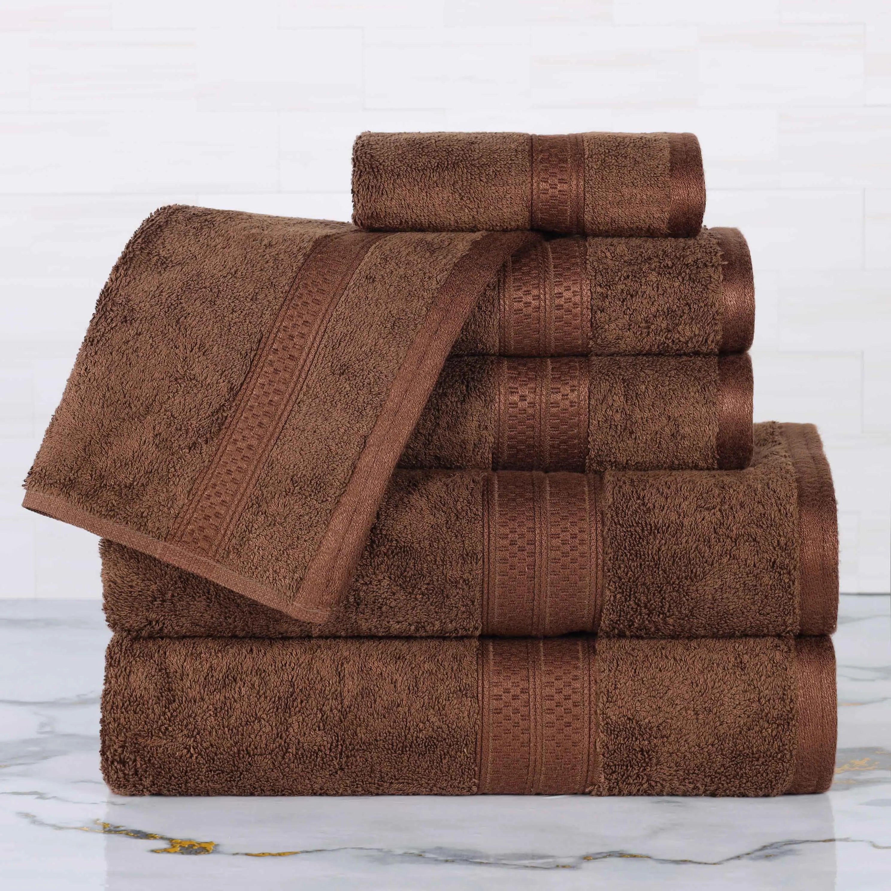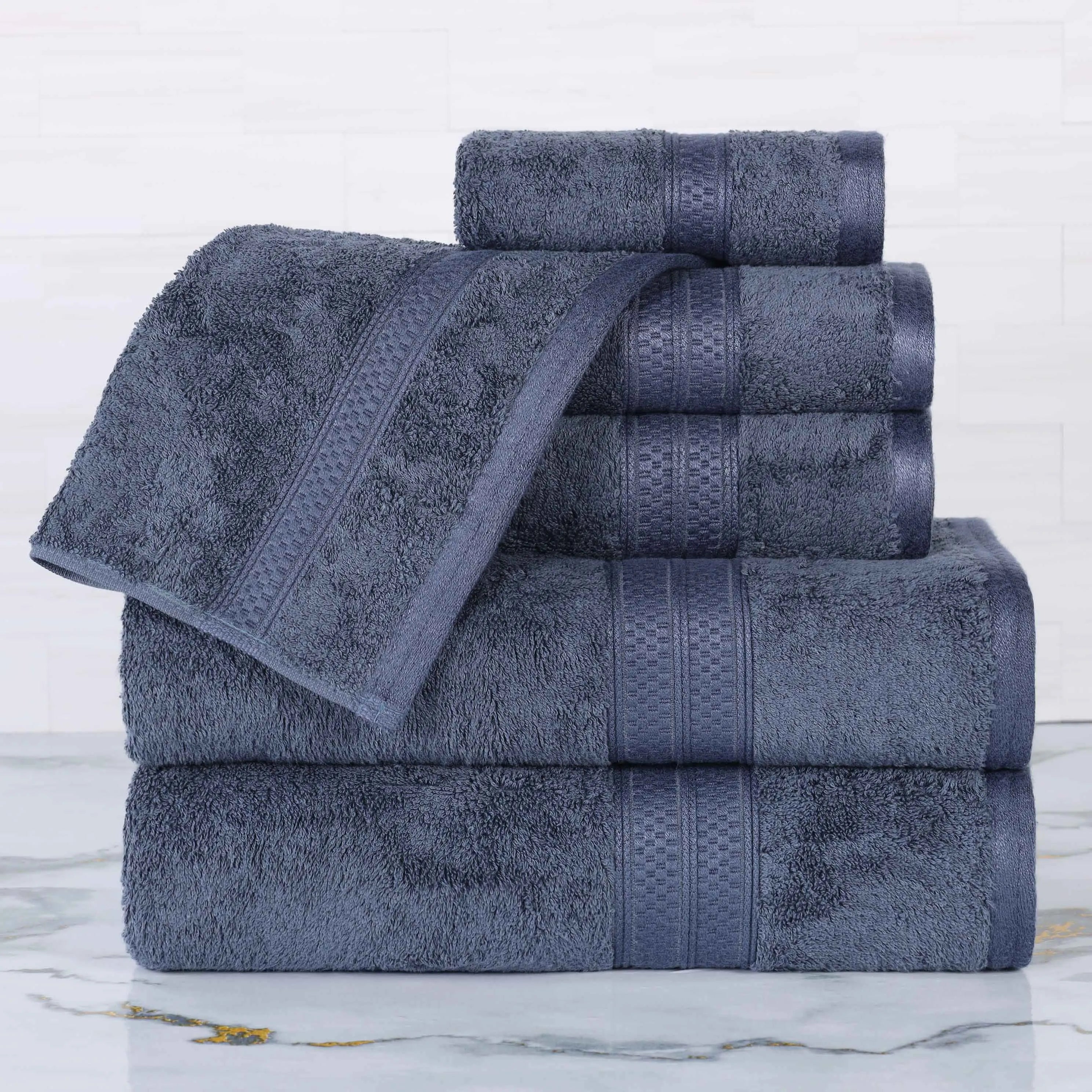 Upgrade the towels in your bathroom with our Bamboo Bathroom Towels 6-Piece Set. Crafted from a luxurious blend of rayon made from bamboo and cotton for comfort and durability, these silky-soft bamboo bath towels provide versatile absorption, perfect for everyday use. This unique blend makes them the best bamboo bath towels for those seeking a gentle, absorbent experience.