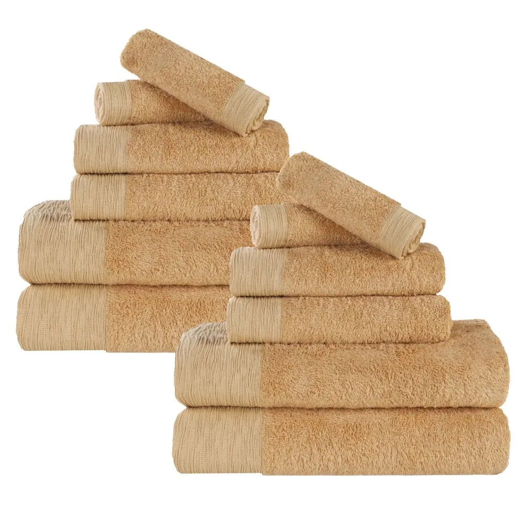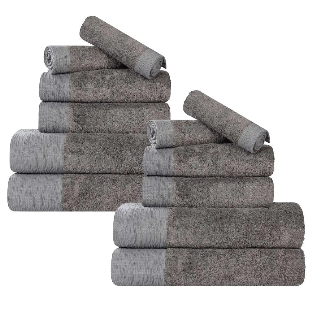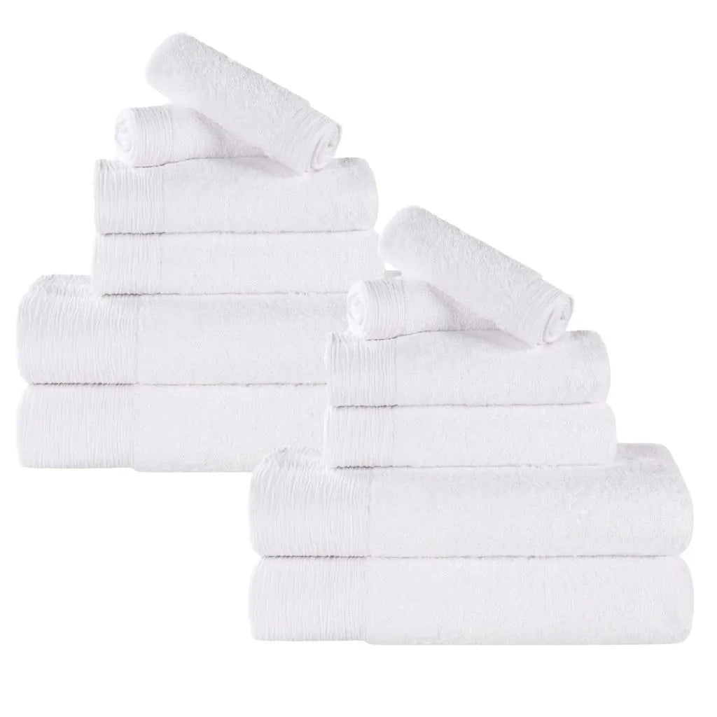 Experience the epitome of luxury and style with the Superior Rayon from Bamboo Eco-Friendly Fluffy Soft Modern Solid 12-Piece Towel Set. This 40% Rayon from Bamboo 60% Cotton towel set is crafted for a soft, absorbent, and luxurious experience. Boasting a classic solid design and wave textured border, bring a unique style to your guest or master bathroom with this bundle. Each towel is finished with secure hemmed edges to avoid fraying and a durable single-ply to withstand countless washes and last you years to come. Featuring a hanging loop on each piece, enjoy both convenience and comfort with this versatile set.