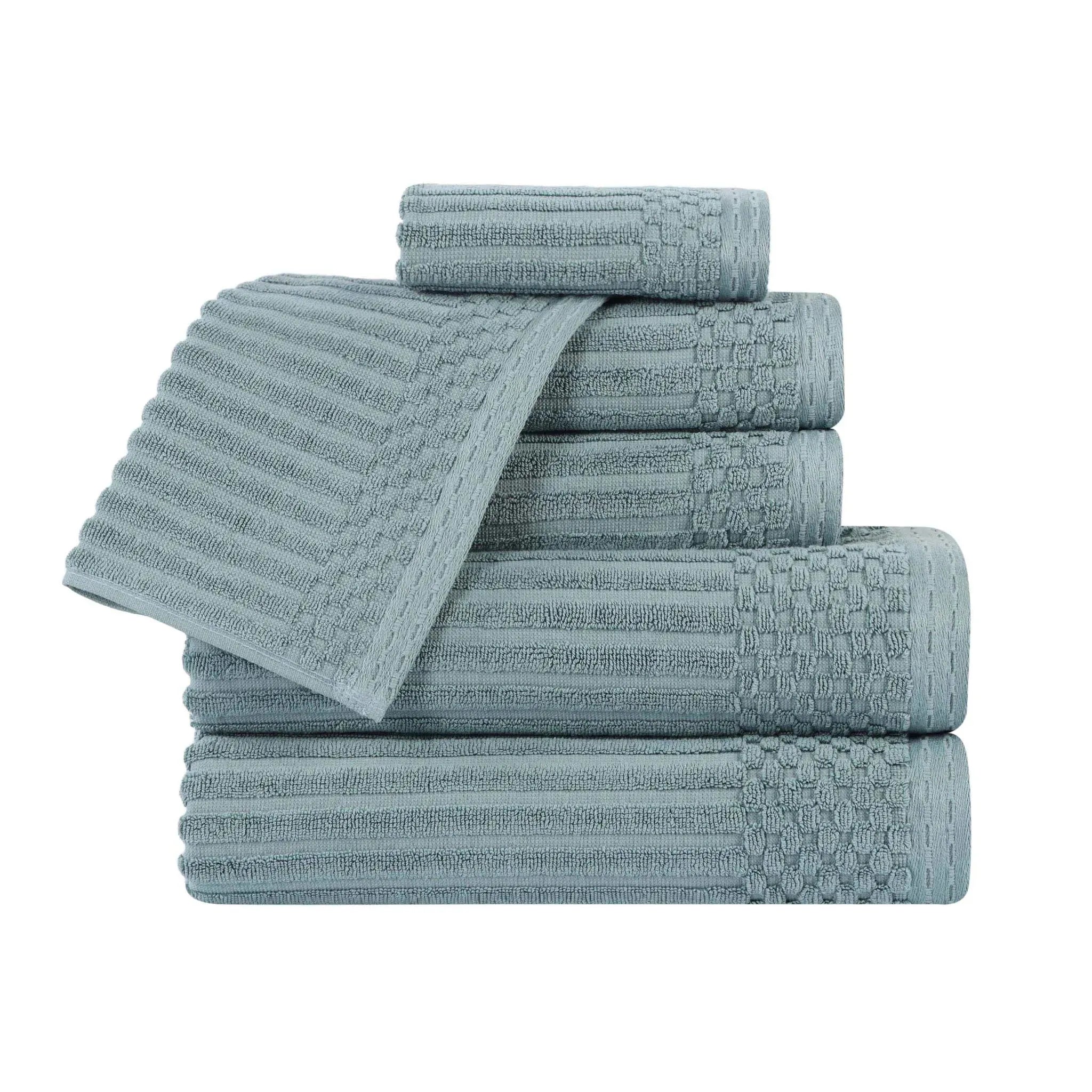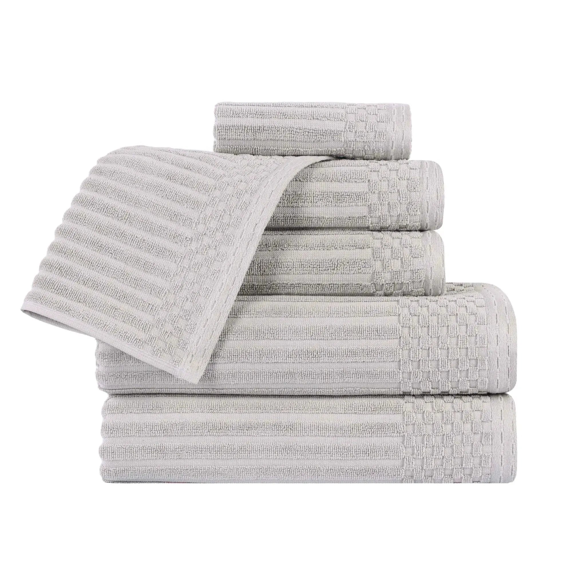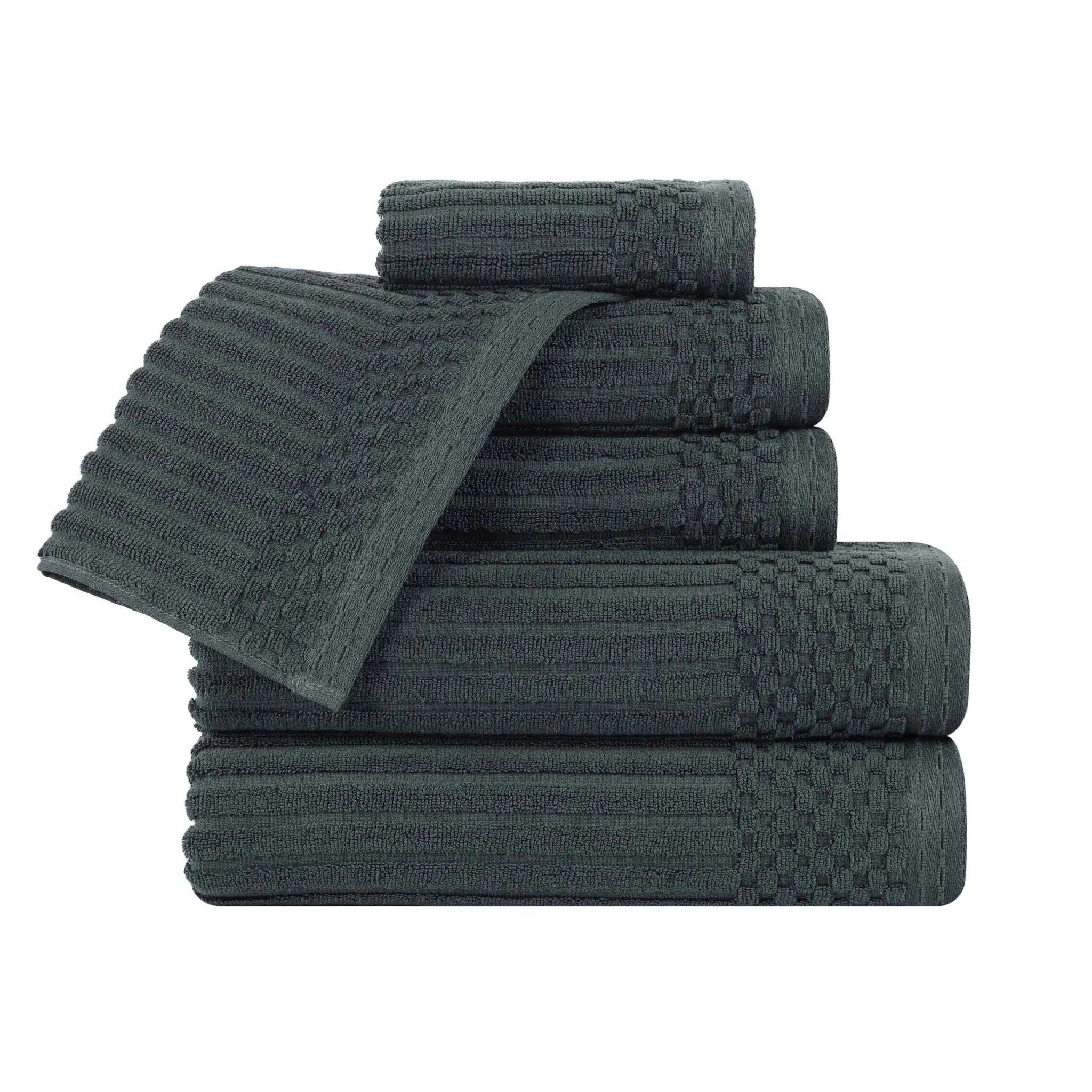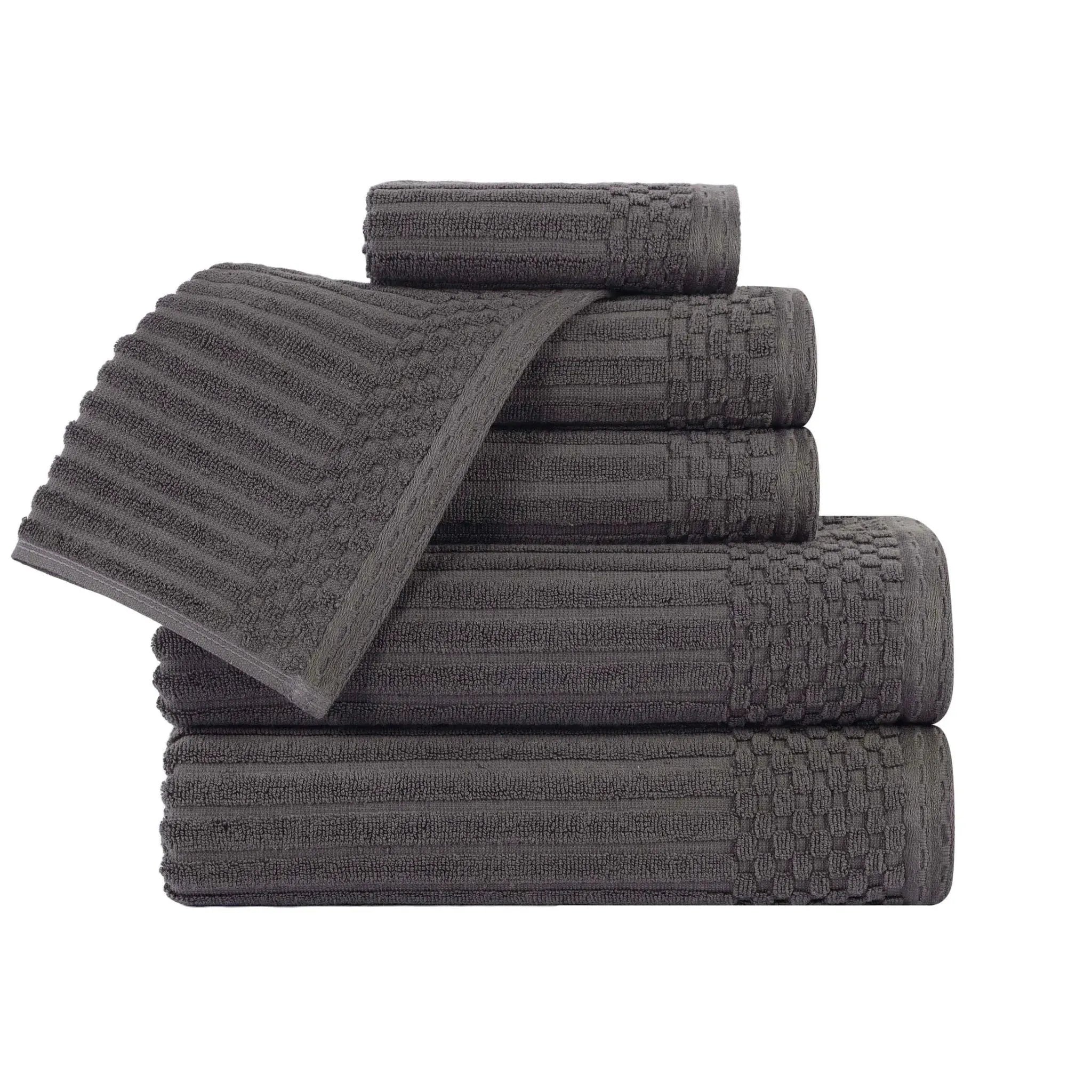 Upgrade your bathroom with our ultra-absorbent Soho ultra-absorbent Soho Living Bath Towels. Crafted from premium cotton, this 6-piece collection features a unique ribbed texture that not only looks elegant but also enhances absorbency and air-drying properties. Designed to provide a quick and efficient drying experience, this is the ideal solution for anyone searching for Soho Living Quick Dry Towels.