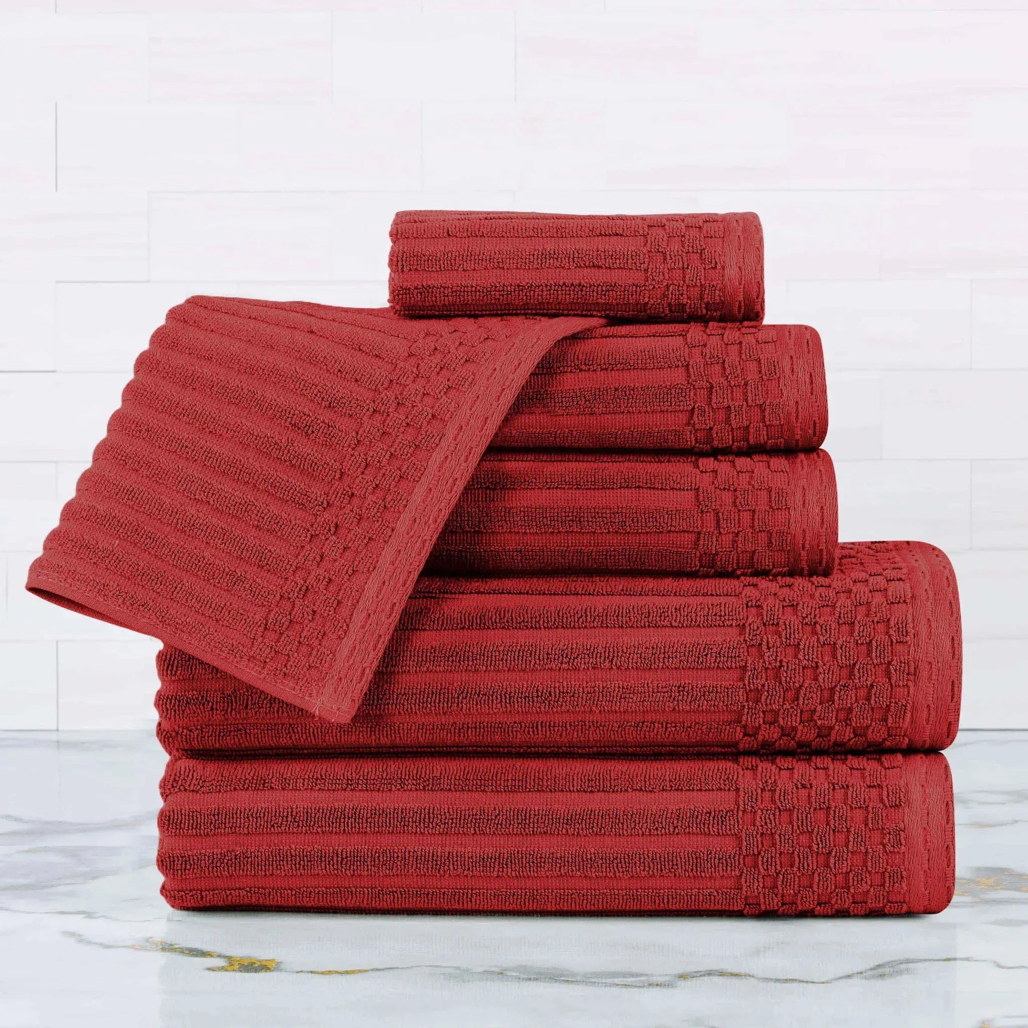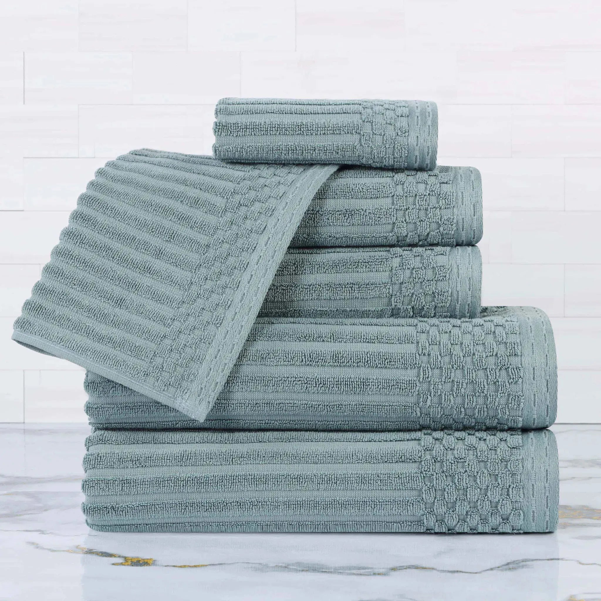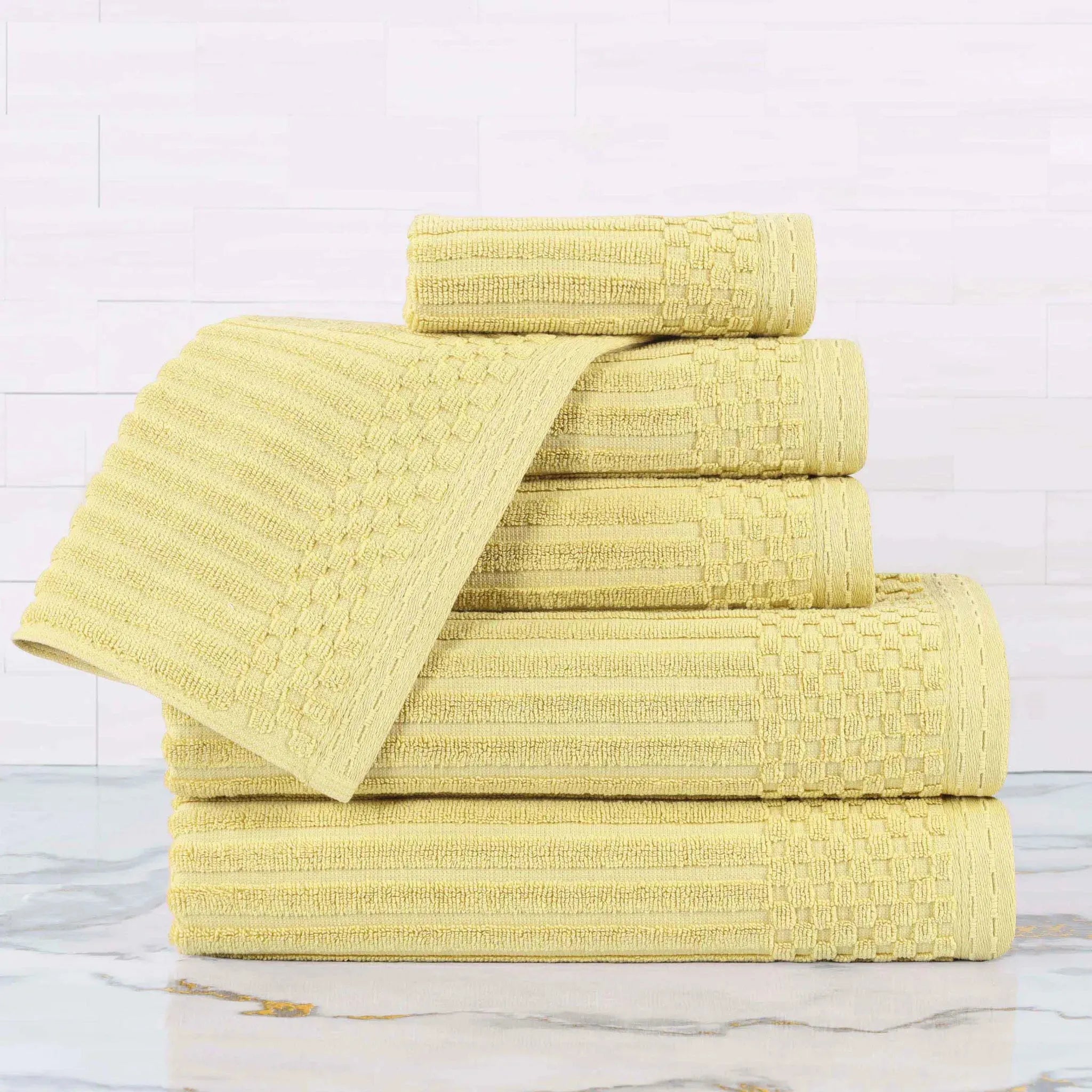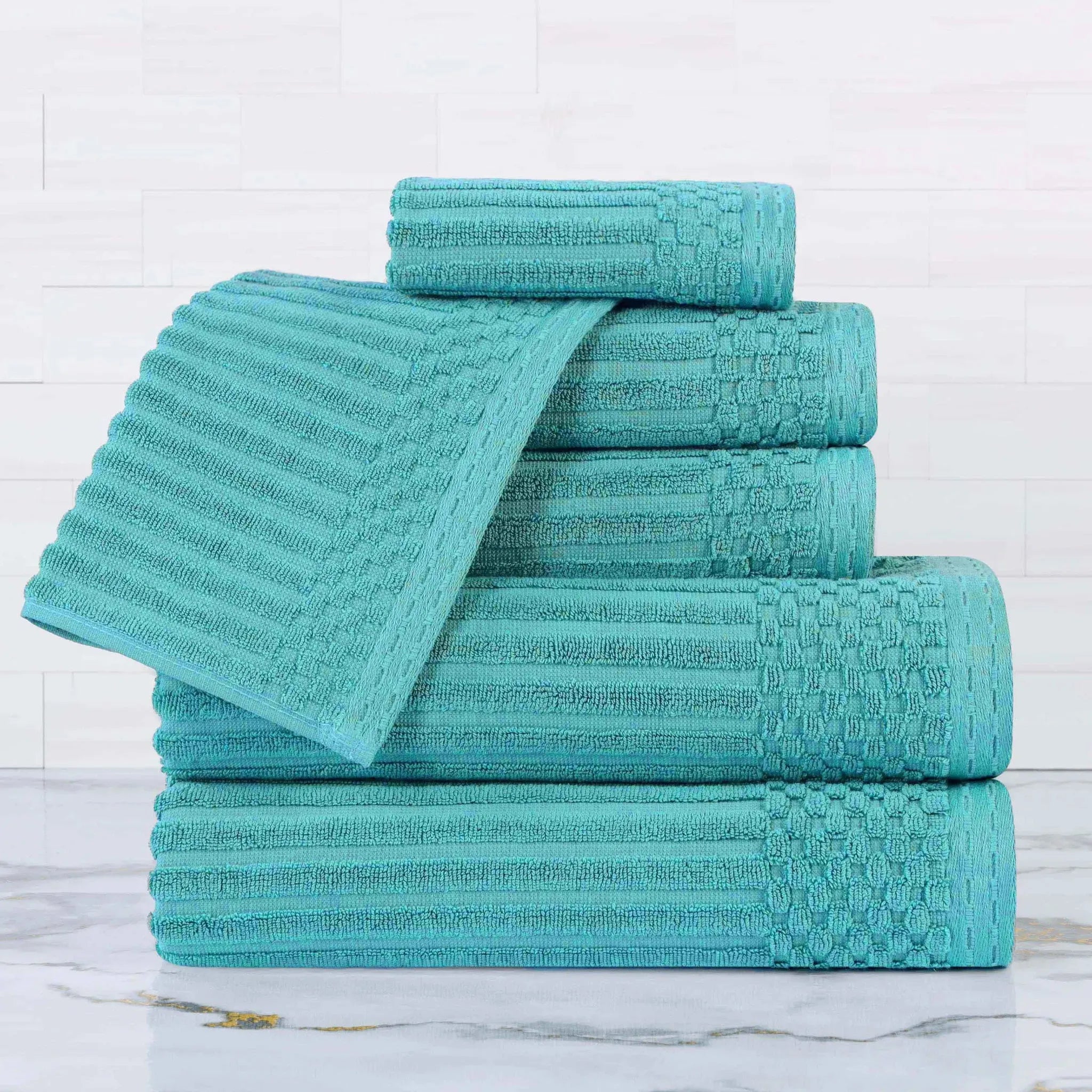 Upgrade your bathroom with our ultra-absorbent Soho ultra-absorbent Soho Living Bath Towels. Crafted from premium cotton, this 6-piece collection features a unique ribbed texture that not only looks elegant but also enhances absorbency and air-drying properties. Designed to provide a quick and efficient drying experience, this is the ideal solution for anyone searching for Soho Living Quick Dry Towels.