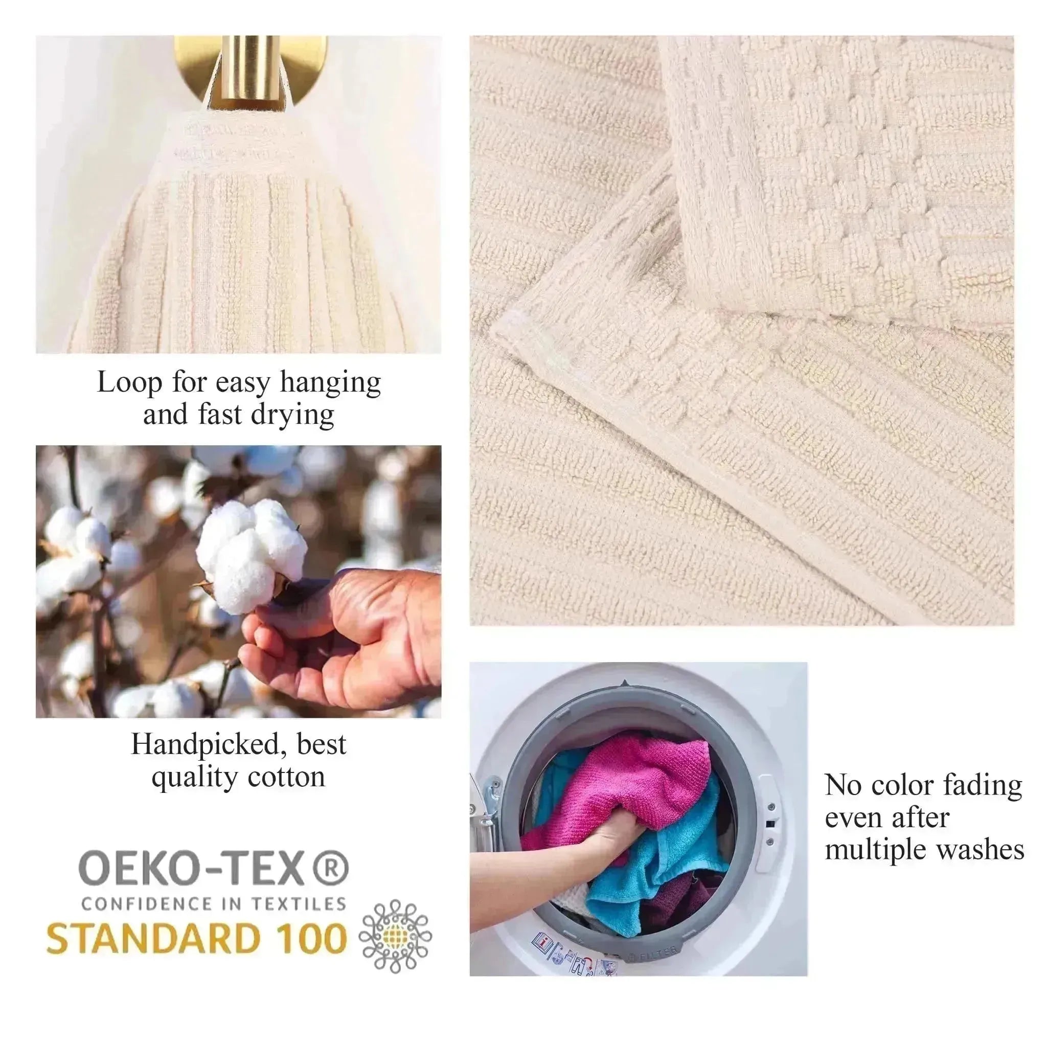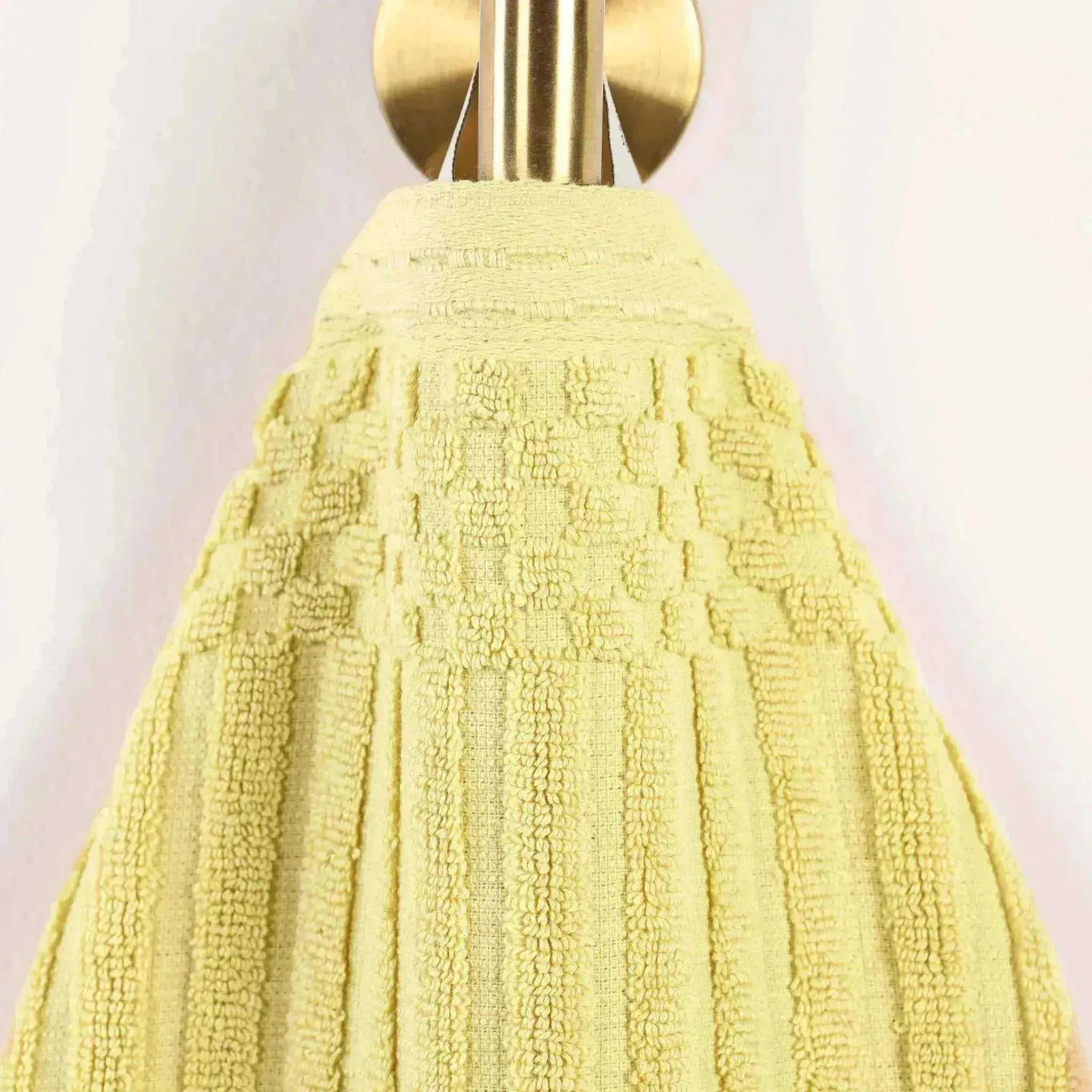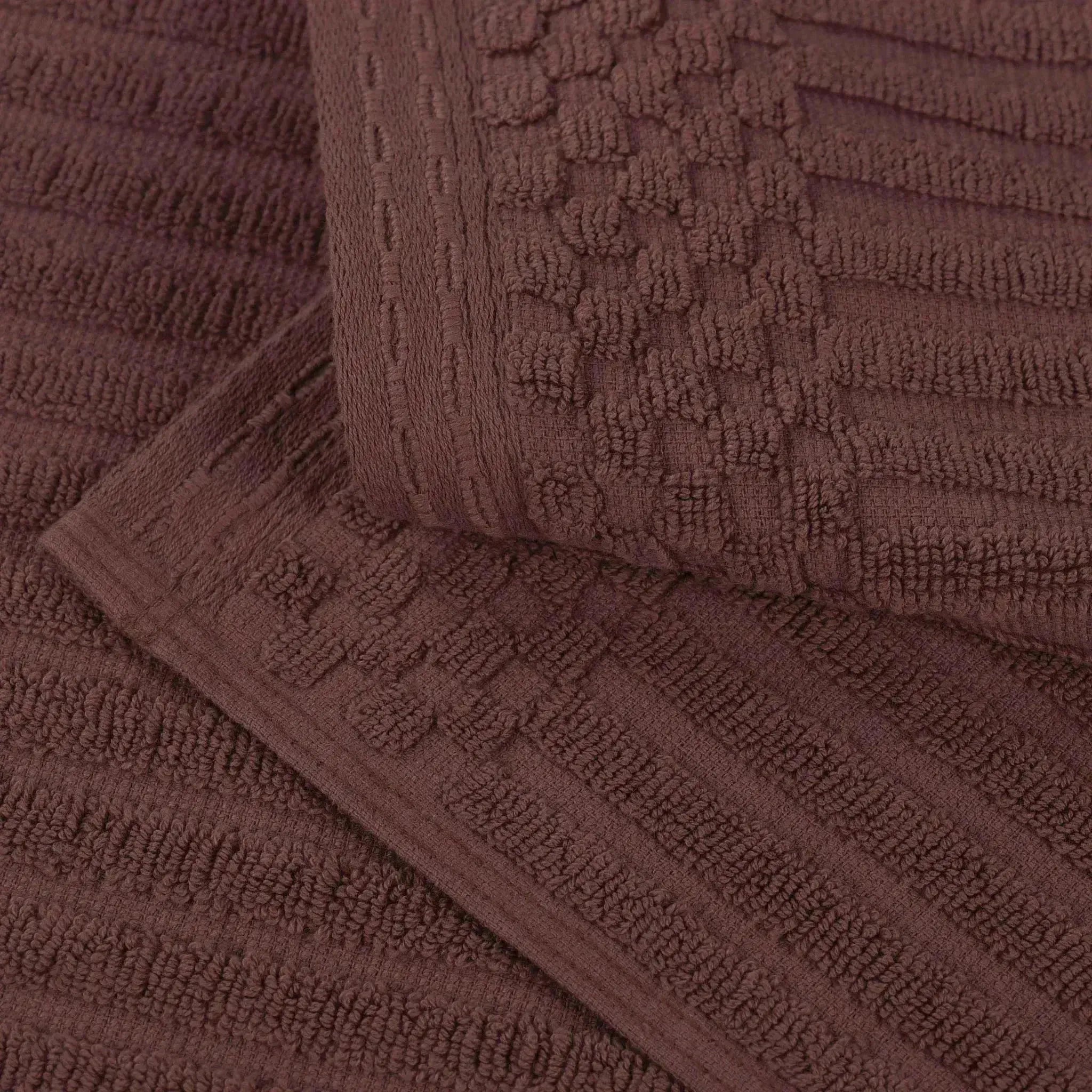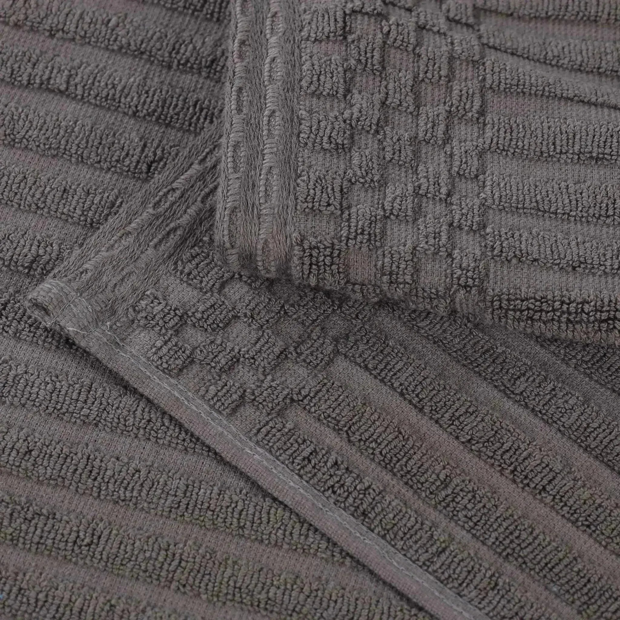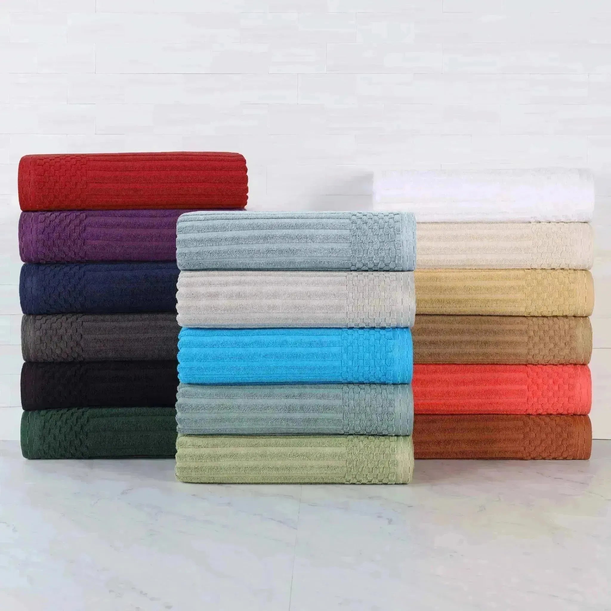 Crafted from premium cotton, this soft and stylish cotton bath towel set features a rib solid pattern with a checkered border, adding a modern touch to your towel ding. Designed with a terry loop weave and single-ply design, these towels soak up water quickly while maintaining long-lasting durability.
