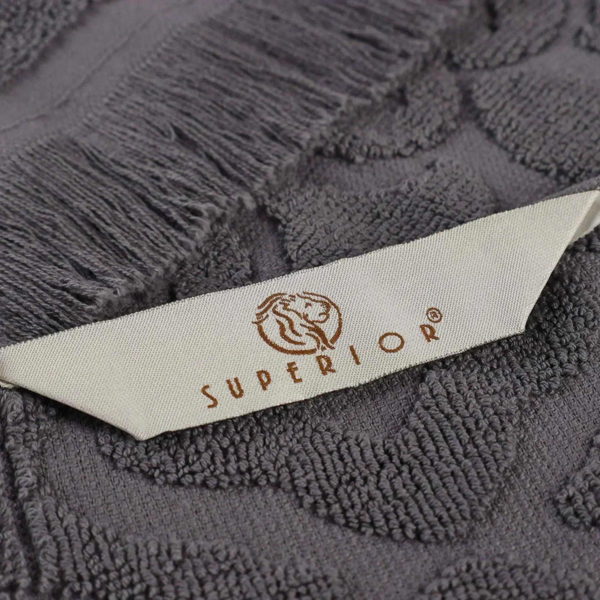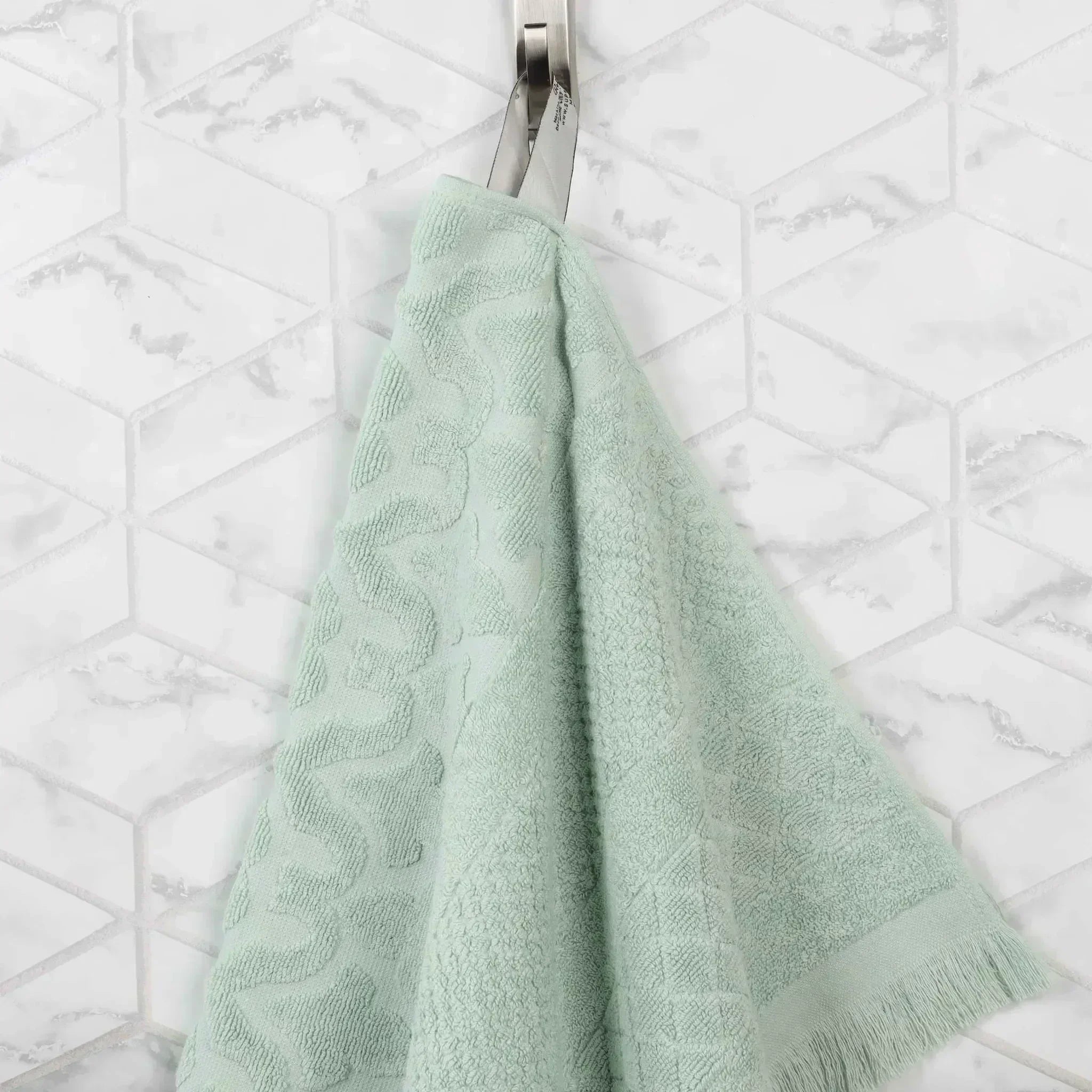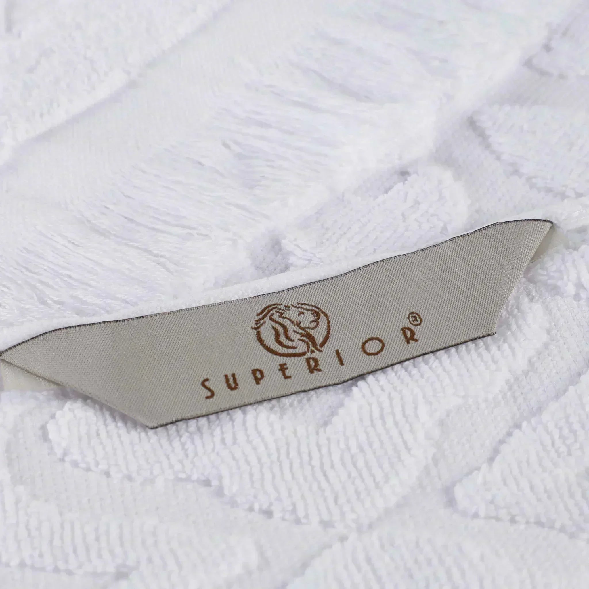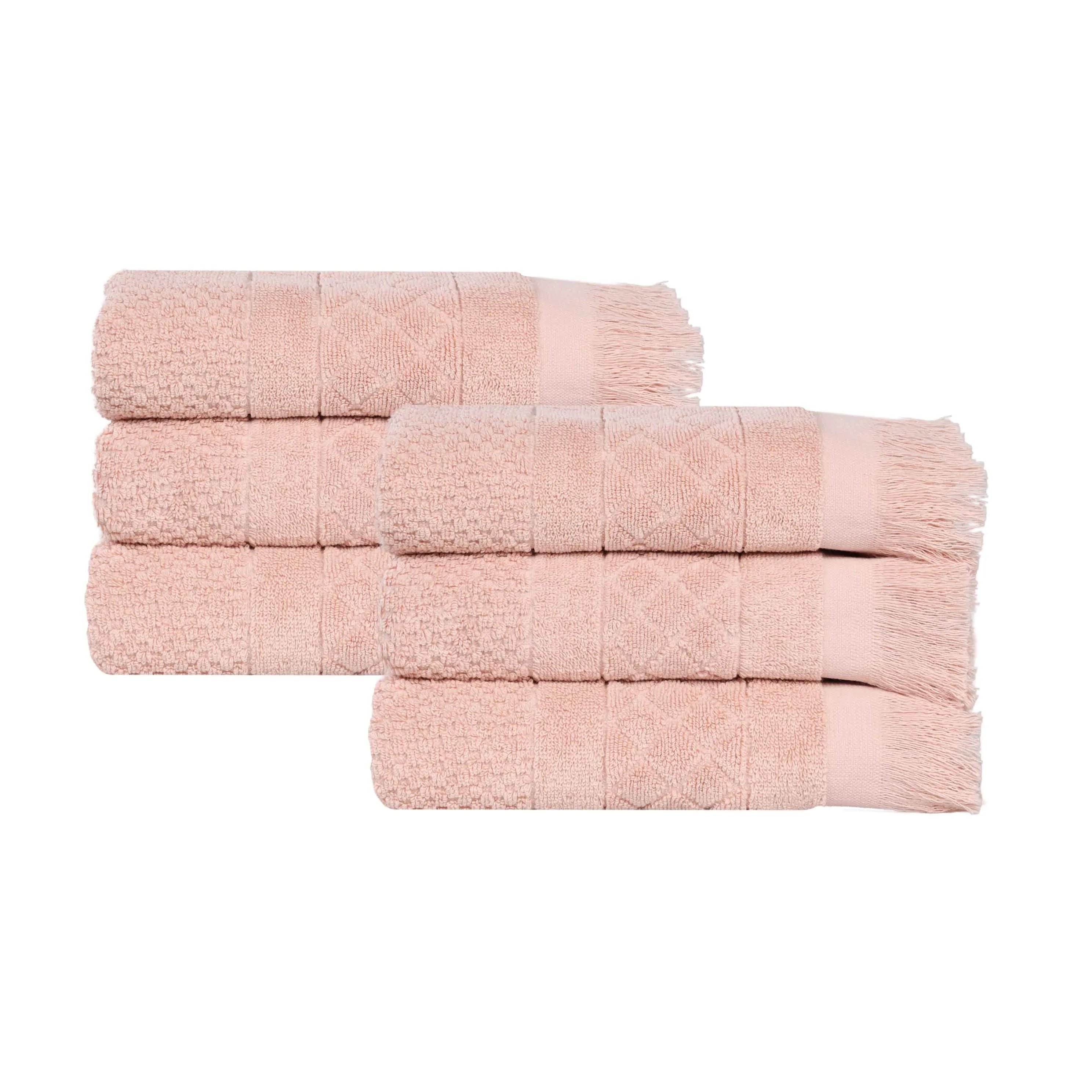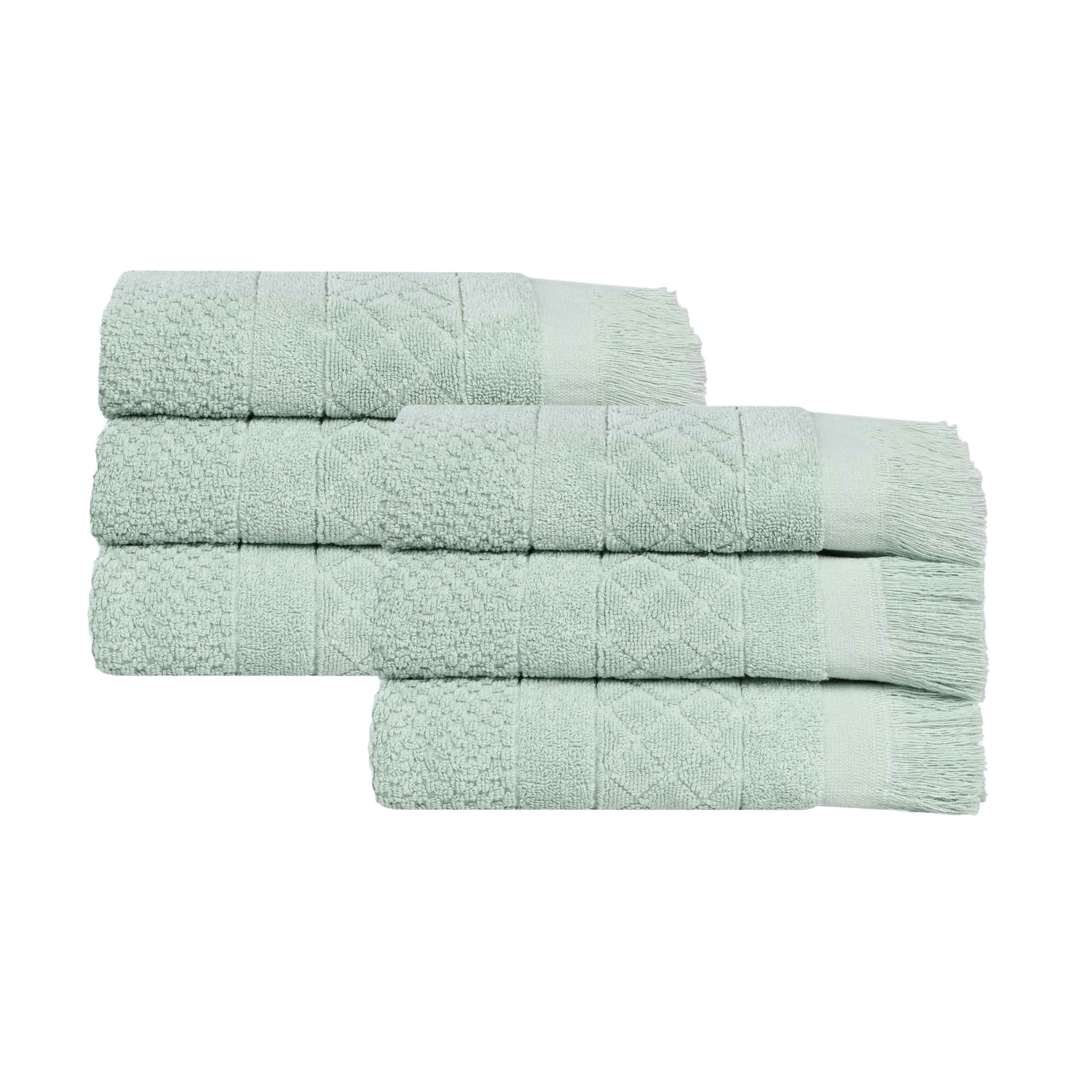 Seamlessly combine opulence and practicality with the lavish Superior Rolla Cotton Geometric Jacquard Plush Soft Absorbent Hand Towel Set of 6. These Cotton towels are crafted for a soft, absorbent, and luxurious experience. Boasting a geometric pattern with frayed edges, bring unique style to your guest or master bathroom with this bundle. Each towel is finished with a durable single-ply to withstand countless washes and last you years to come. Featuring a hanging loop on each piece, enjoy both convenience and comfort with this versatile set.