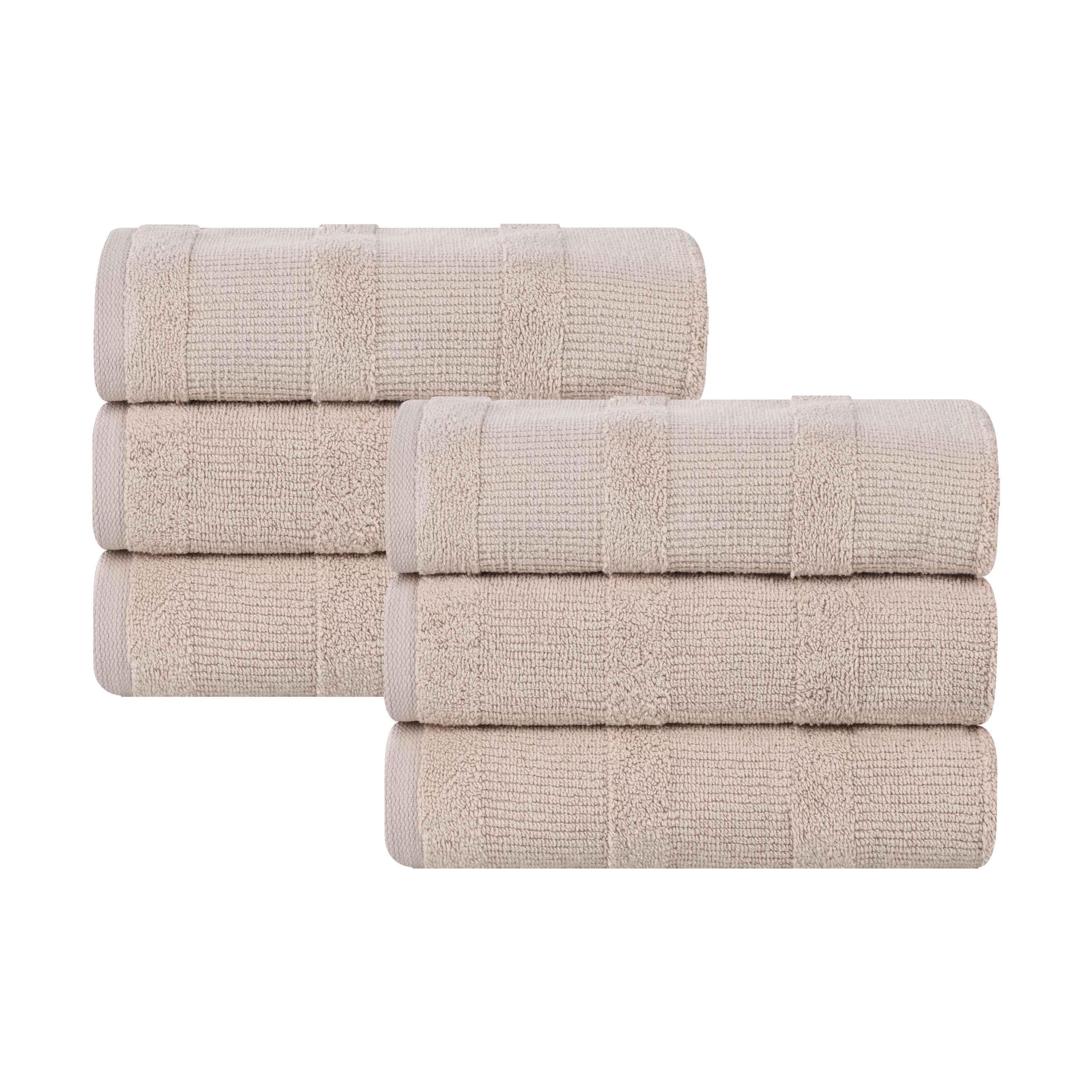 Add a touch of luxury and irresistible comfort to your bath or kitchen with the Superior Roma Cotton Ribbed Hand Towel Set. Crafted from naturally soft cotton, each towel is soft on your skin and highly absorbent to get you dry quickly. The medium towel weight gives each towel a lofty feel to transform your bathroom into a personal spa. Featuring a ribbed high-low design that is fluffy and quick dryi