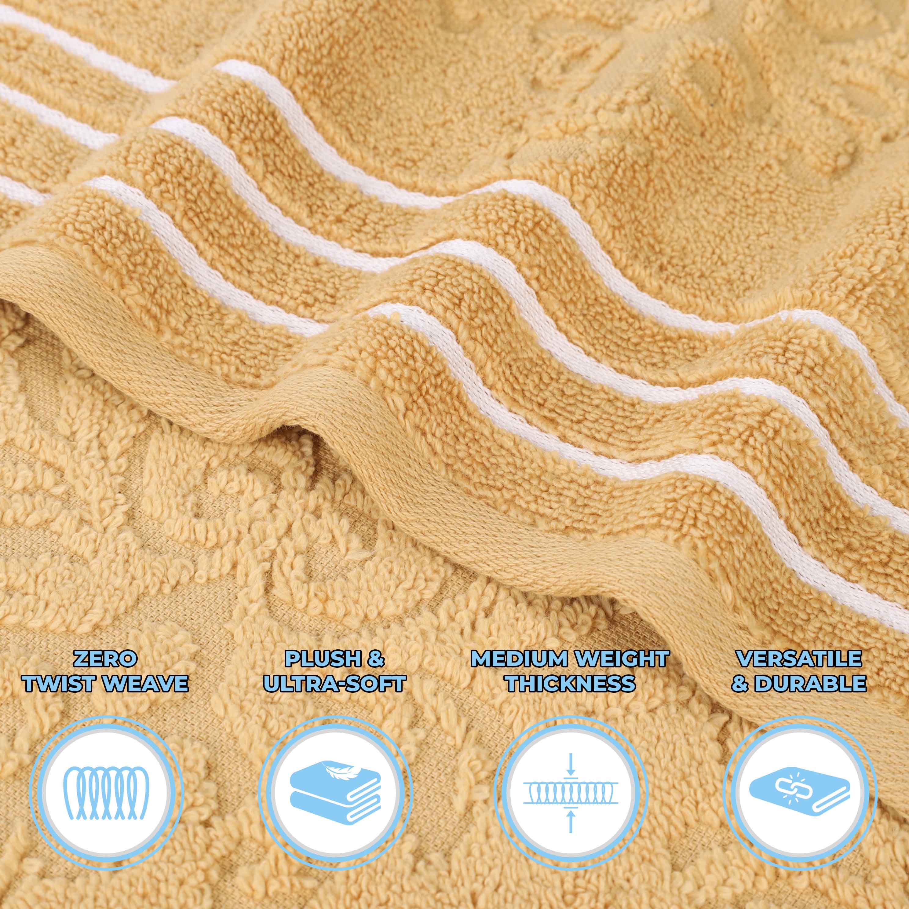 Indulge in spa-like treatment with our Sadie Zero Twist Cotton Floral Solid and Jacquard Face Towel Washcloth Set. These 100% Cotton towels are crafted with a zero twist technique for a softer, more absorbent, and more luxurious towel those of regularly twisted towels. Featuring an assortment of solid and jacquard towels that boast an elegant floral motif, bring unique style to your guest or master bathroom with this bundle. Each towel is finished with secure hemmed edges to avoid fraying and a durable single-ply to withstand countless washes and last you years to come. Enjoy both convenience and comfort with this versatile set.