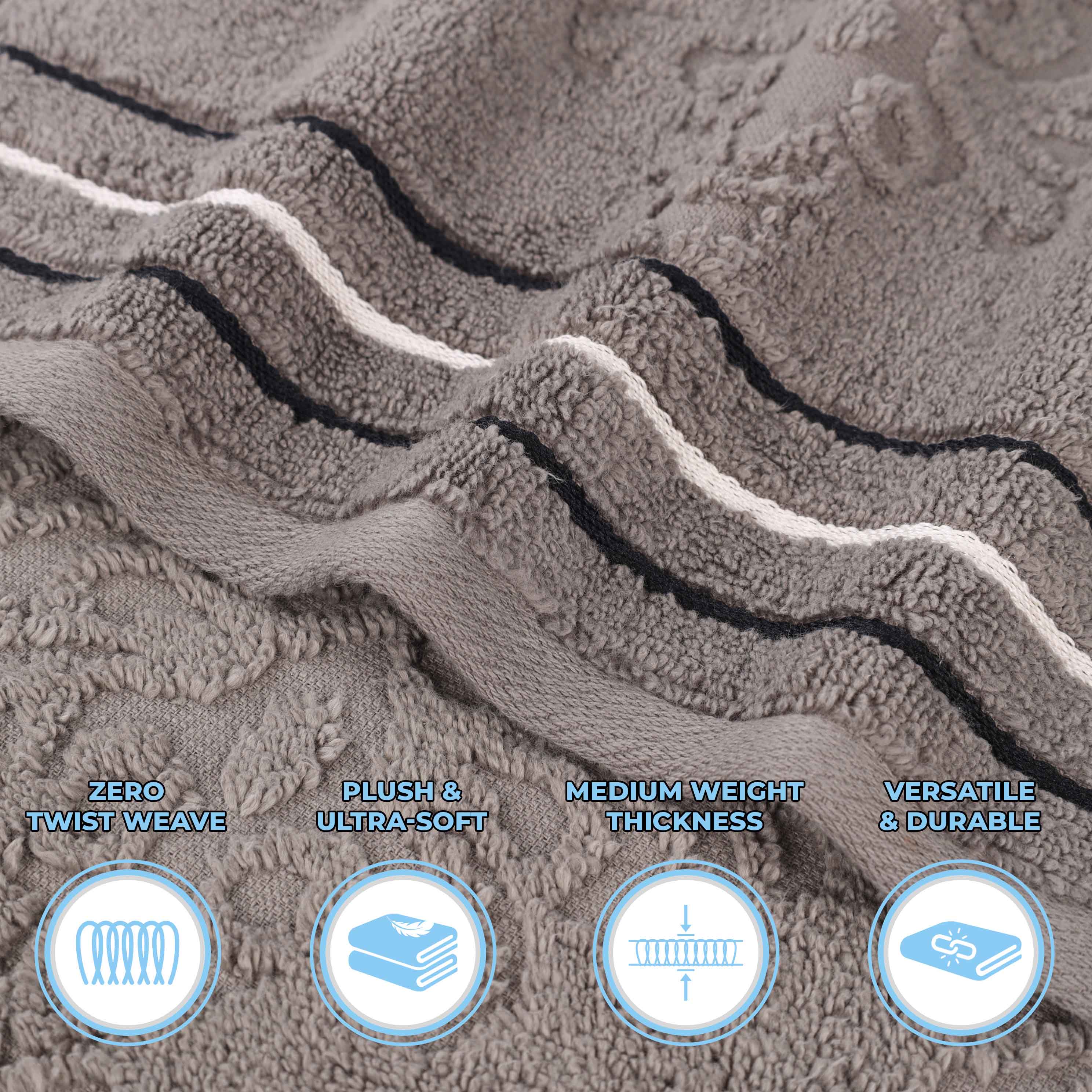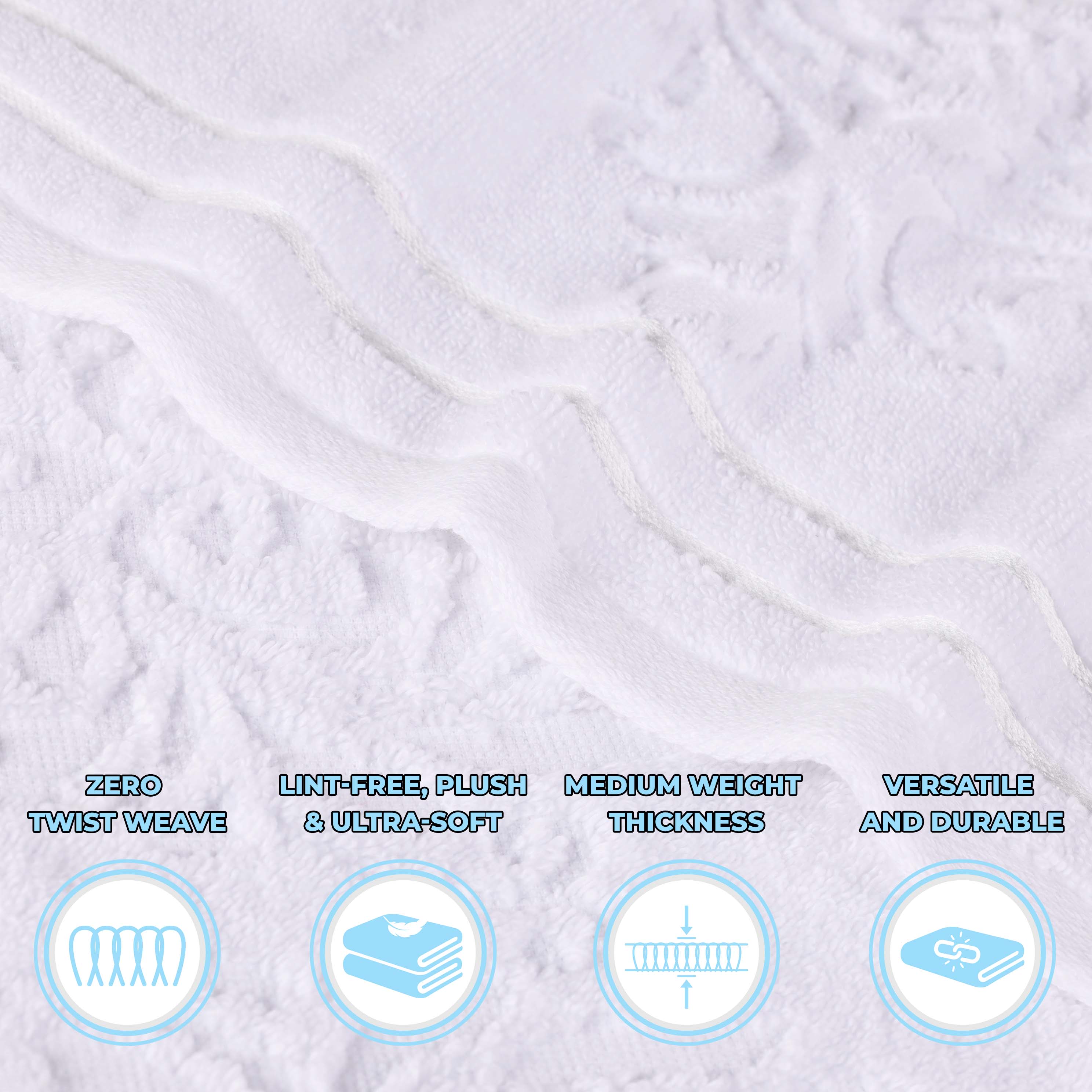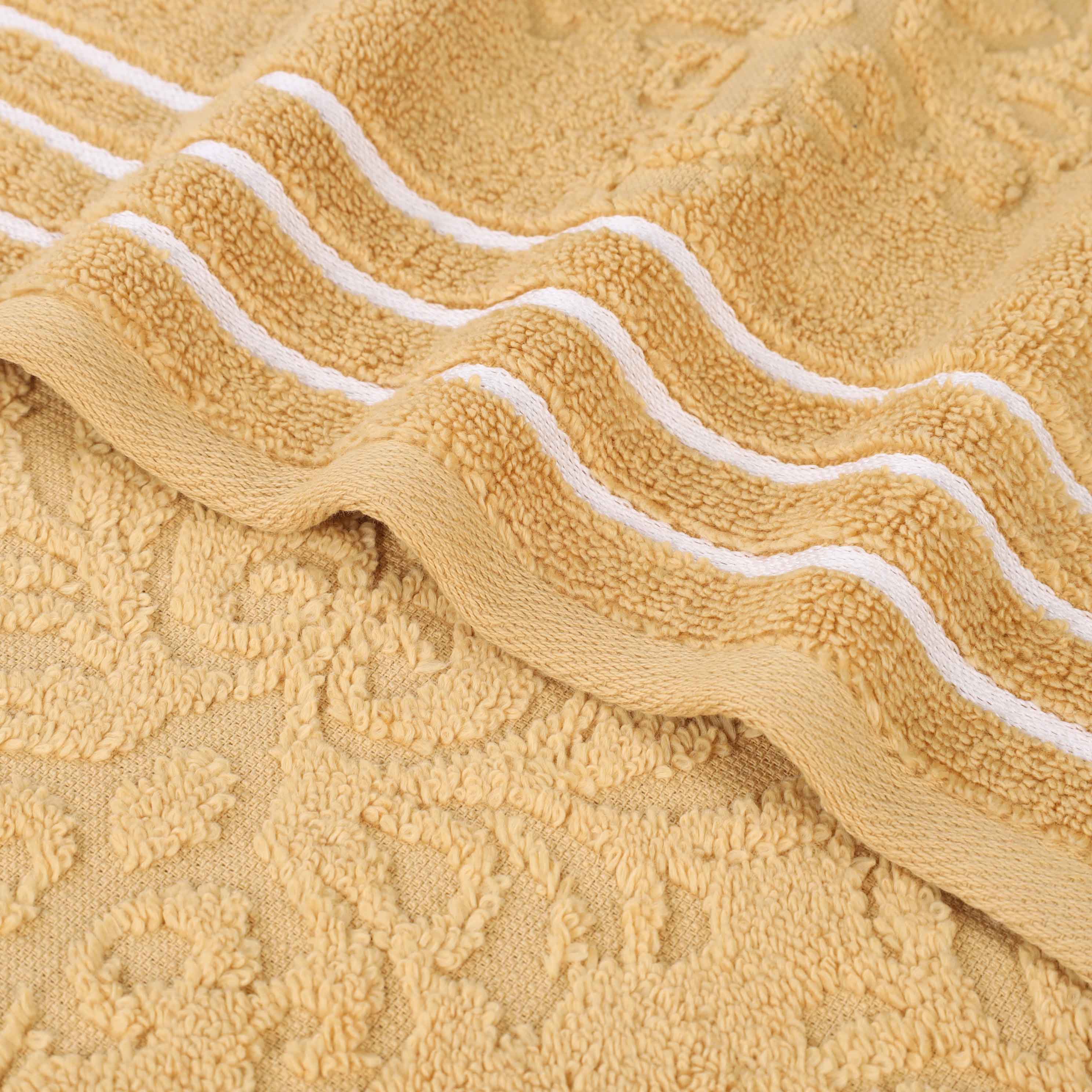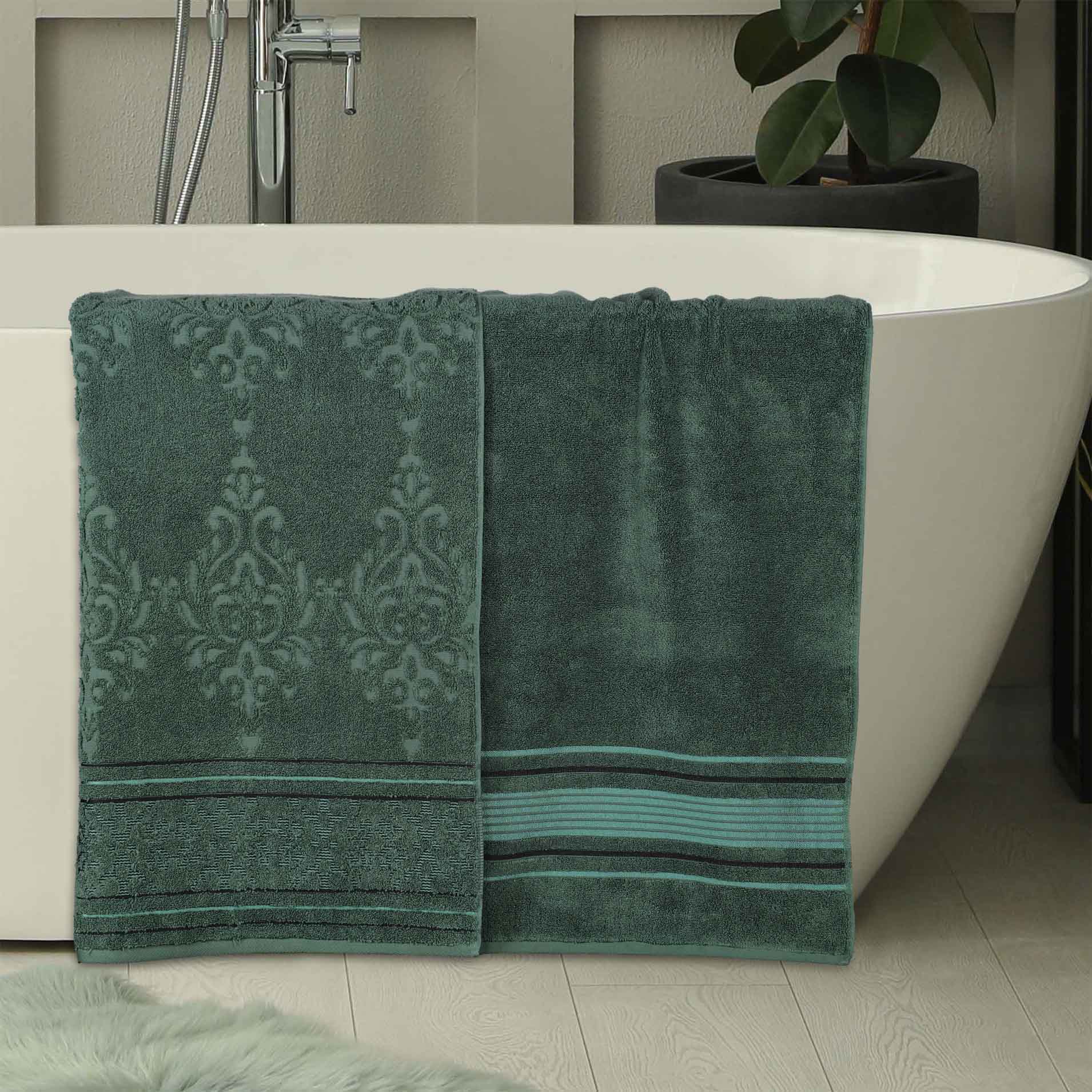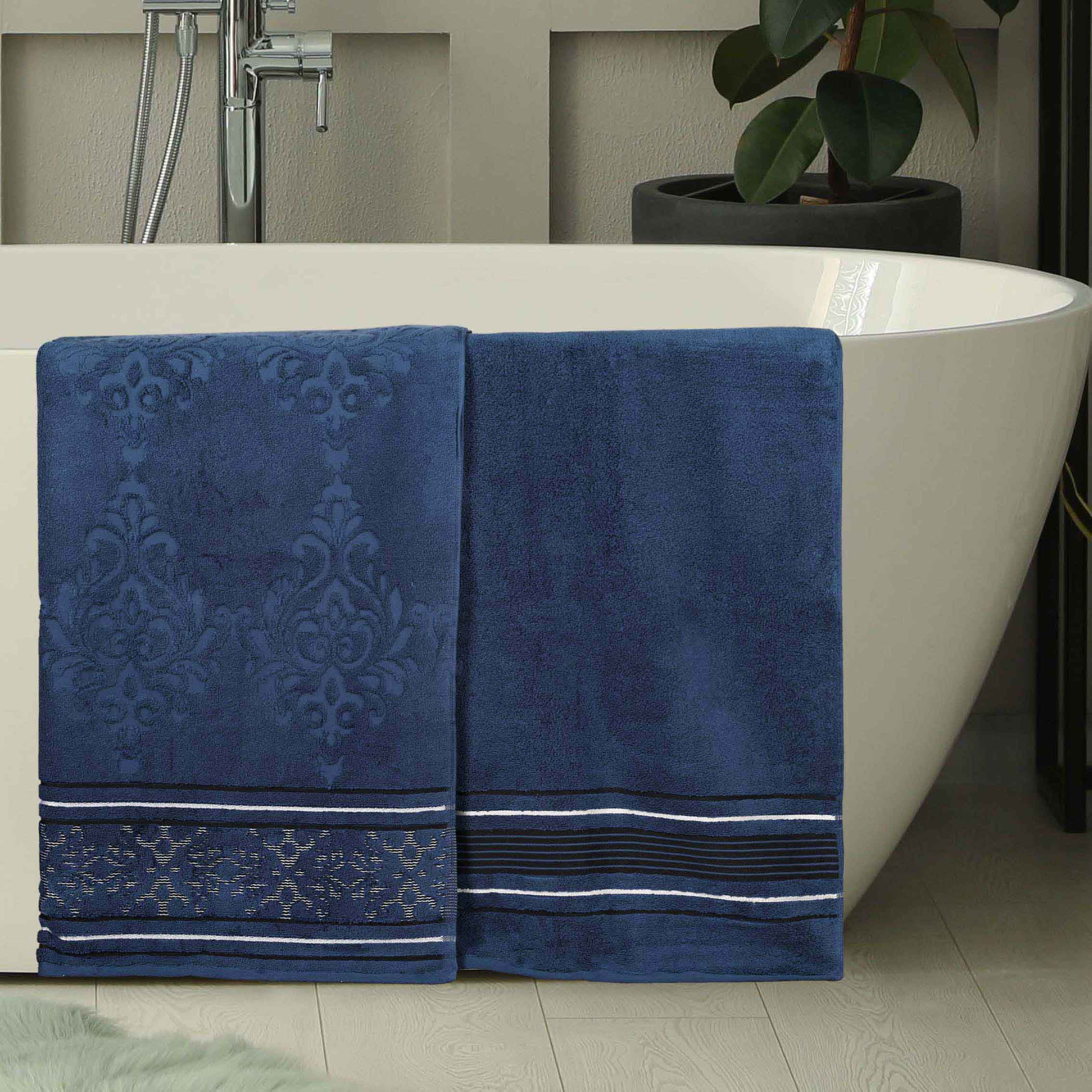 Transform your bathroom to a haven of self-care and luxury with our Sadie Zero Twist Cotton Floral Solid and Jacquard Bath Sheet Set. These 100% Cotton towels are crafted with a zero twist technique for a softer, more absorbent, and more luxurious towel those of regularly twisted towels. Featuring an assortment of solid and jacquard towels that boast an elegant floral motif, bring unique style to your guest or master bathroom with this duo. Each towel is finished with secure hemmed edges to avoid fraying and a durable single-ply to withstand countless washes and last you years to come. Finished with a hanging loop on each piece, enjoy both convenience and comfort with this versatile set.