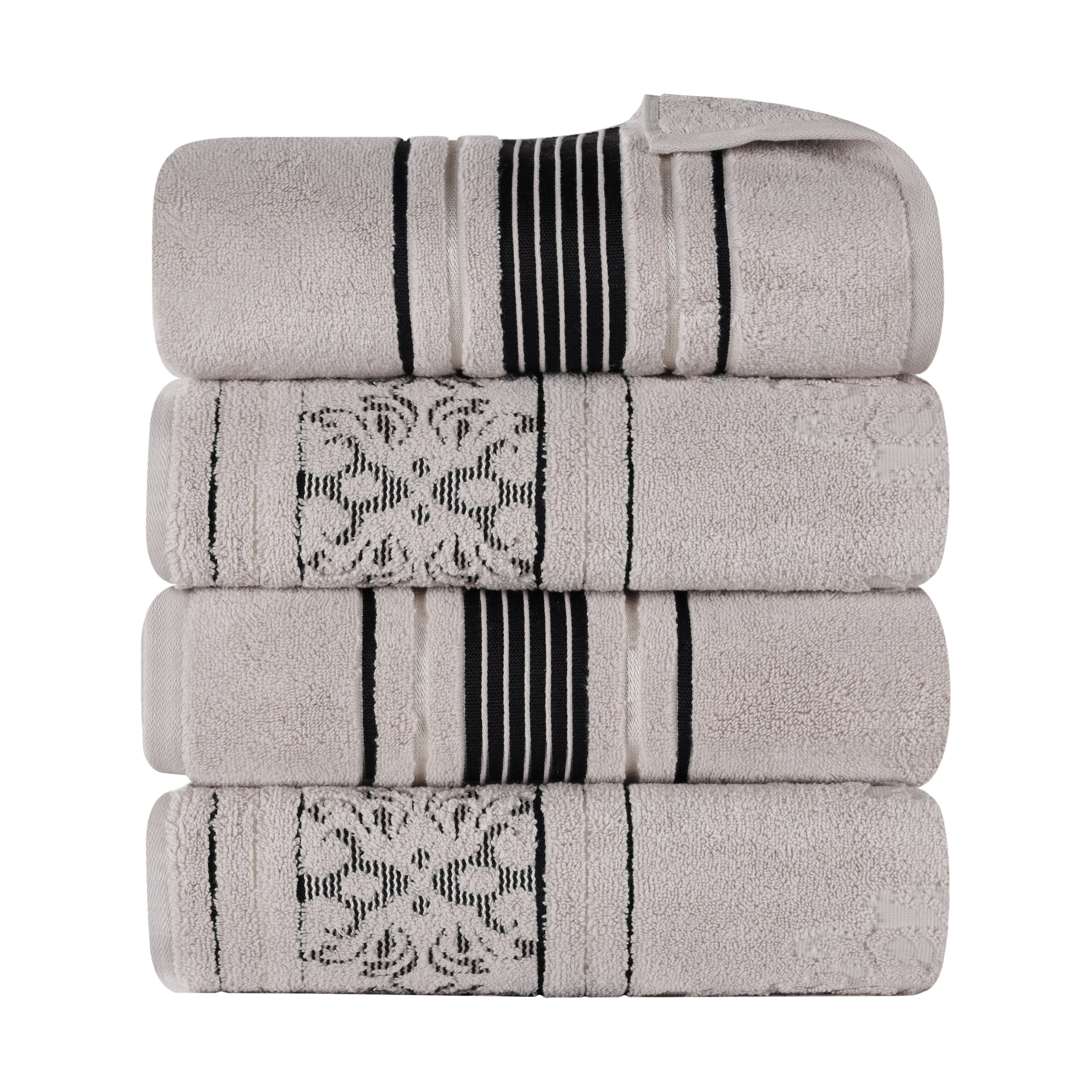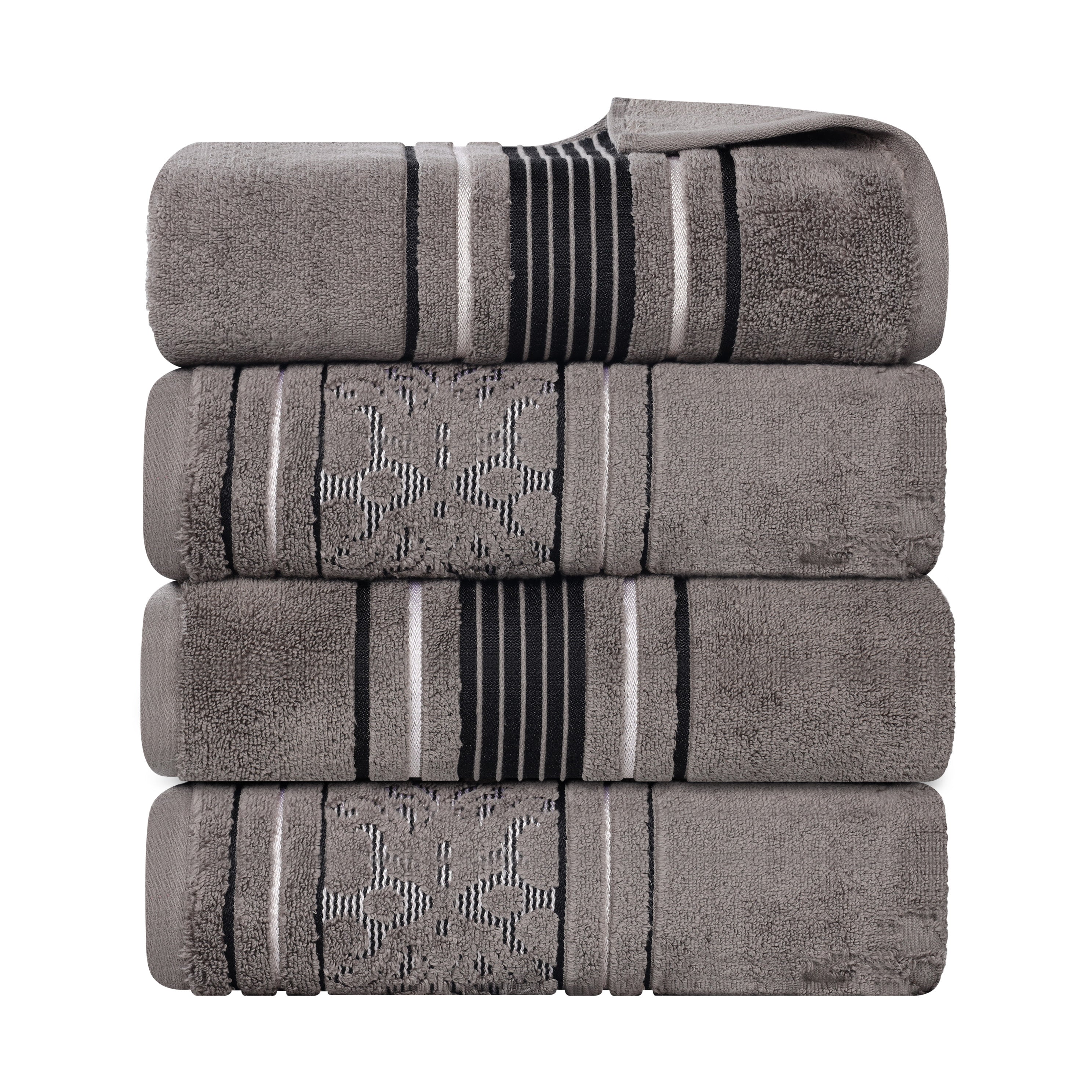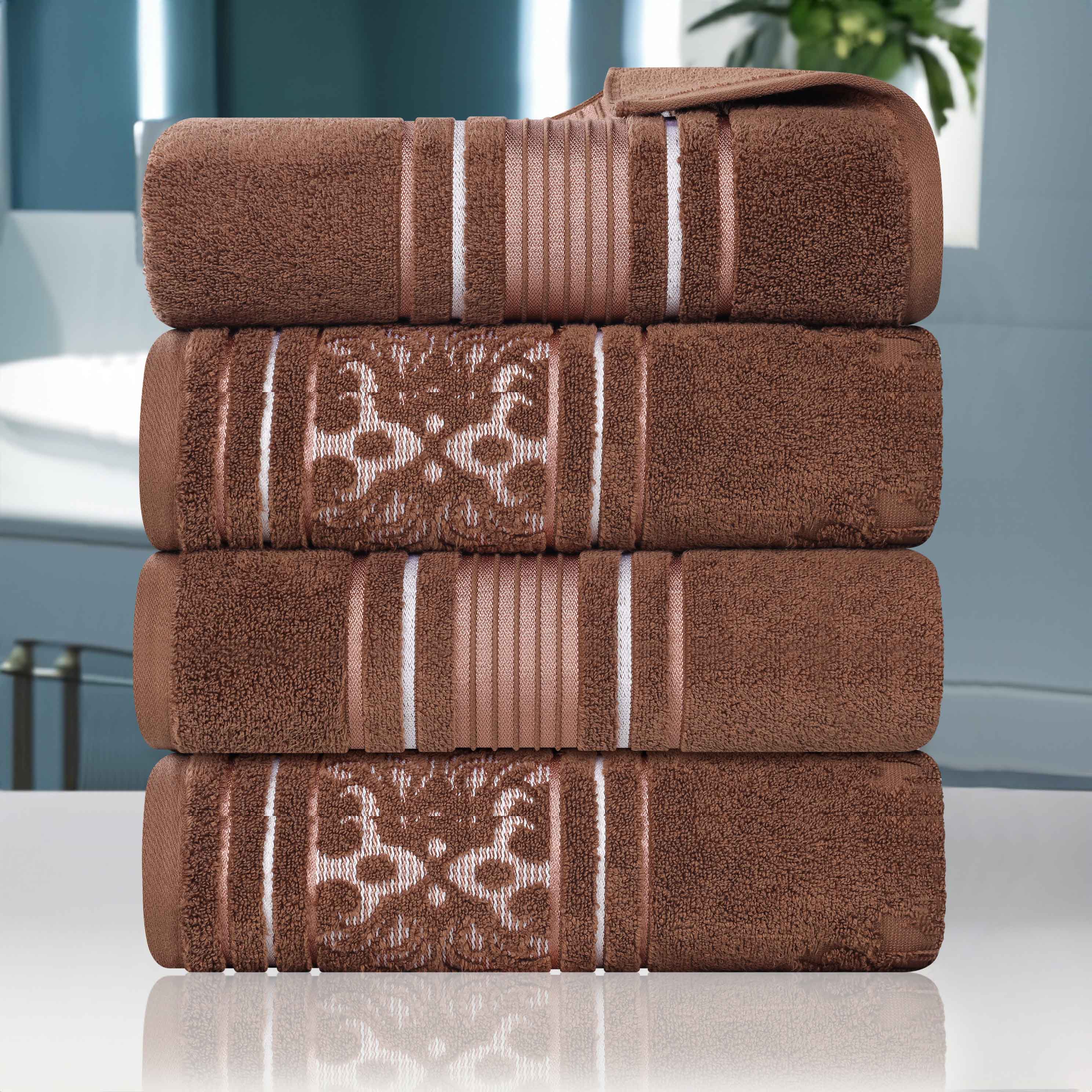 Enjoy quick drying and unparalleled coziness with the impressive Sadie Zero Twist Cotton Floral Solid and Jacquard Bath Towel Set. These 100% Cotton towels are crafted with a zero twist technique for a softer, more absorbent, and more luxurious towel those of regularly twisted towels. Featuring an assortment of solid and jacquard towels that boast an elegant floral motif, bring unique style to your guest or master bathroom with this bundle. Each towel is finished with secure hemmed edges to avoid fraying and a durable single-ply to withstand countless washes and last you years to come. Finished with a hanging loop on each piece, enjoy both convenience and comfort with this versatile set.