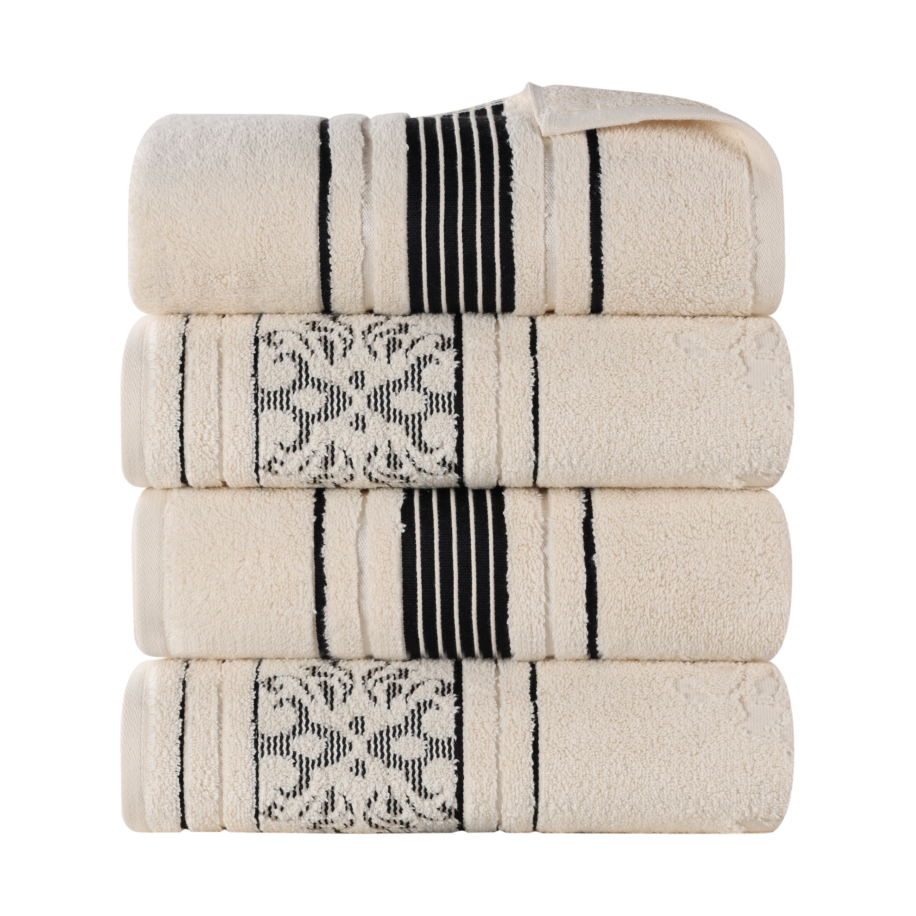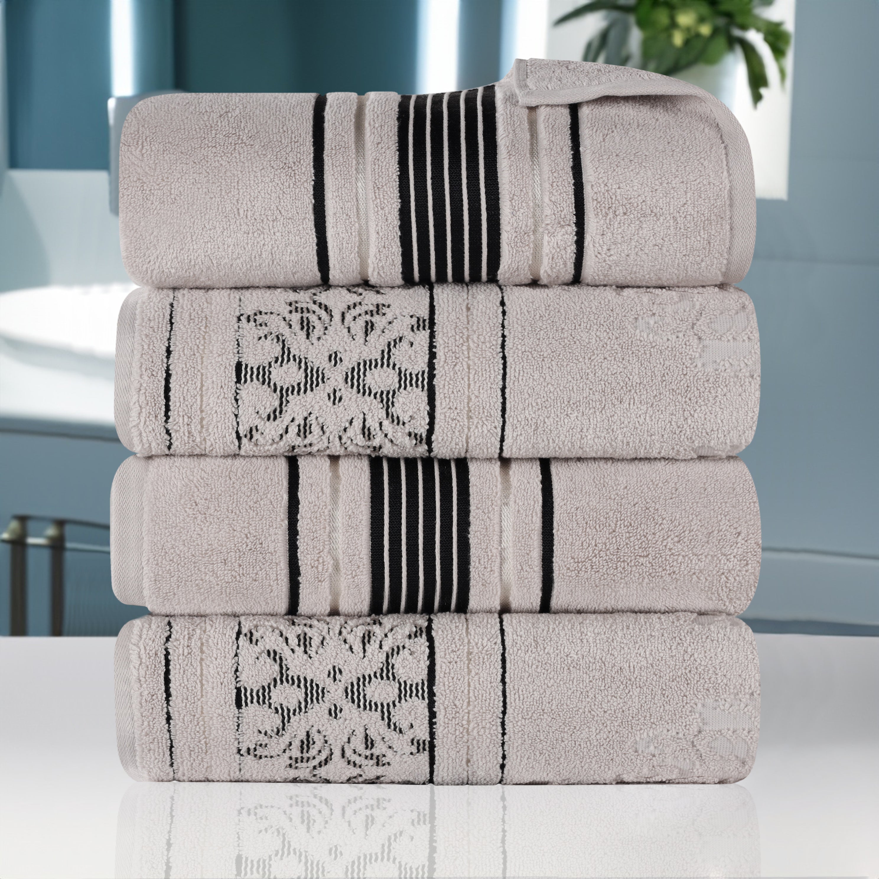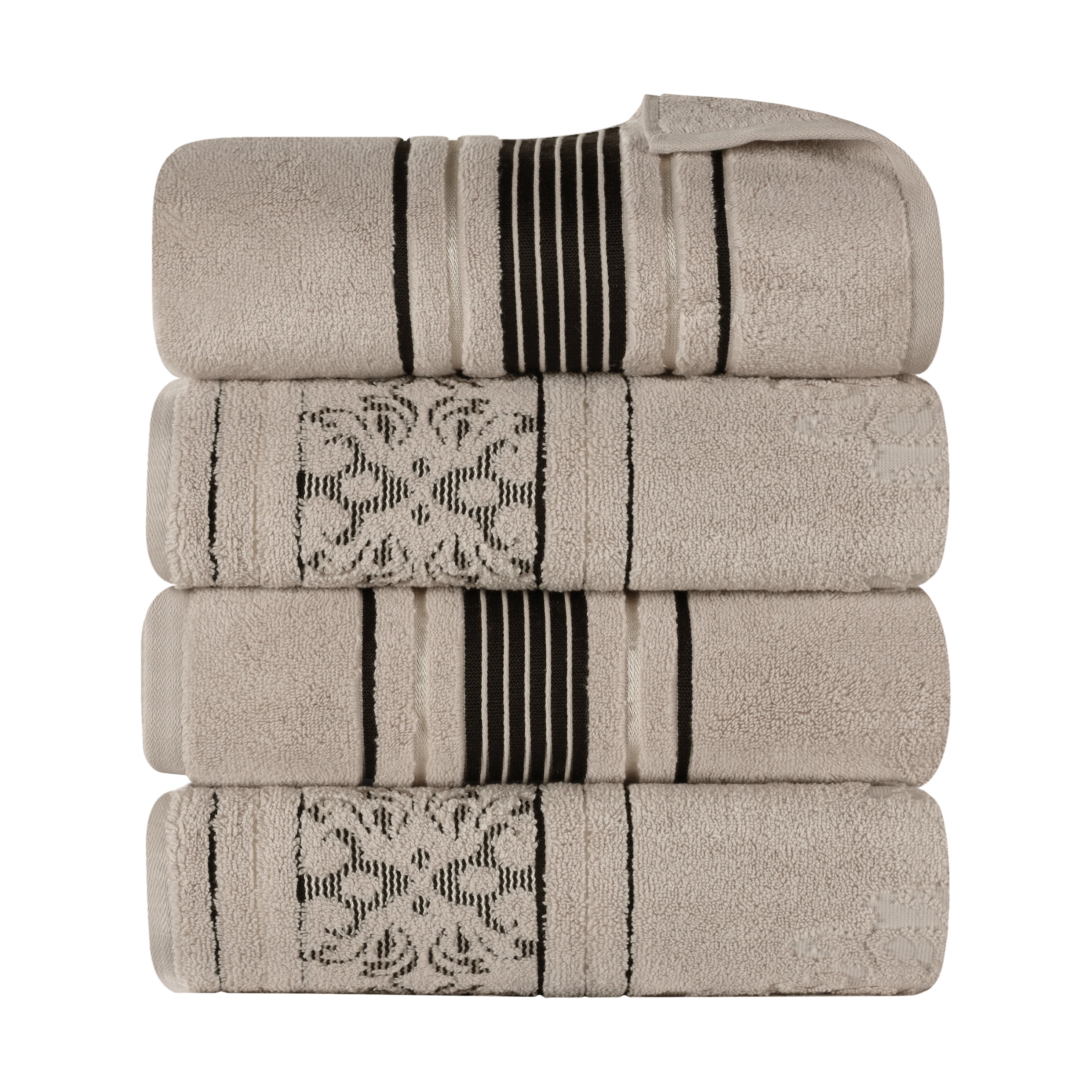 Enjoy quick drying and unparalleled coziness with the impressive Sadie Zero Twist Cotton Floral Solid and Jacquard Bath Towel Set. These 100% Cotton towels are crafted with a zero twist technique for a softer, more absorbent, and more luxurious towel those of regularly twisted towels. Featuring an assortment of solid and jacquard towels that boast an elegant floral motif, bring unique style to your guest or master bathroom with this bundle. Each towel is finished with secure hemmed edges to avoid fraying and a durable single-ply to withstand countless washes and last you years to come. Finished with a hanging loop on each piece, enjoy both convenience and comfort with this versatile set.
