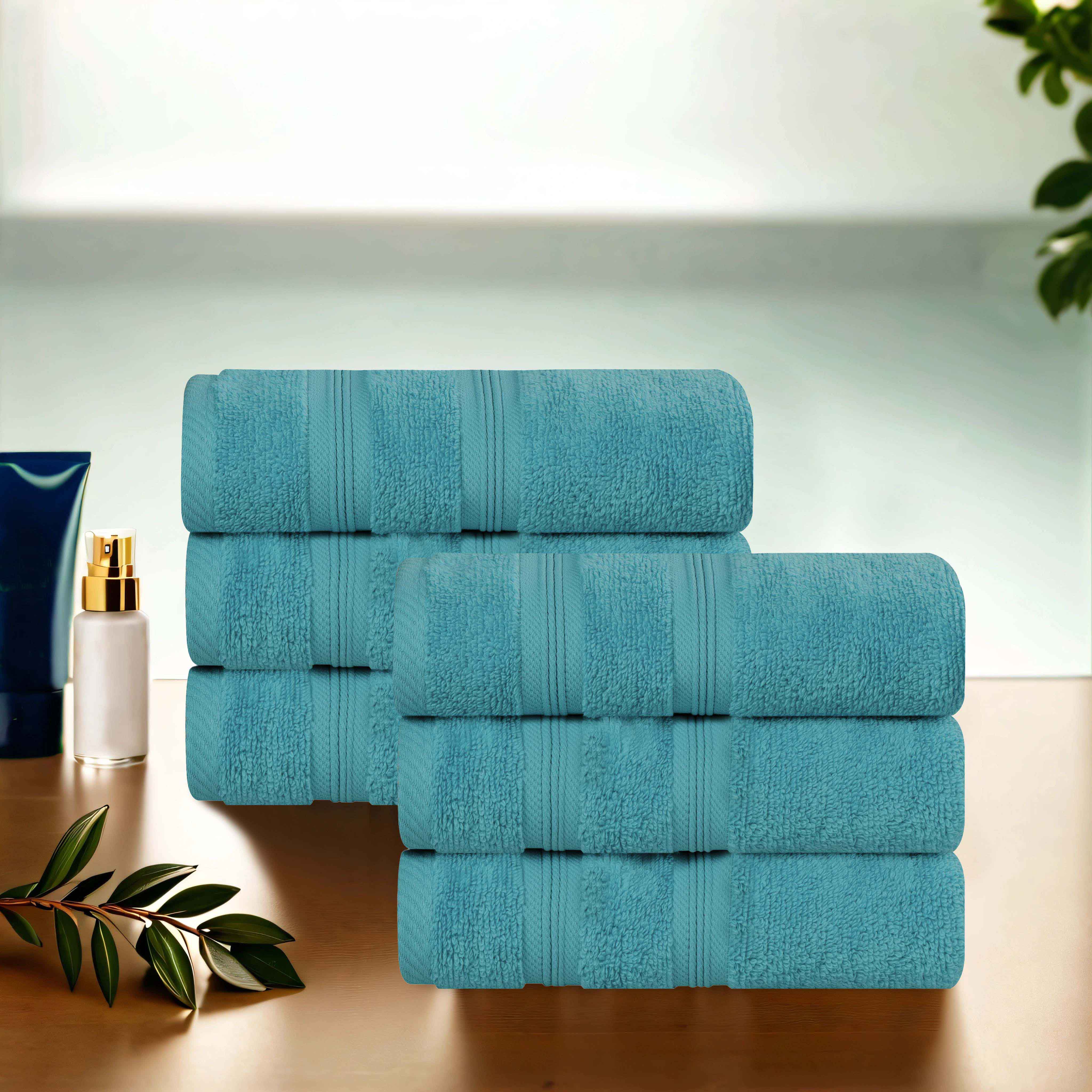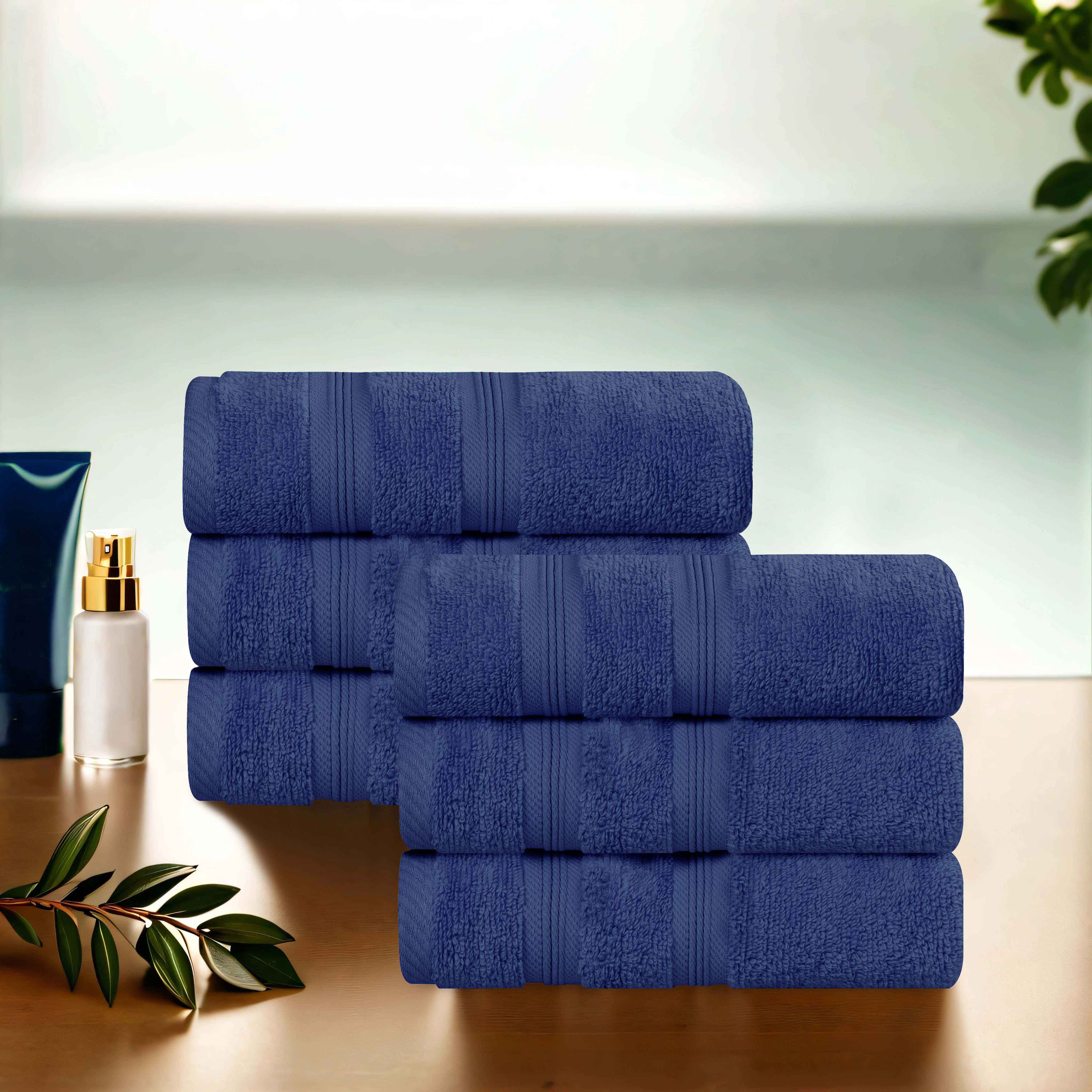 Simple in design, effortlessly give your bathroom decor a new look with our Smart Dry Zero Twist Cotton Hand Towel Set. Each towel in this generous set features a timeless, ribbed border detail and a durable hem that prevents fraying. The cotton fibers are ultra absorbent and soften with every wash. This set includes everything you need to refresh your bath decor. Available in a wide range of colors, these bathing essentials are the perfect way to upgrade your bathroom space and improve your drying experience.