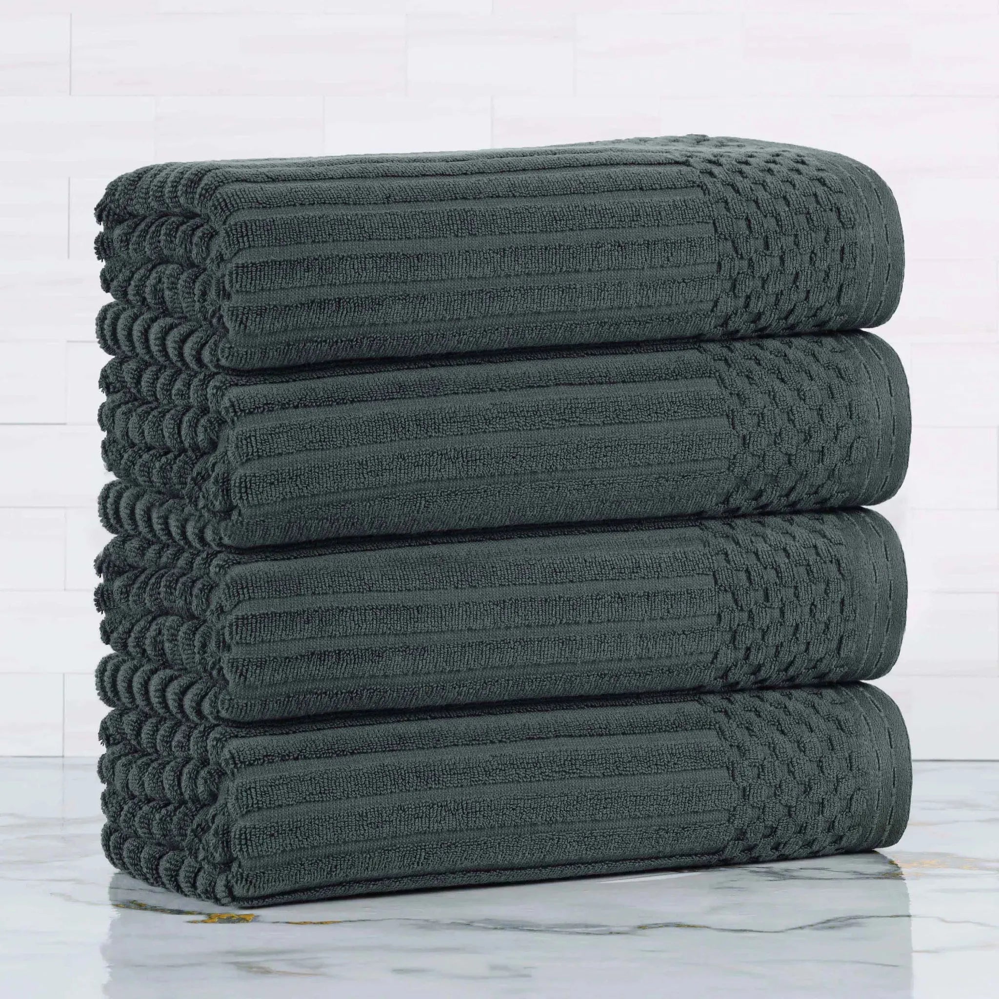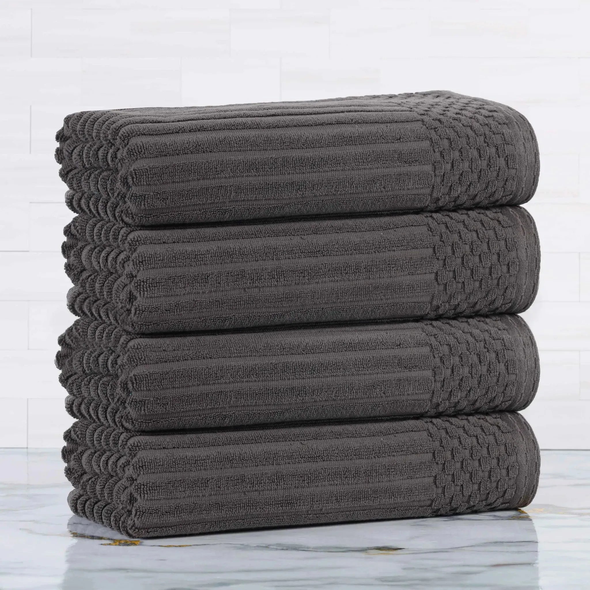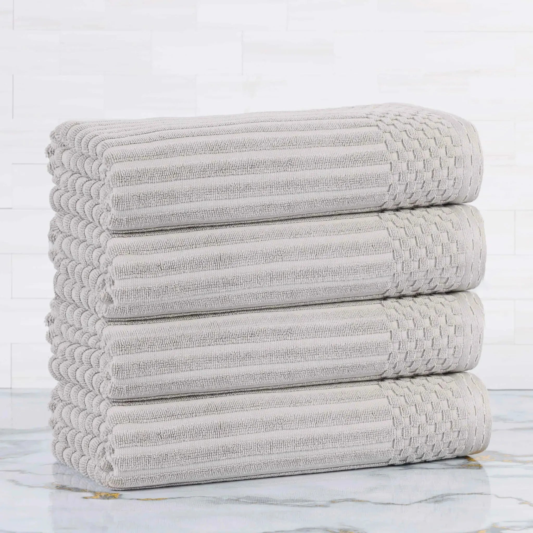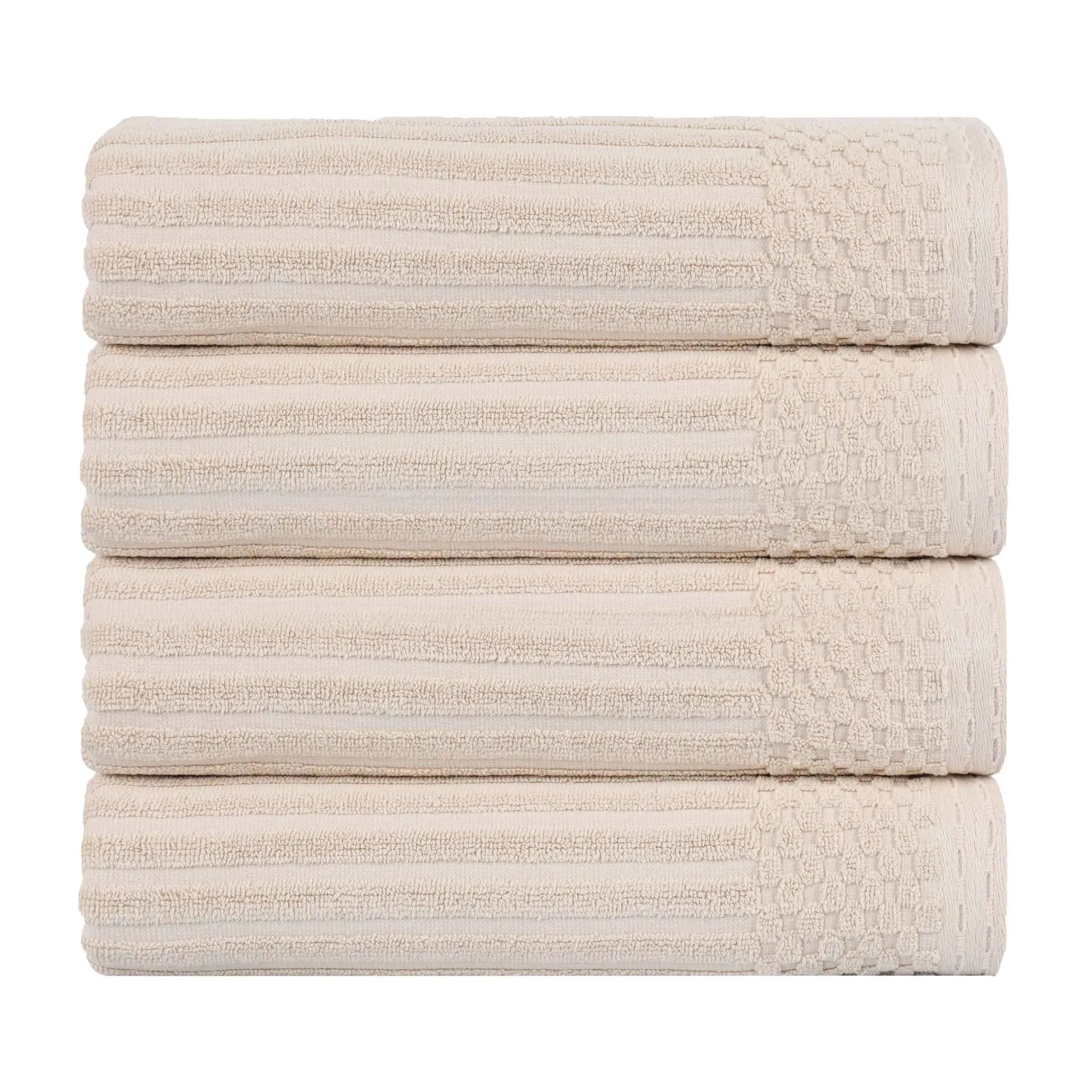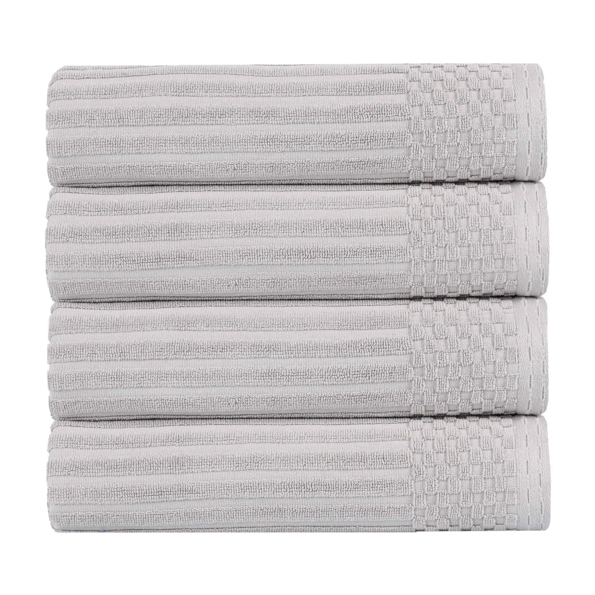 Upgrade your bathroom essentials with the Ribbed Cotton Absorbent Bath Towel Set of 4, a perfect blend of comfort, design, and durability.