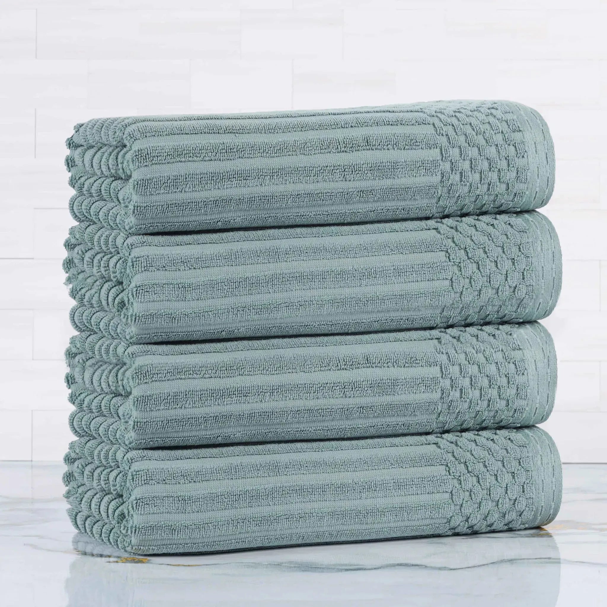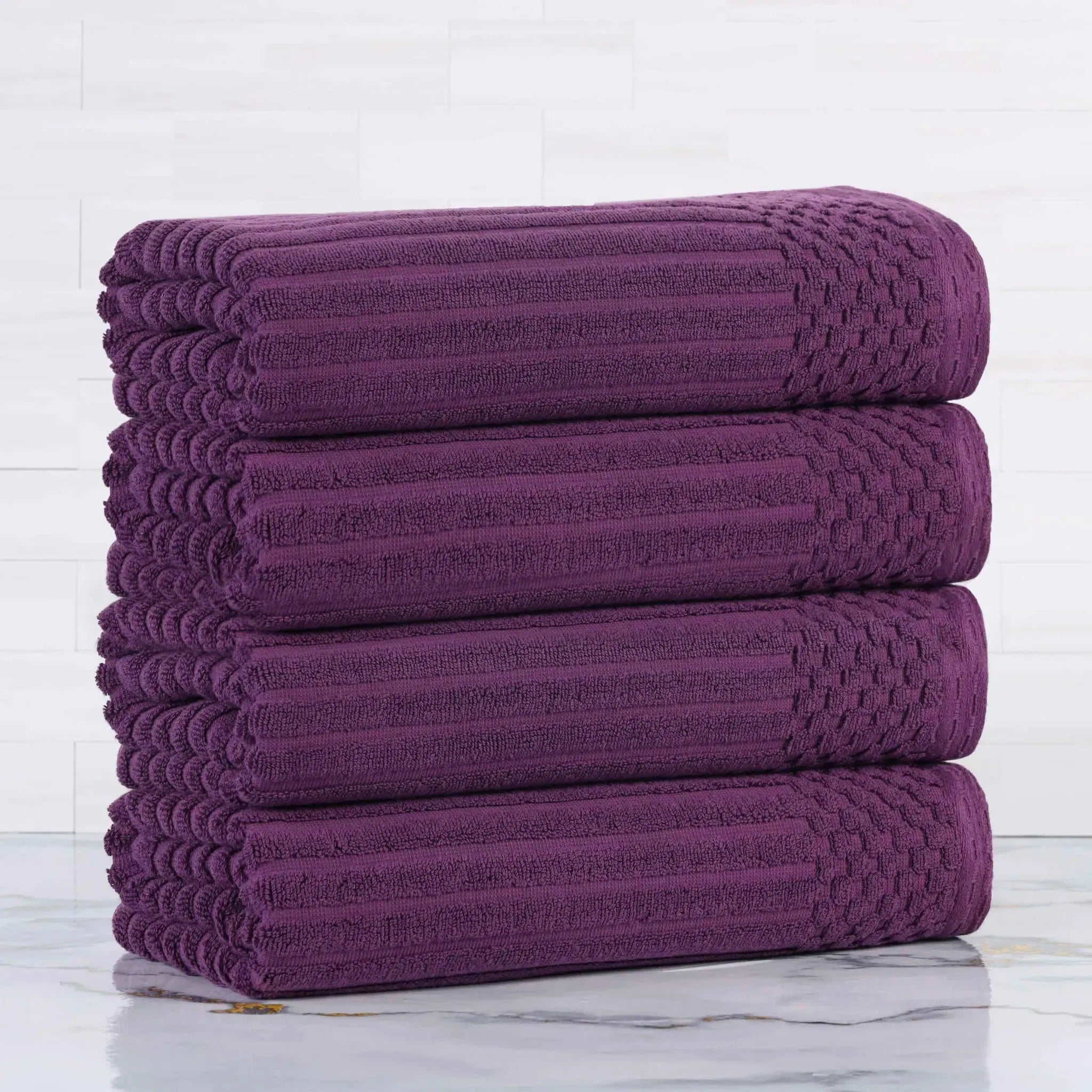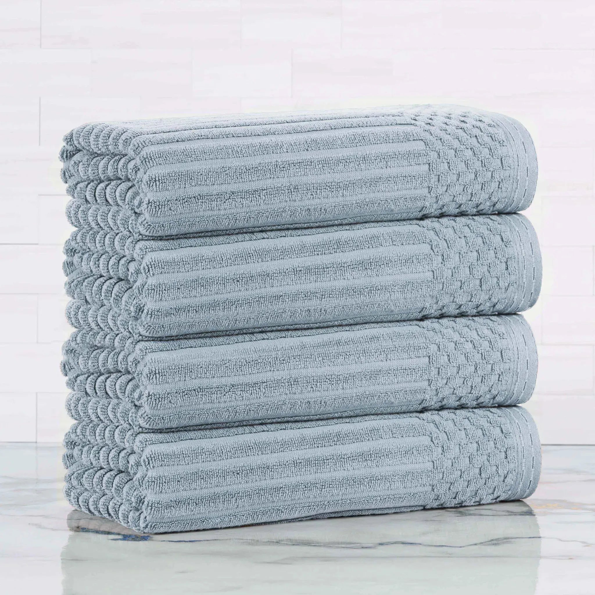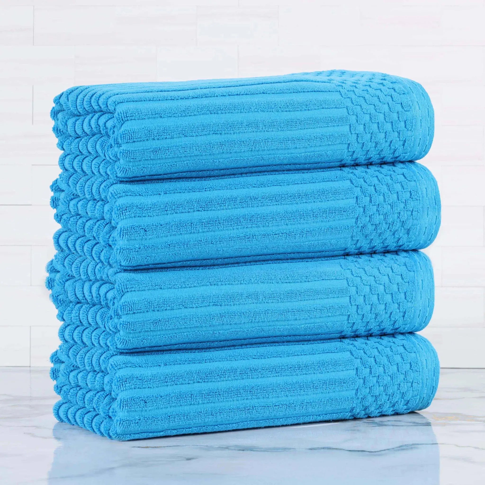 Upgrade your bathroom essentials with the Ribbed Cotton Absorbent Bath Towel Set of 4, a perfect blend of comfort, design, and durability.