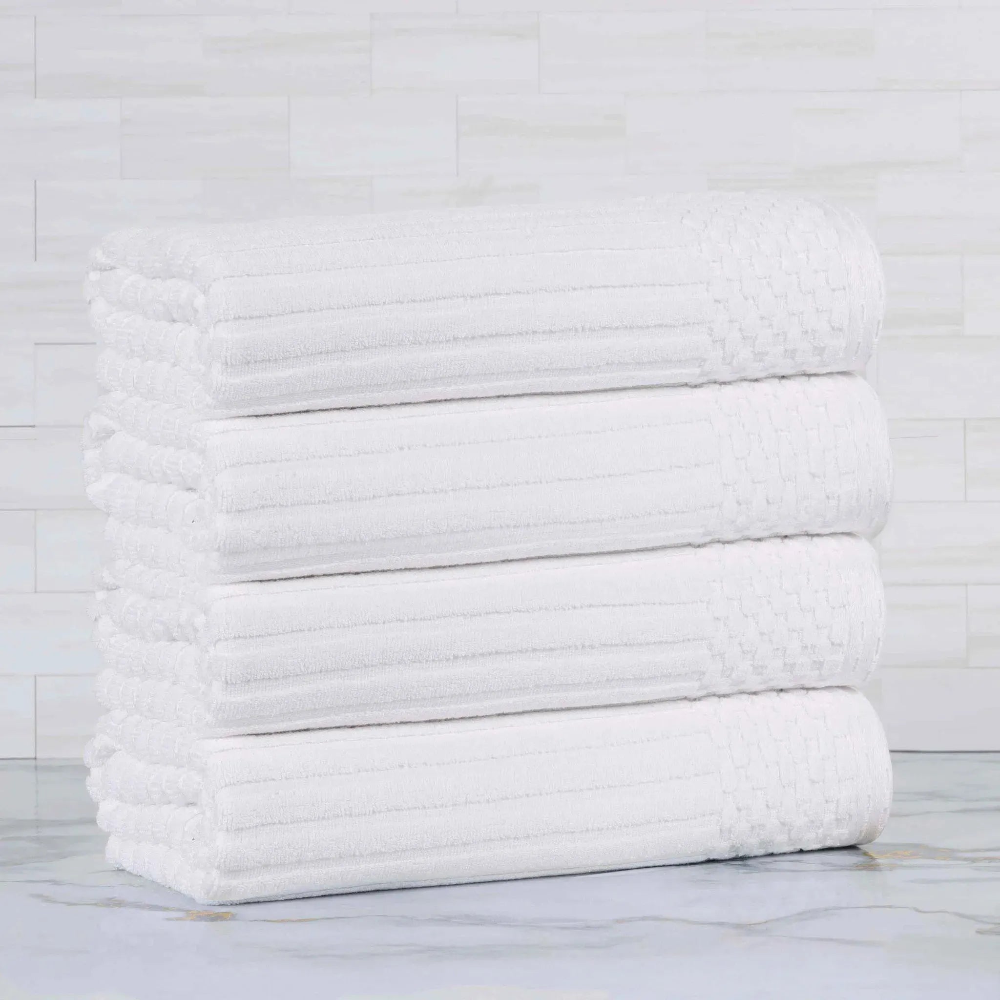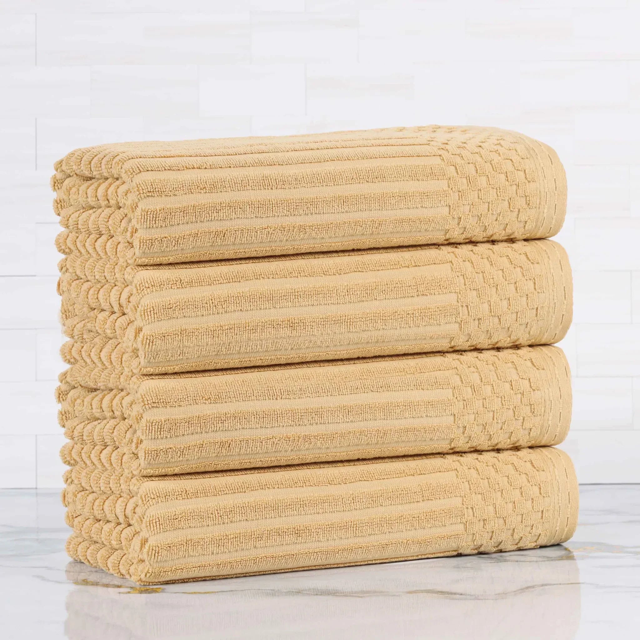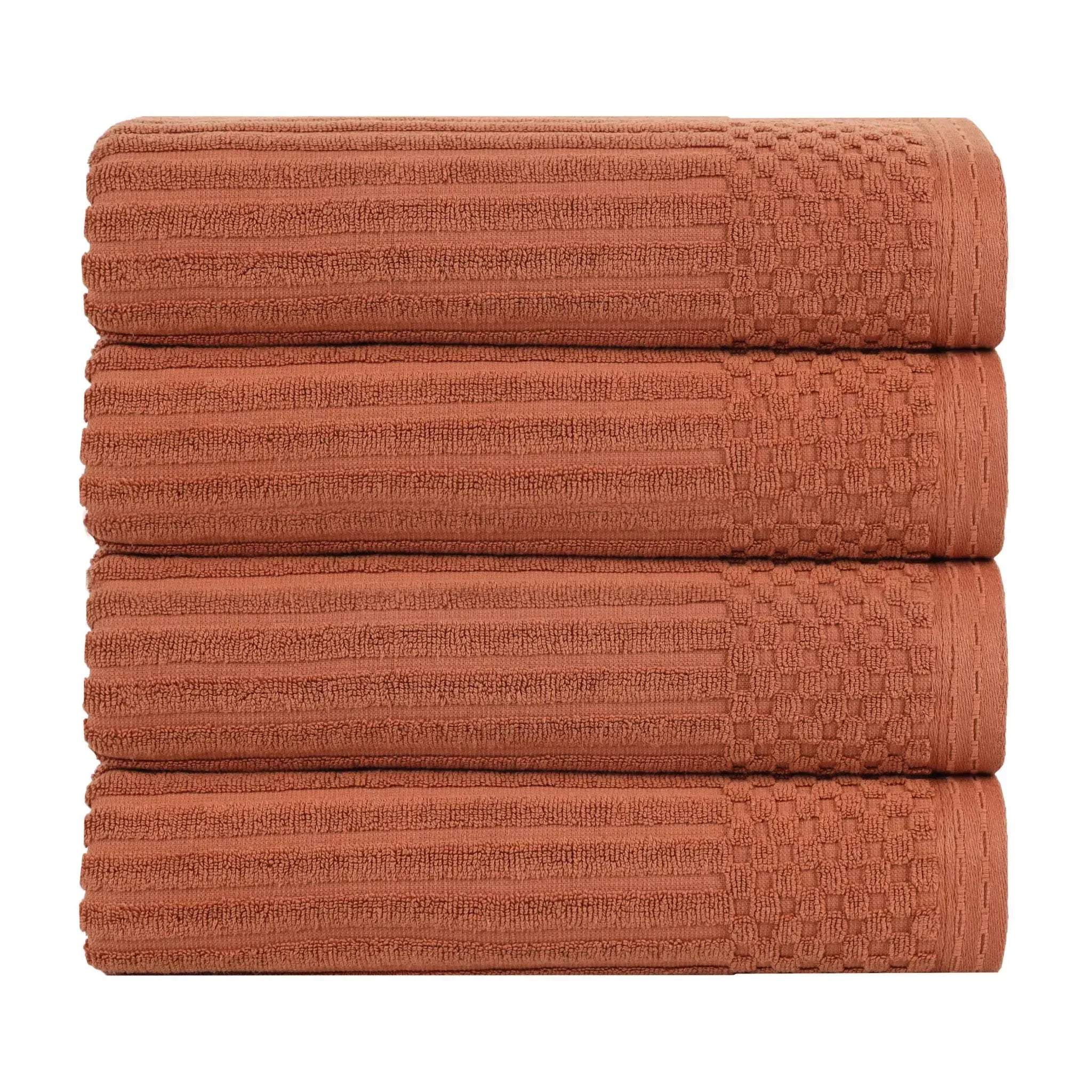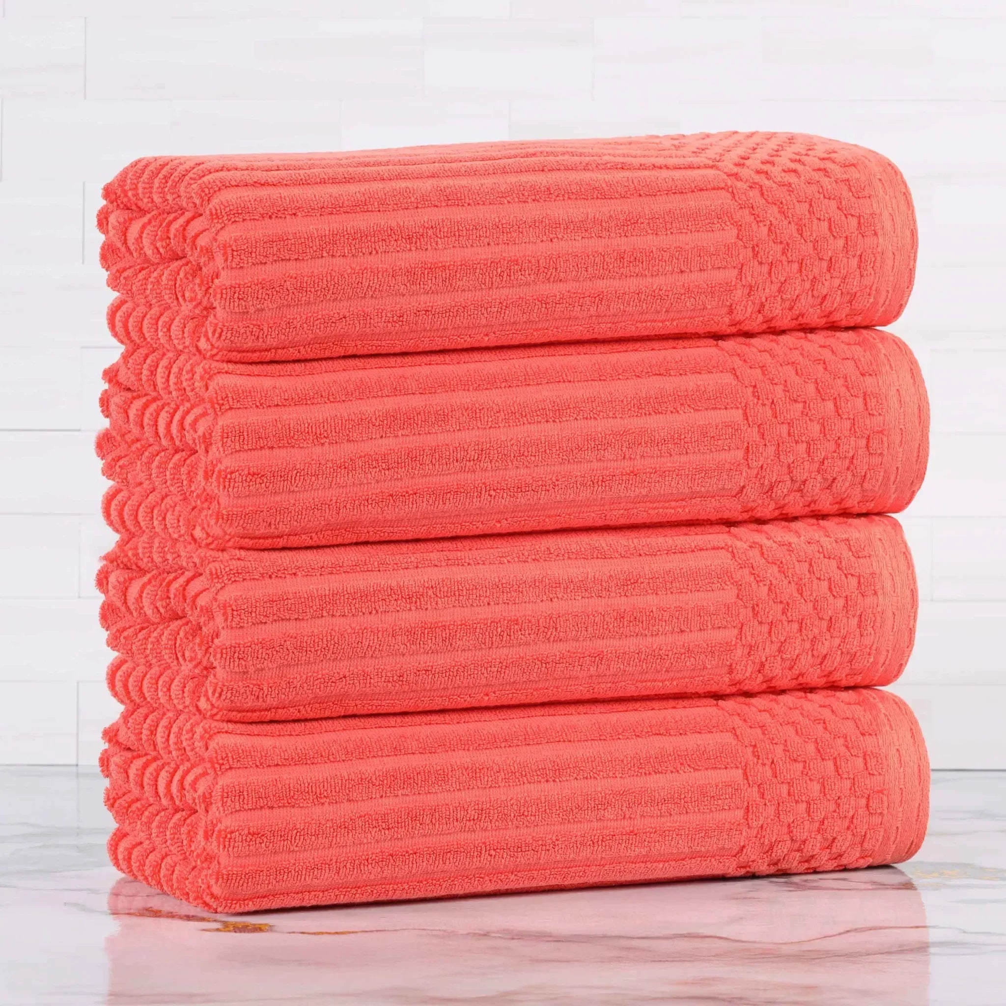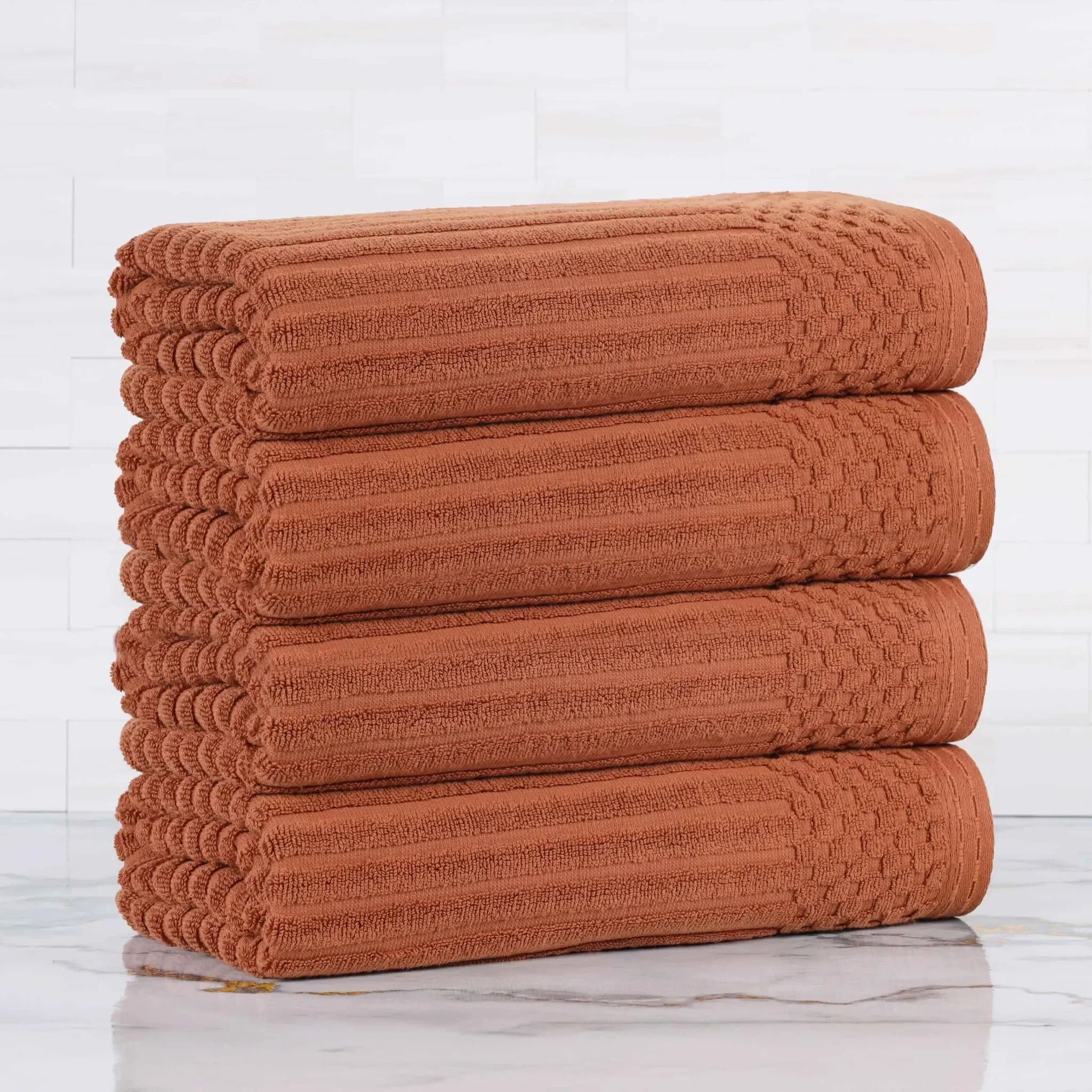 Upgrade your bathroom essentials with the Ribbed Cotton Absorbent Bath Towel Set of 4, a perfect blend of comfort, design, and durability.