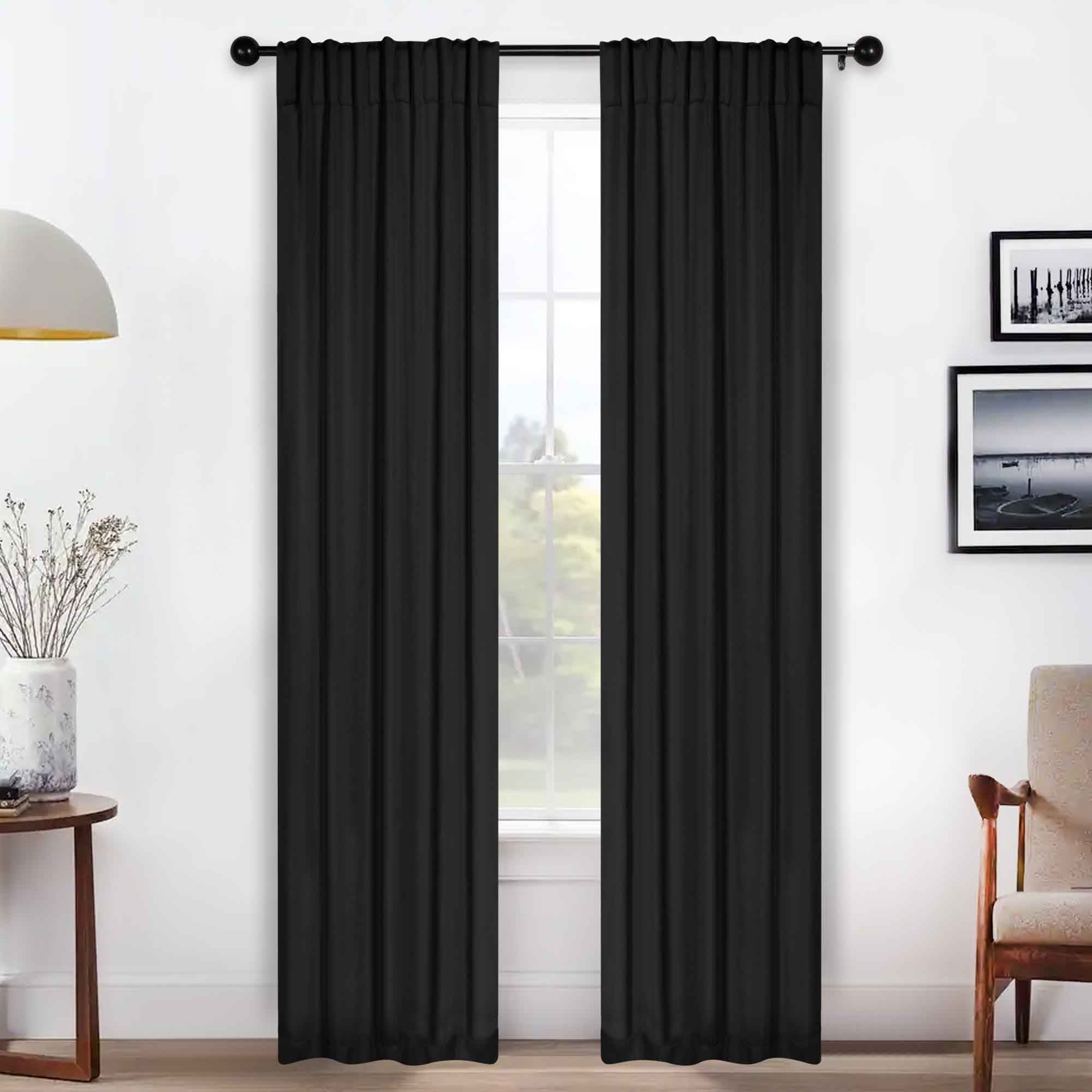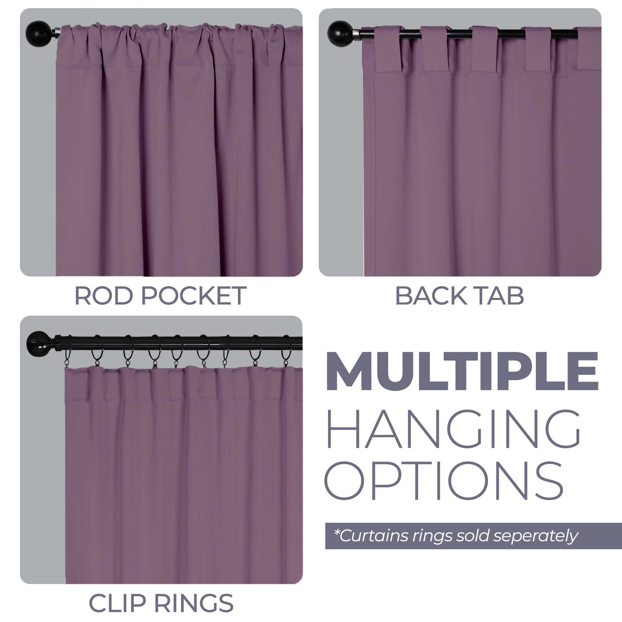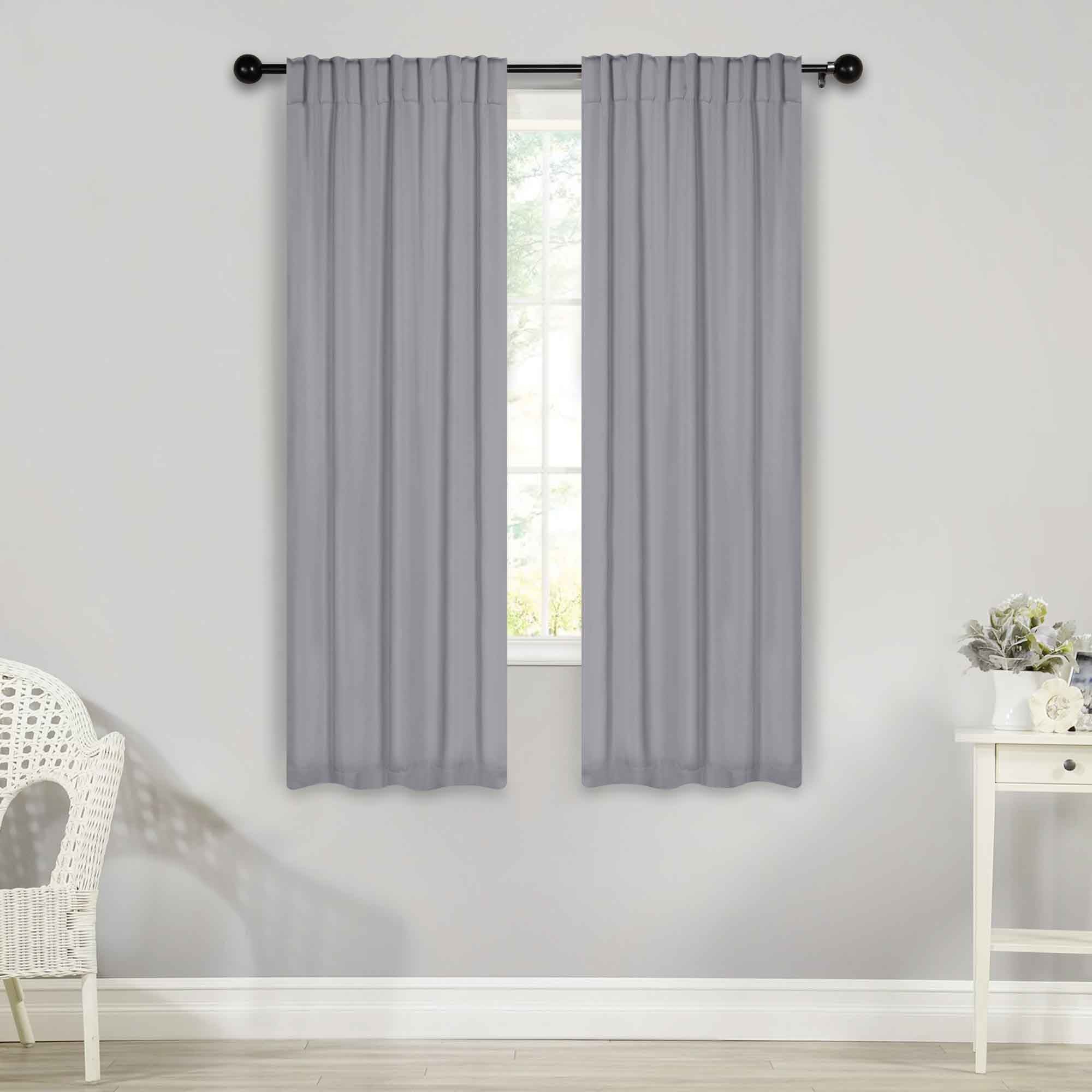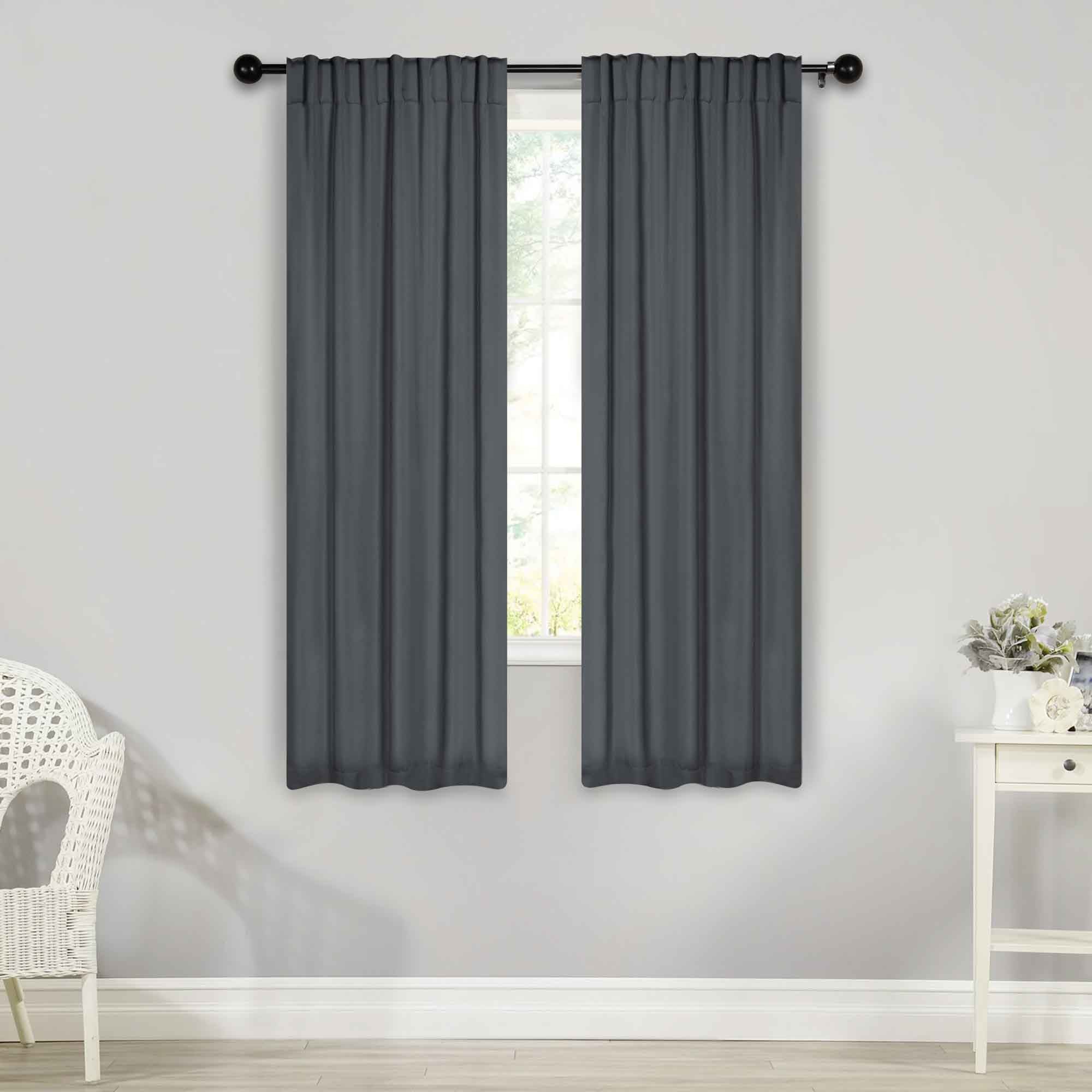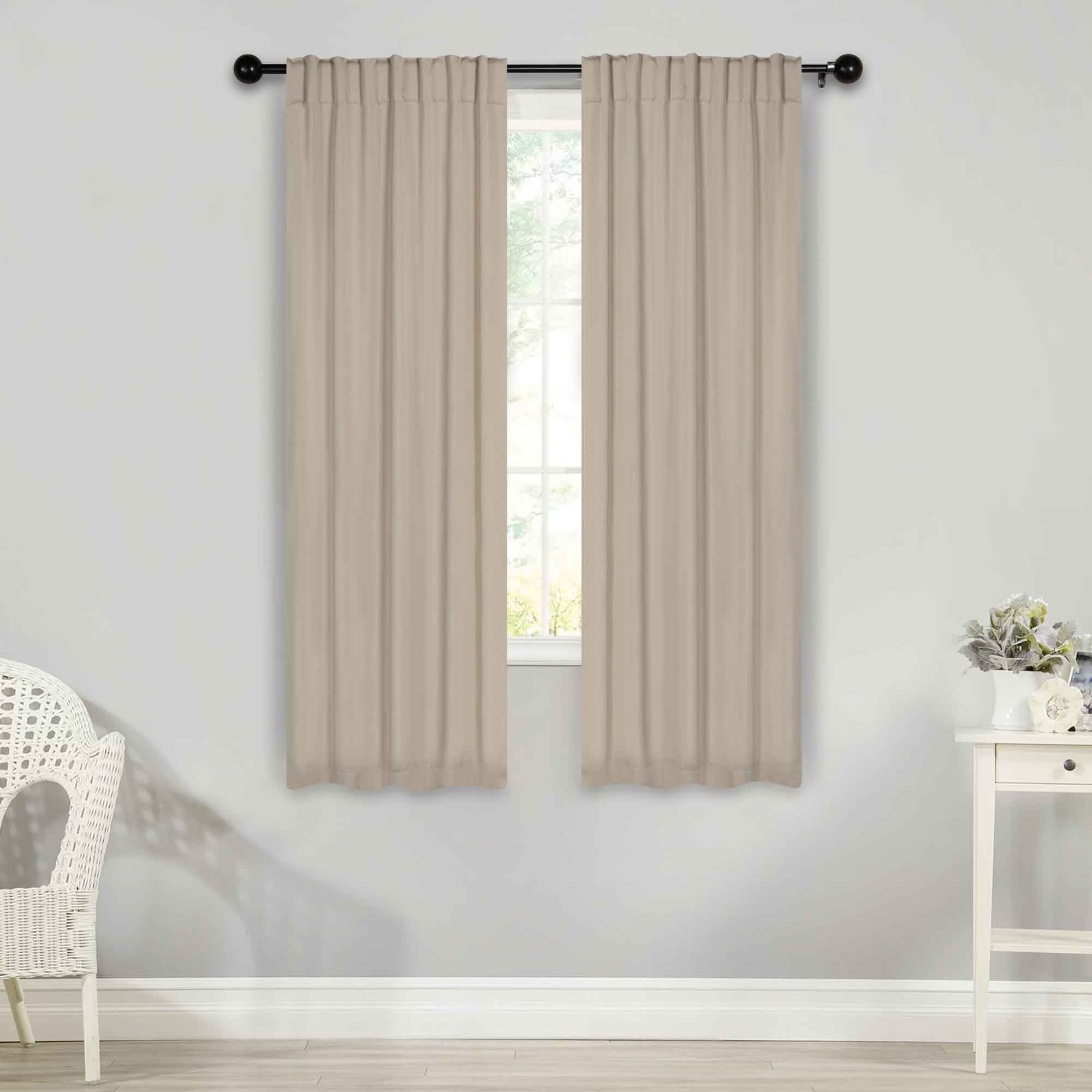 Block out unwanted sunlight and make your home more comfortable with our Solid Blackout Curtain Set. Made from a durable polyester material, these curtains are naturally hypoallergenic and wrinkle-resistant. Featuring a convenient back tab header, these curtains provide an easy installation and a modern flourish that will elevate the beauty of your home. These blackout curtains block up to 70% of sunlight and UV rays and are thermal insulating. Available in a wide range of versatile solid colors, these beautiful curtain panels are the perfect accent for any modern, traditional, or casual living spaces.