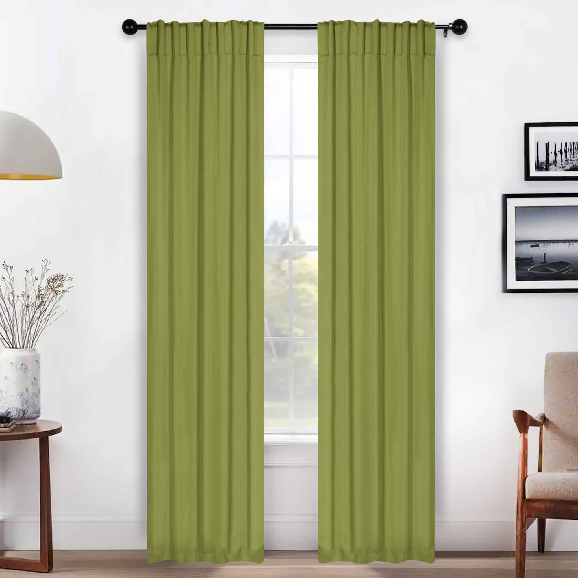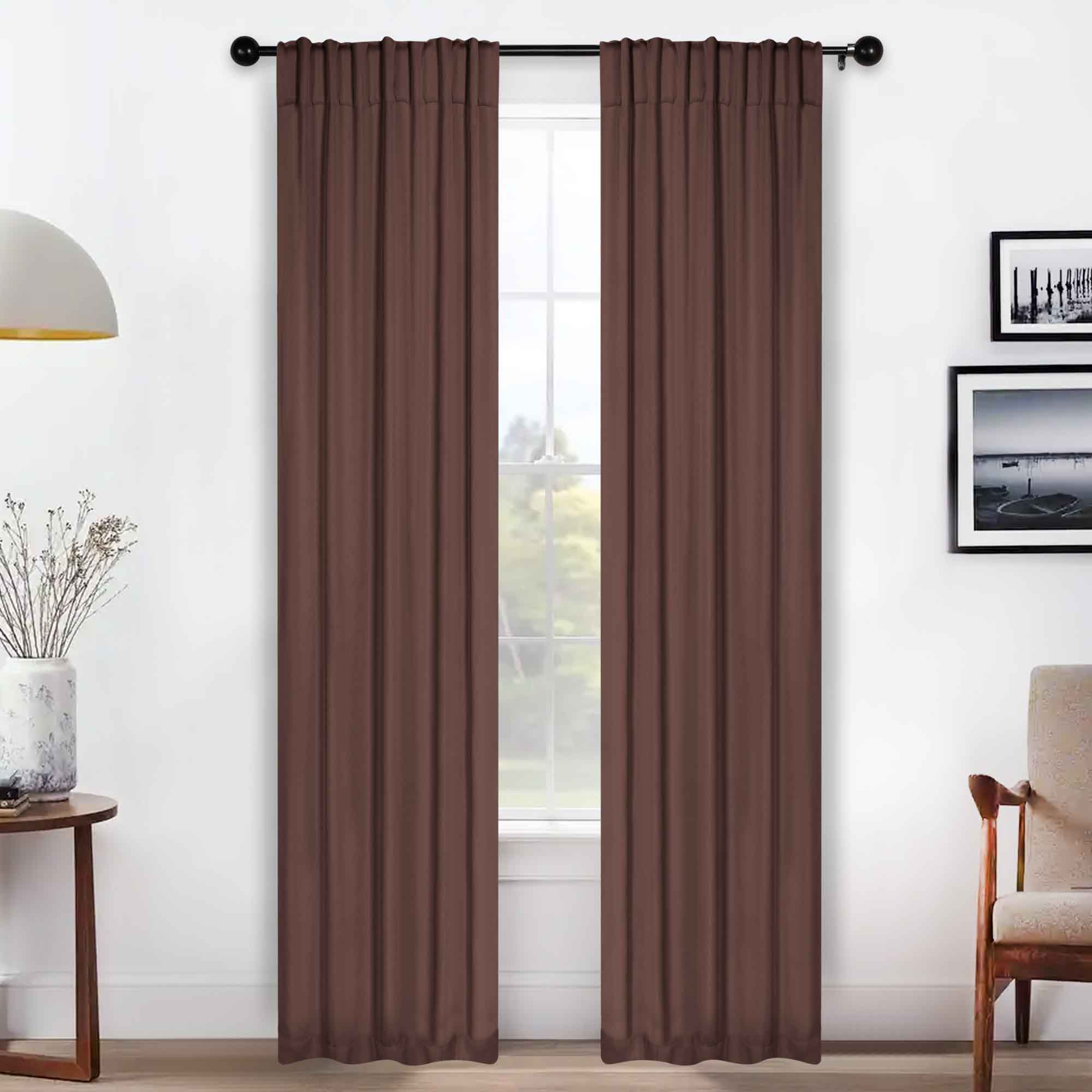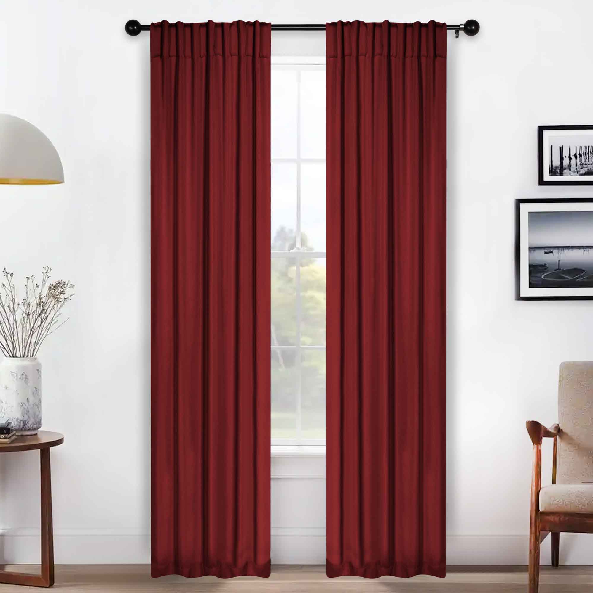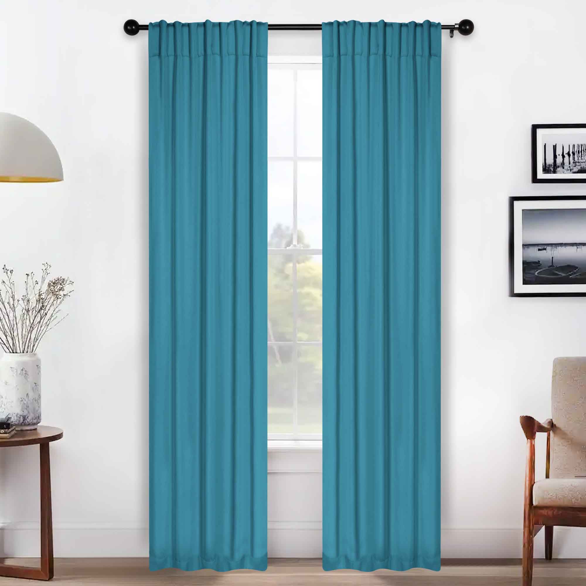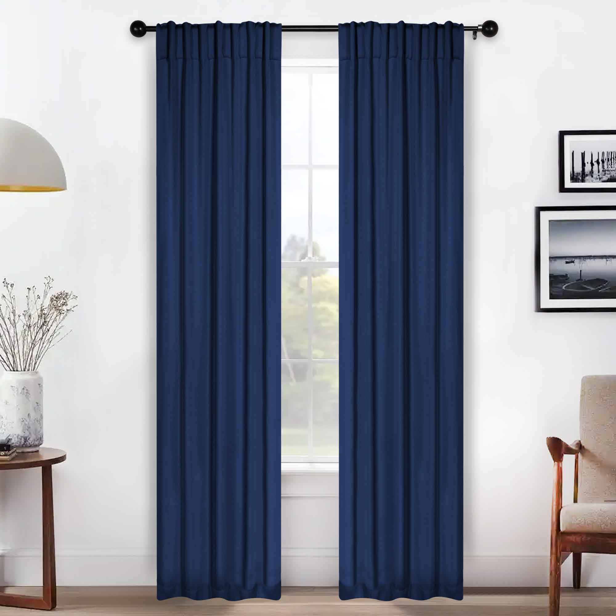 Block out unwanted sunlight and make your home more comfortable with our Solid Blackout Curtain Set. Made from a durable polyester material, these curtains are naturally hypoallergenic and wrinkle-resistant. Featuring a convenient back tab header, these curtains provide an easy installation and a modern flourish that will elevate the beauty of your home. These blackout curtains block up to 70% of sunlight and UV rays and are thermal insulating. Available in a wide range of versatile solid colors, these beautiful curtain panels are the perfect accent for any modern, traditional, or casual living spaces.