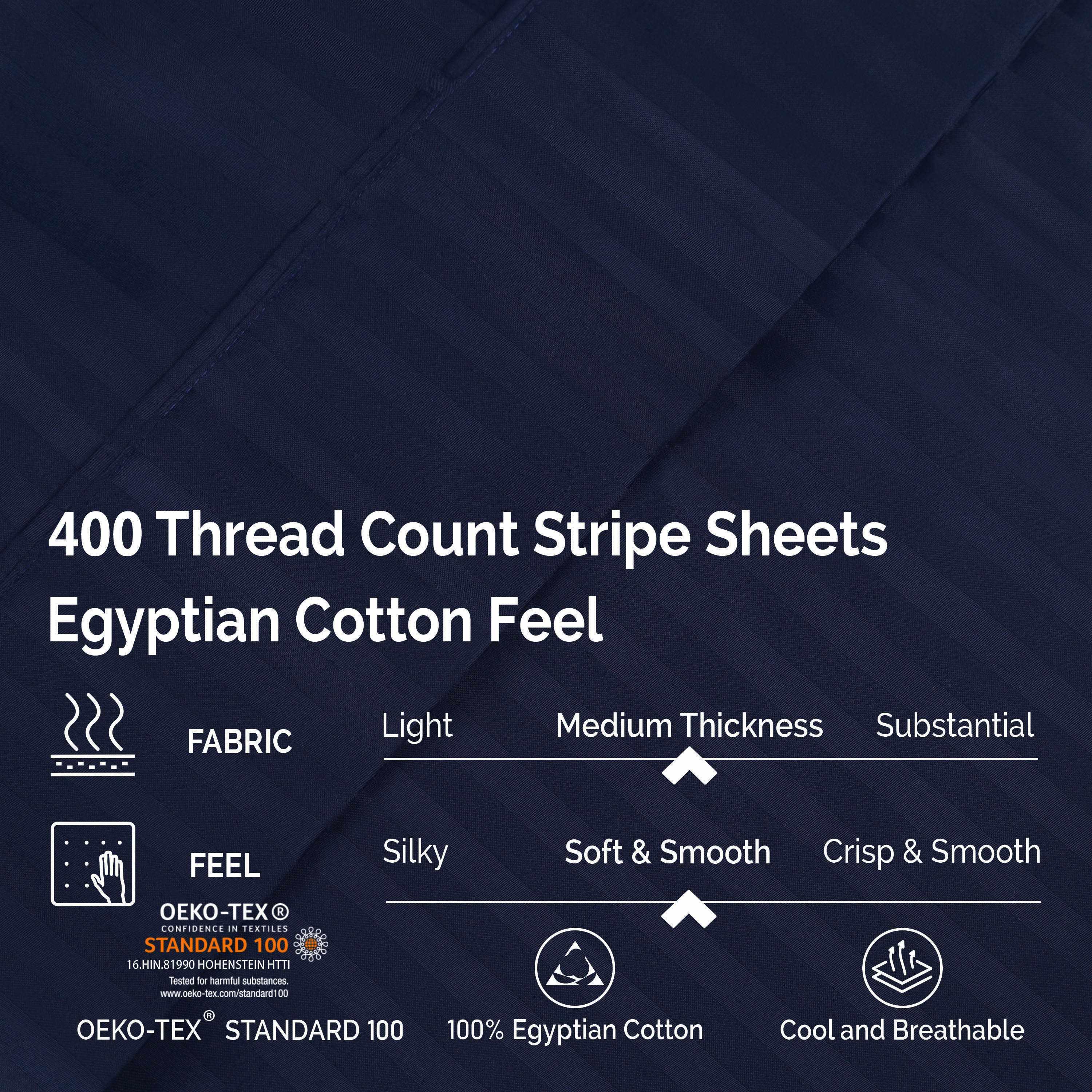 Enjoy Luxury Rest with Striped Egyptian Cotton SheetsExperience refined comfort with the 400-thread-count Egyptian Cotton Sateen Stripe...