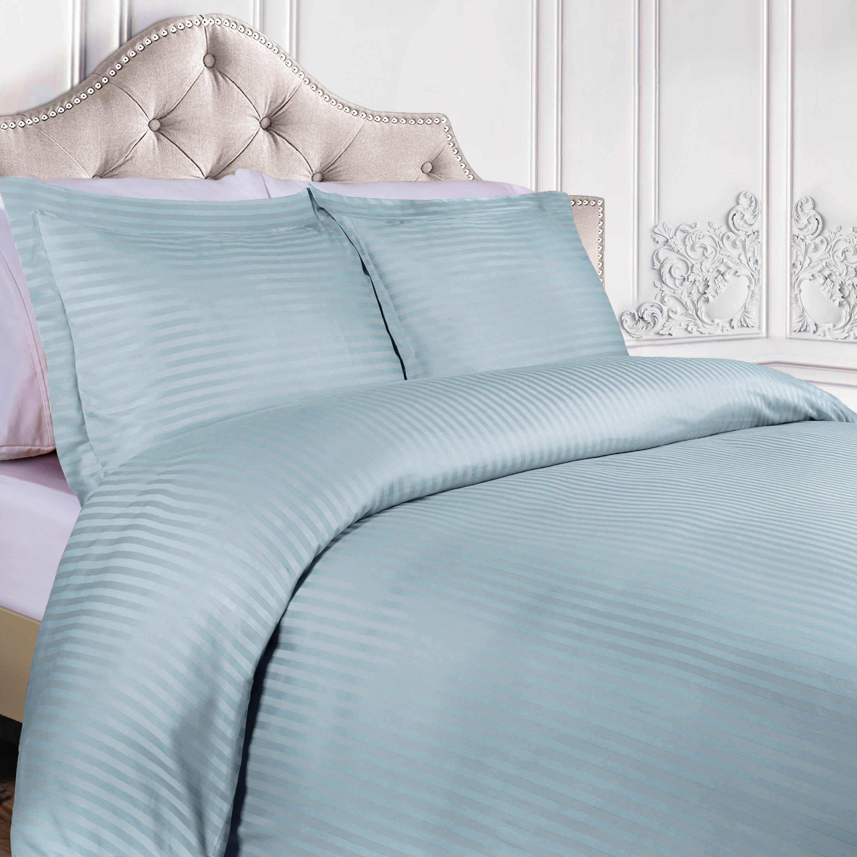 Elevate your bedding with the elegant design of the Superior 400 Thread Count Egyptian Cotton Stripe Duvet Cover Set.