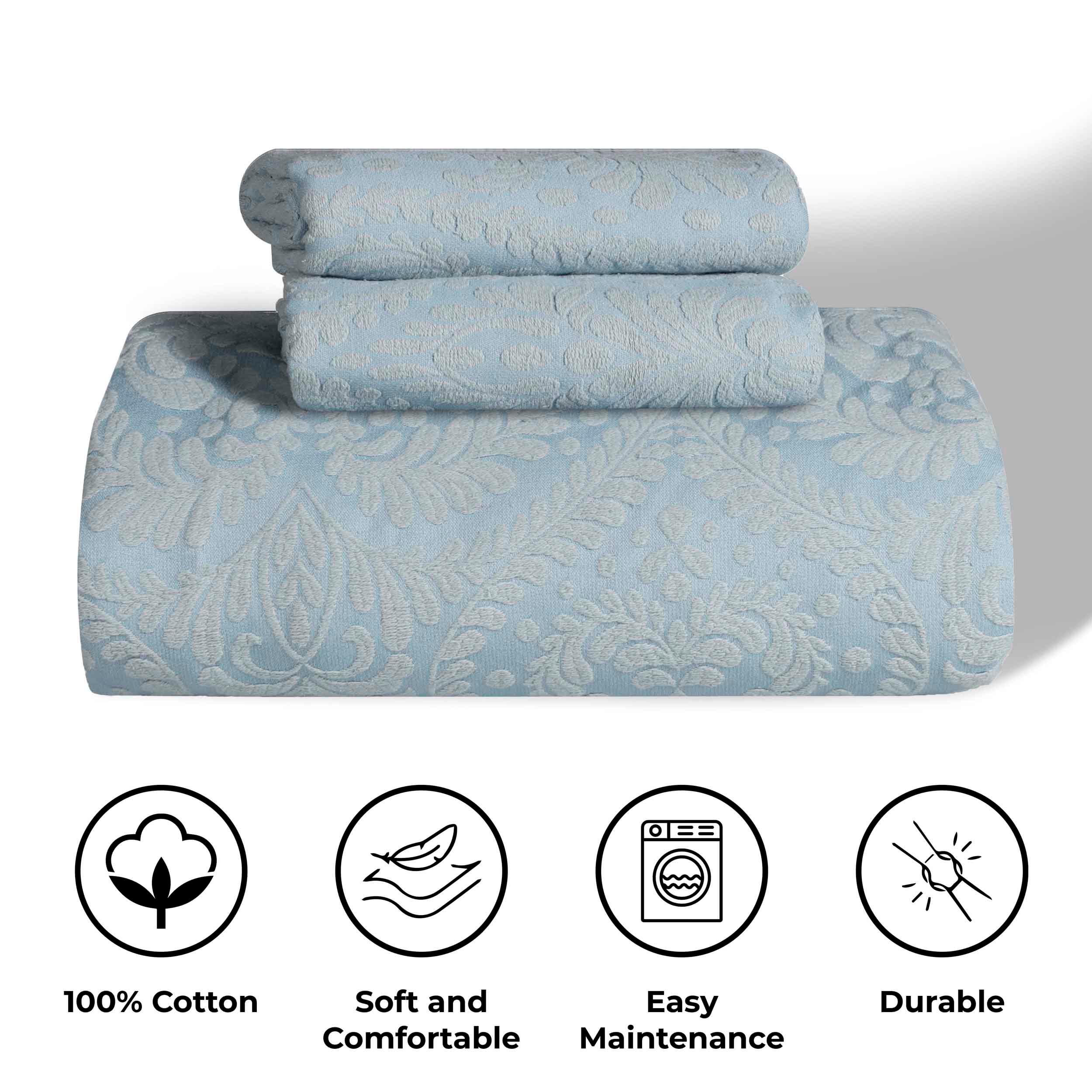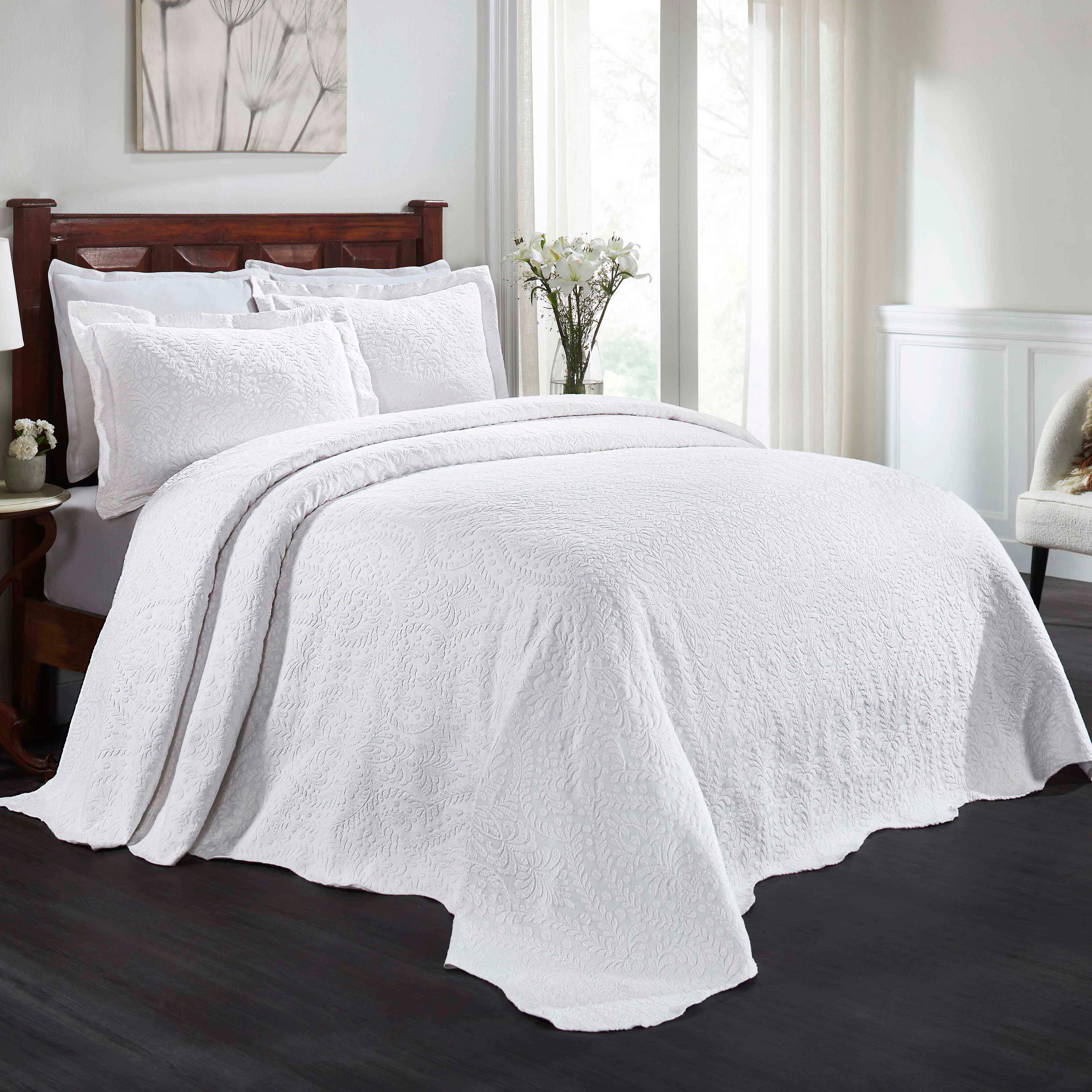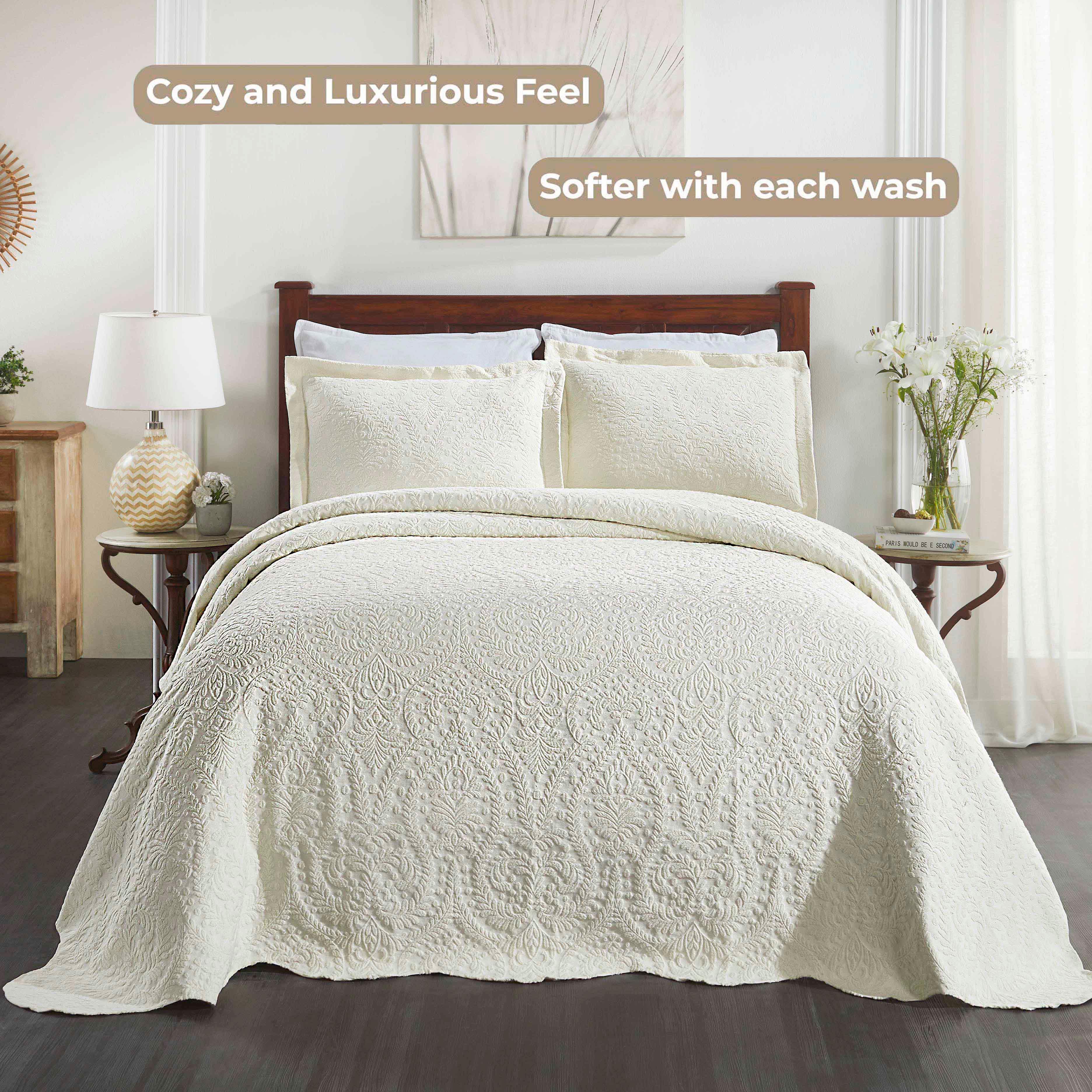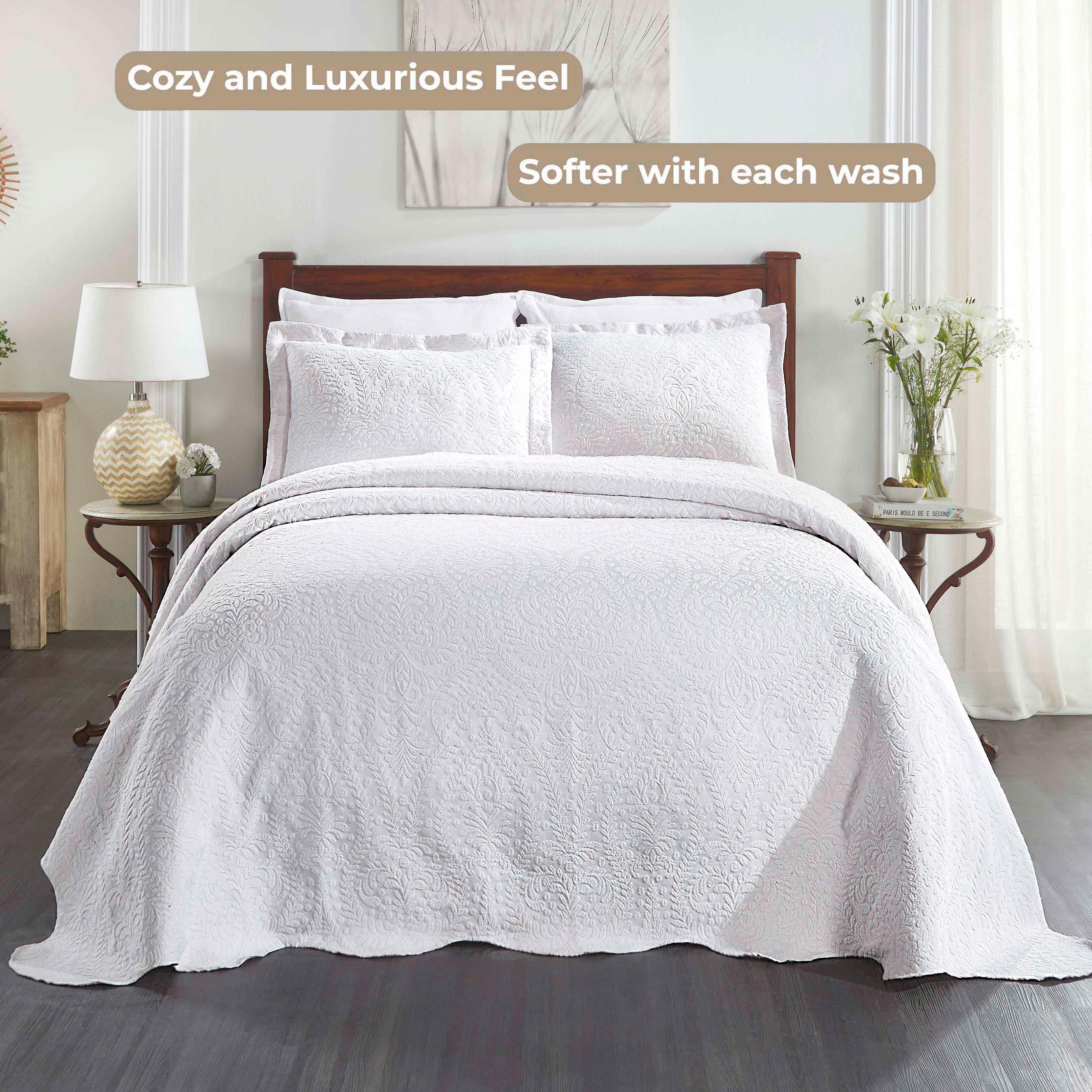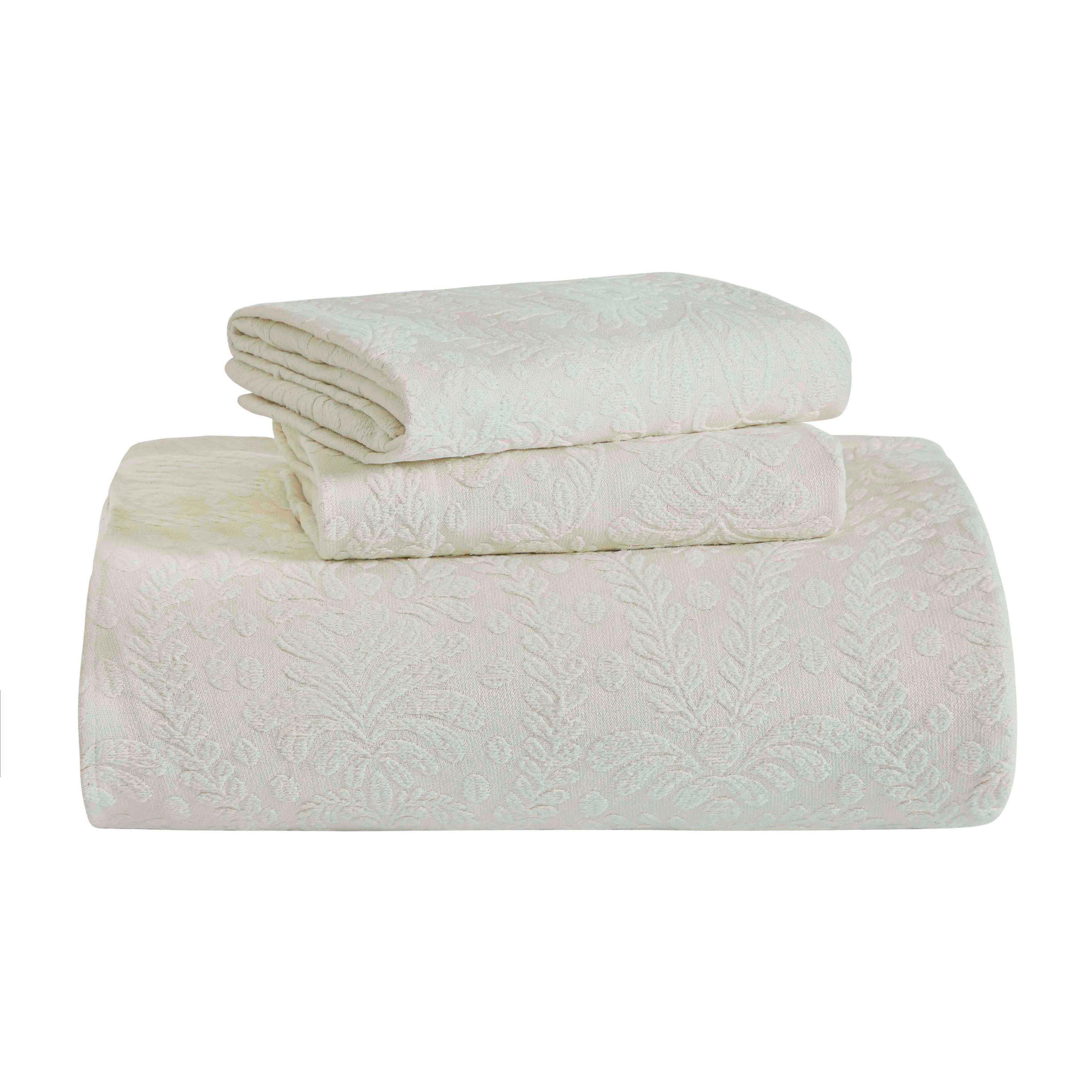 Lightweight Cotton Blend Bedspread Set 3-Piece Aspen Jacquard Floral Scalloped Edge