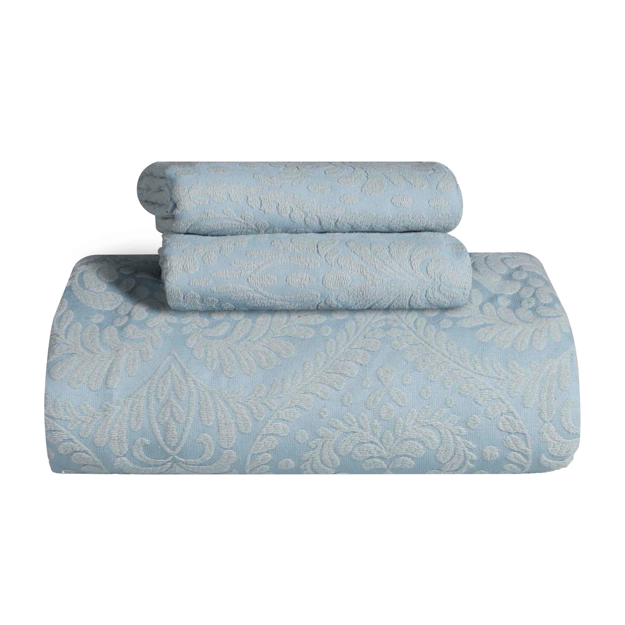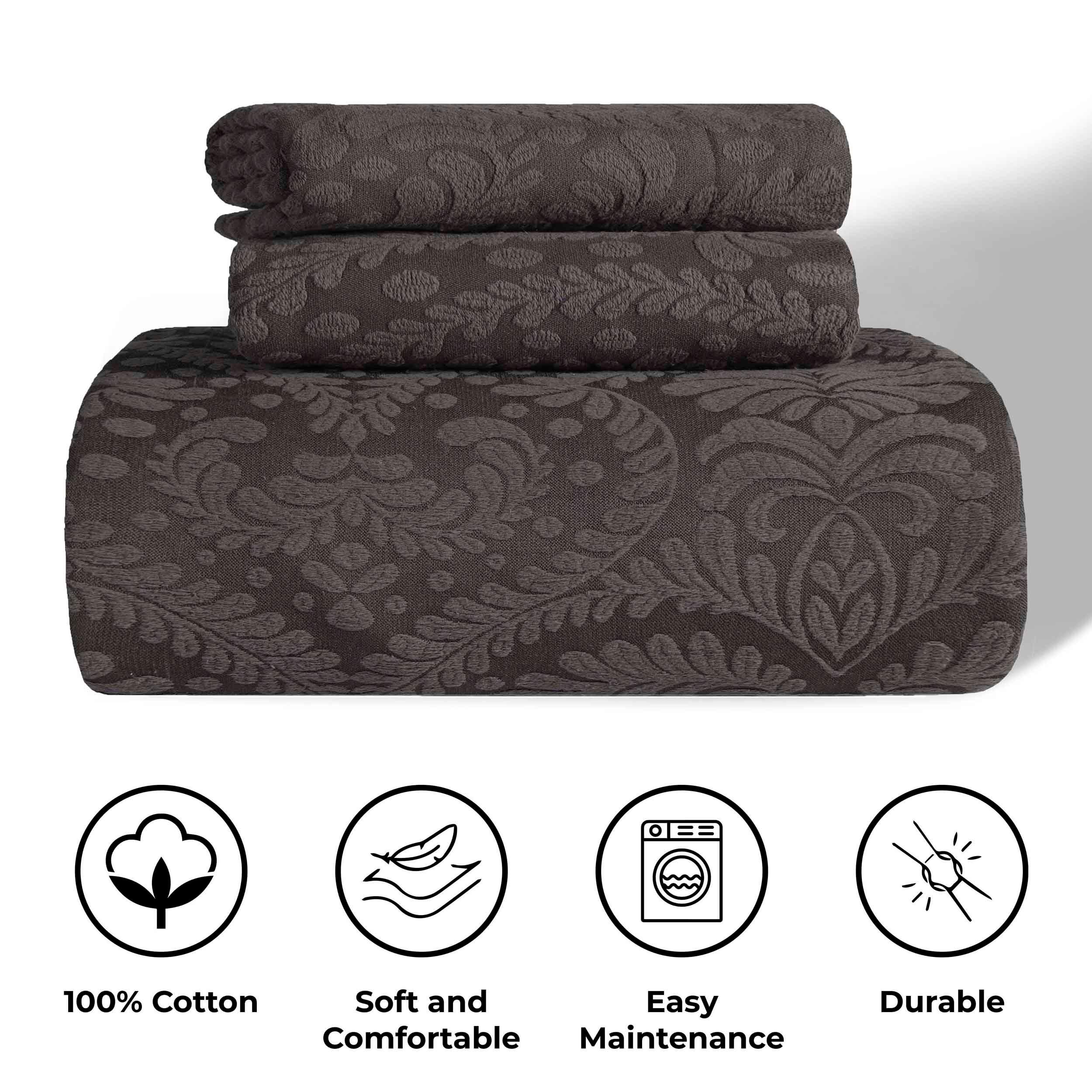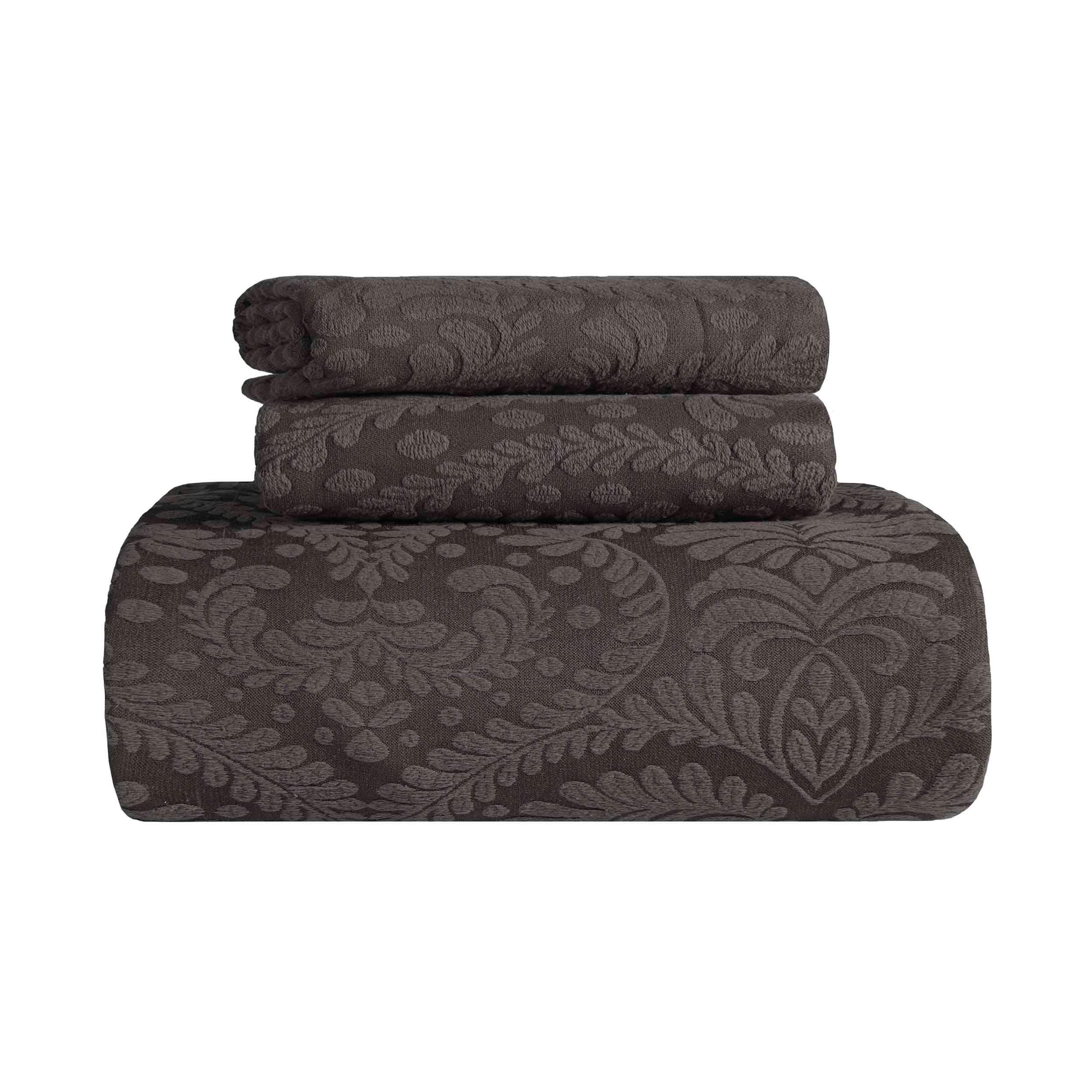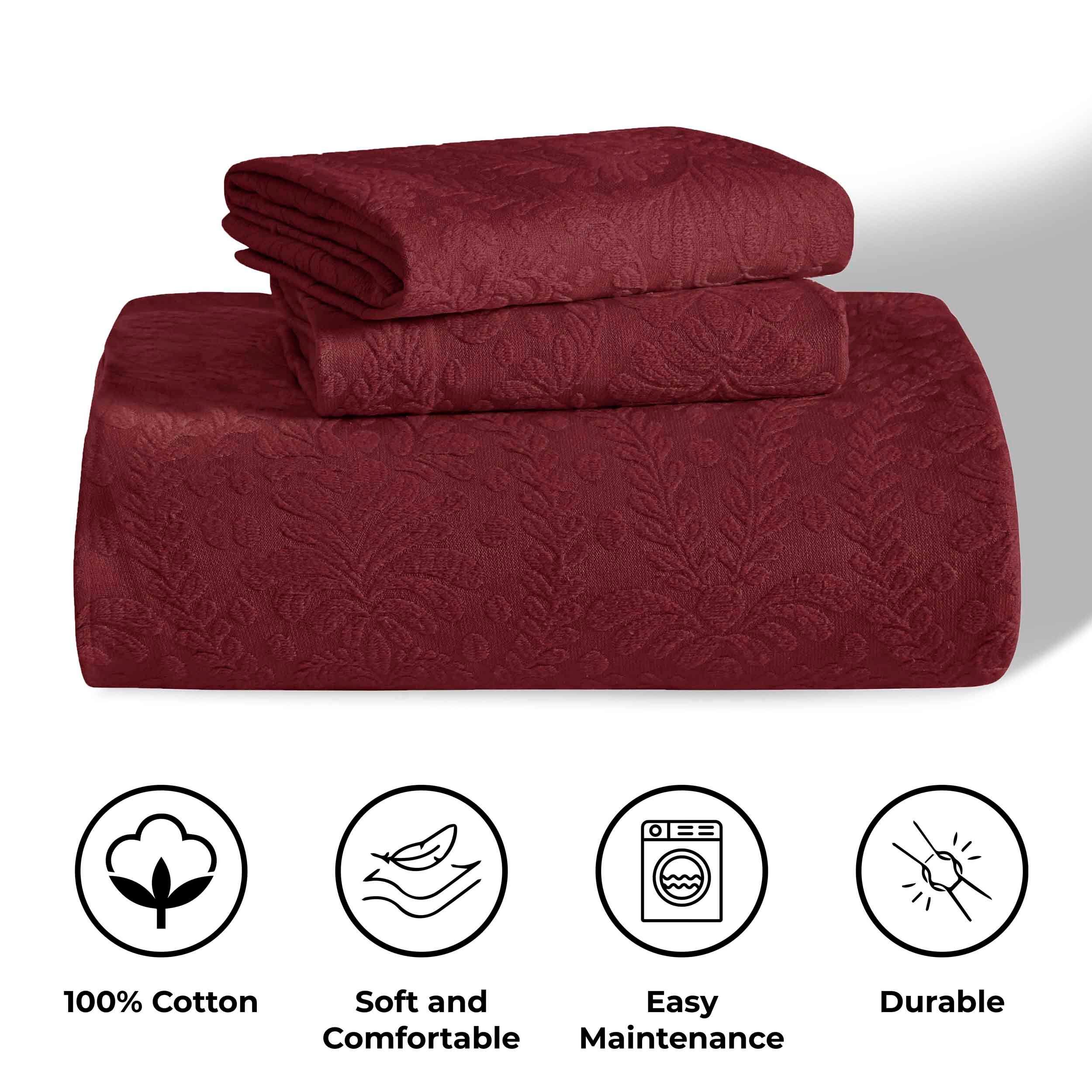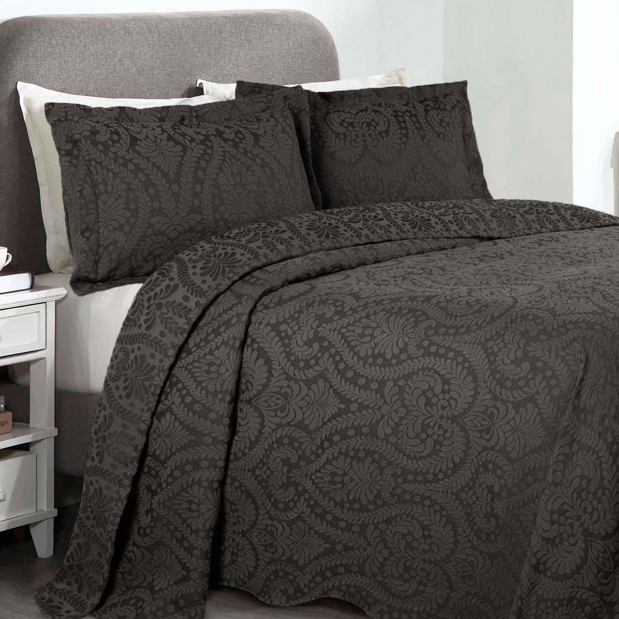 Lightweight Cotton Blend Bedspread Set 3-Piece Aspen Jacquard Floral Scalloped Edge
