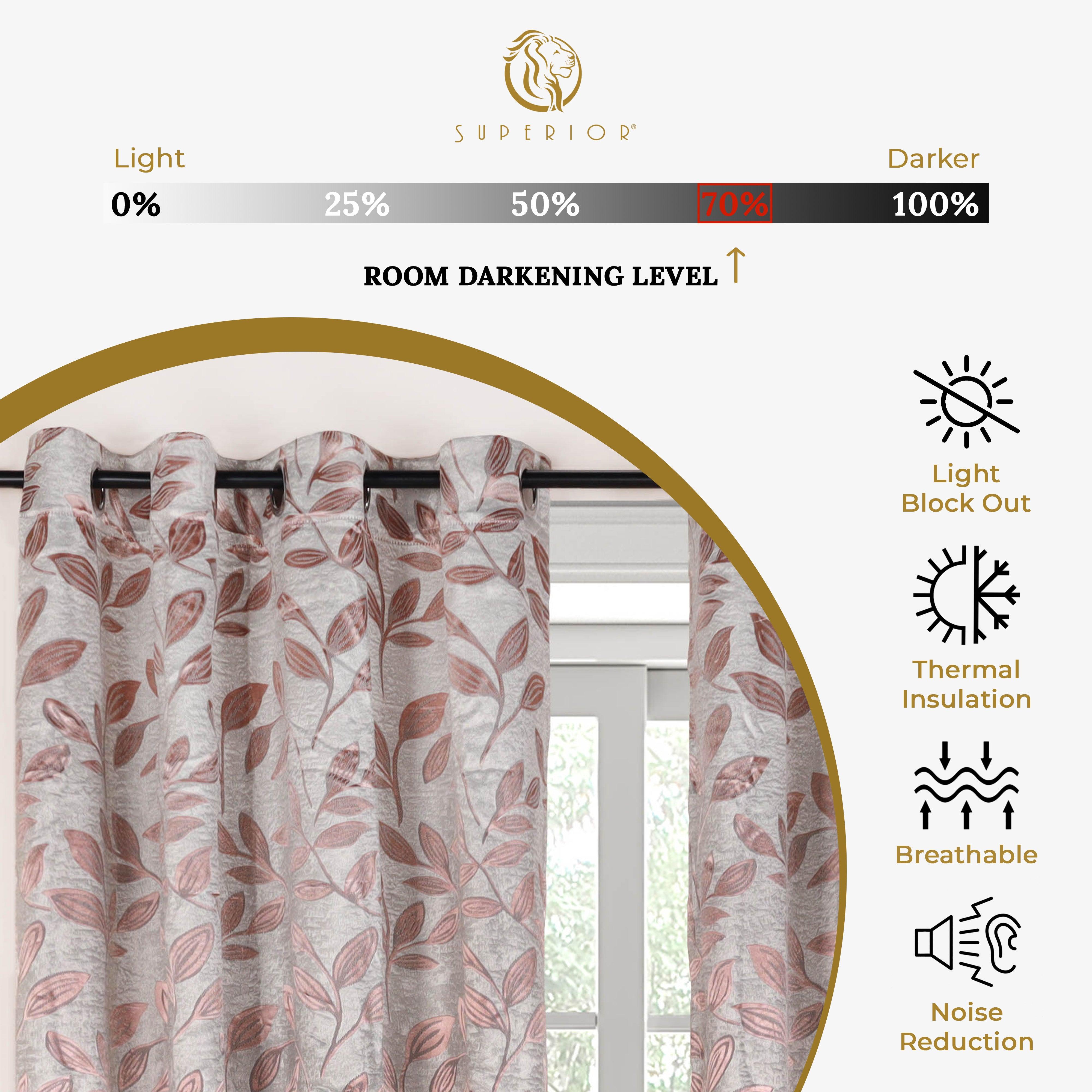 Stylish and highly practical, the Superior Leaves Modern Bohemian Blackout Curtain Set is the perfect addition to your home. The Polyester material is incredibly durable and naturally hypoallergenic and wrinkle-resistant. The rust-free grommet header or rod pocket (depending on size) makes these panels easy to install while giving them a modern flourish that will elevate the beauty of your home. These blackout curtains block up to 70% of sunlight and UV rays and are thermal insulating. The stunning botanical accent of these curtains will suit Modern, Bohemian, Vintage, or Casual homes.