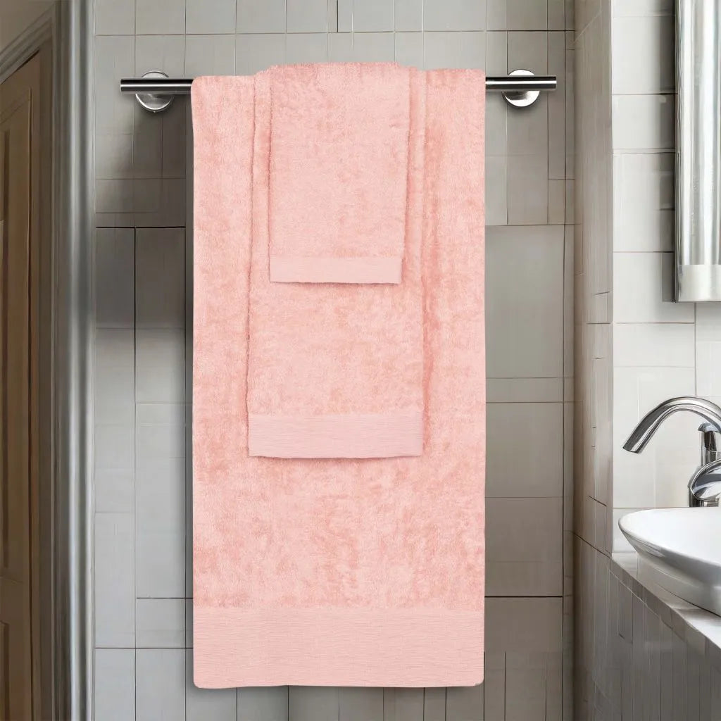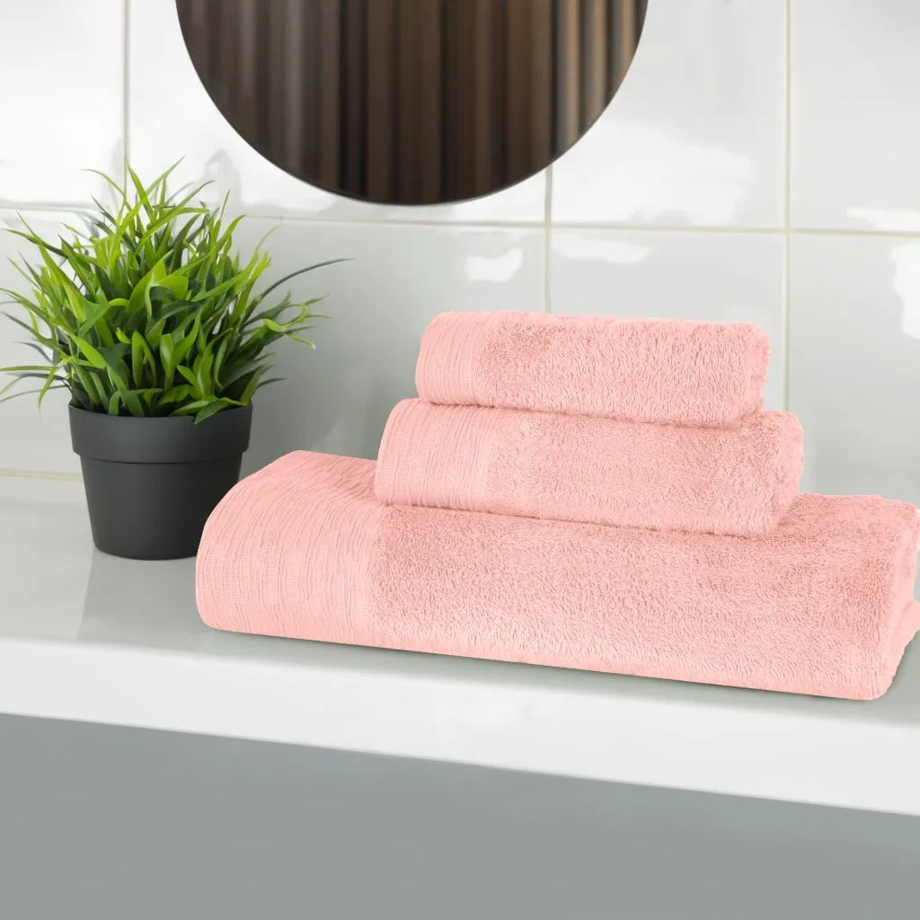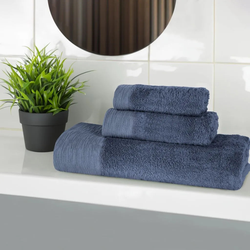 Effortlessly introduce new levels of luxury to your guest or master bathroom with the Superior Rayon from Bamboo Eco-Friendly Fluffy Soft Modern Solid 3-Piece Towel Set. This 40% Rayon from Bamboo 60% Cotton towel set is crafted for a soft, absorbent, and luxurious experience. Boasting a classic solid design and wave textured border, bring a unique style to your guest or master bathroom with this bundle. Each towel is finished with secure hemmed edges to avoid fraying and a durable single-ply to withstand countless washes and last you years to come. Featuring a hanging loop on each piece, enjoy both convenience and comfort with this versatile set.