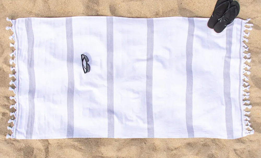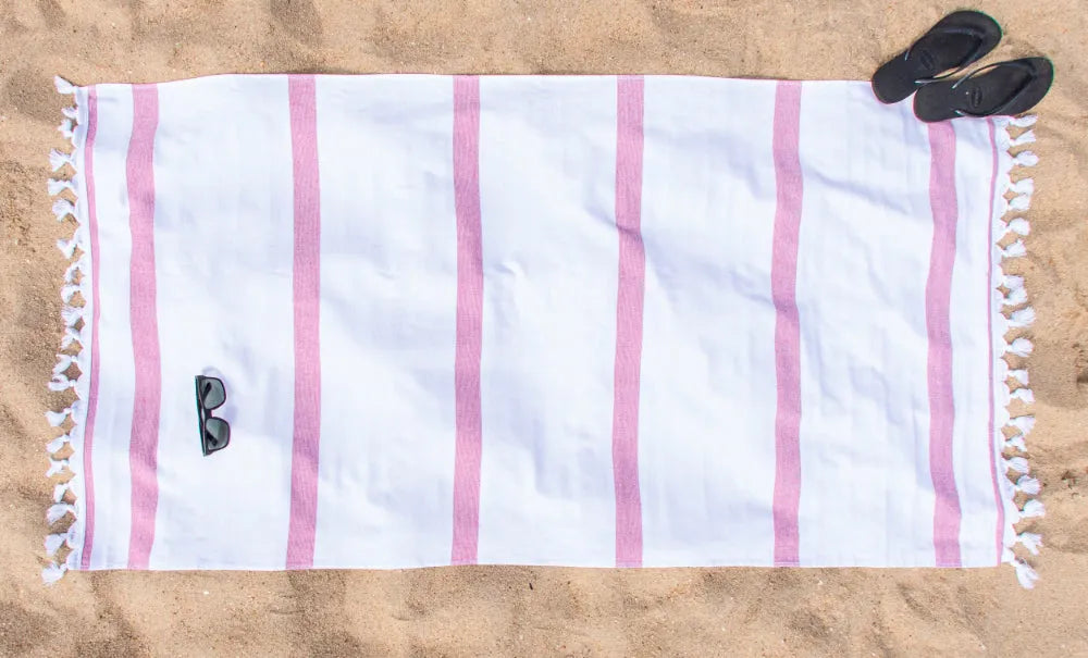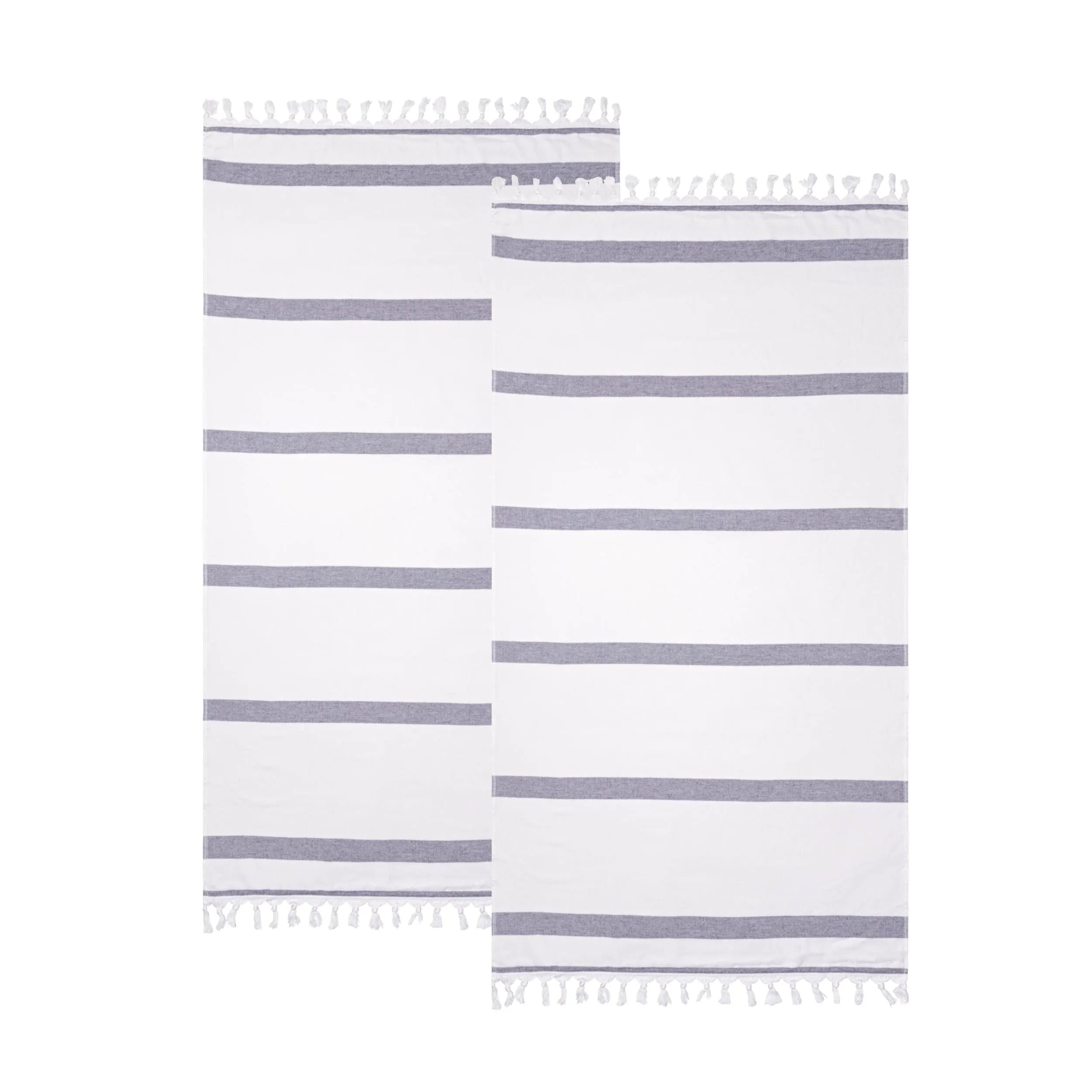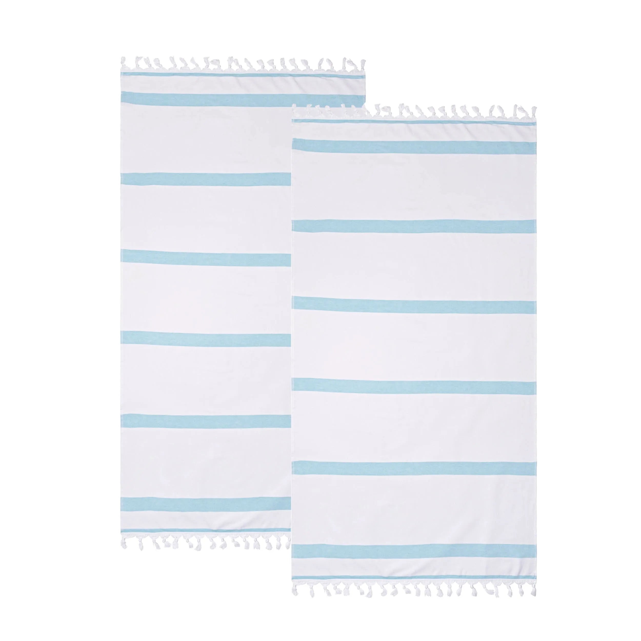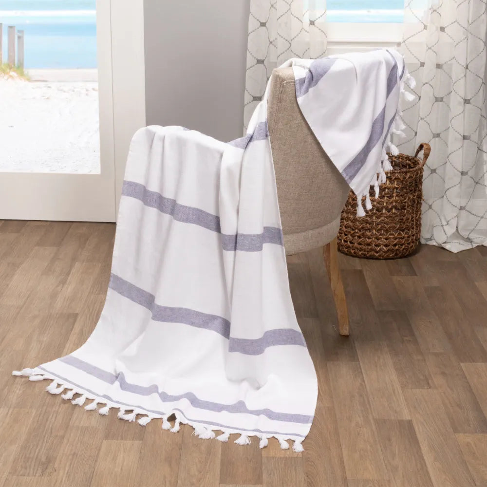 Make a splash this summer with the Tropical Cabana Oversized Stripe with Tassels Beach Towel. Crafted from Cotton, this oversized towel offers a smooth, comfy surface for lounging while also being highly absorbent to get you dry quickly. On one side, this towel features a woven texture that is soft to the touch and fast-drying terry cotton construction on the other side. Enjoy some fun in the sun when you lounge atop the large stripe design which is featured in an array of bright, seasonable color options with tassel details on the ends for modern style. Wherever your aquatic adventures may take you, this lightweight towel folds up compactly to fit into any beach bag or suitcase.