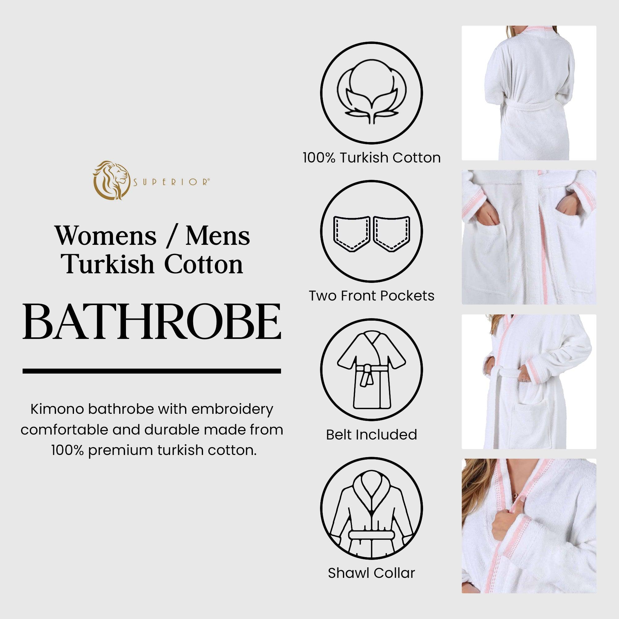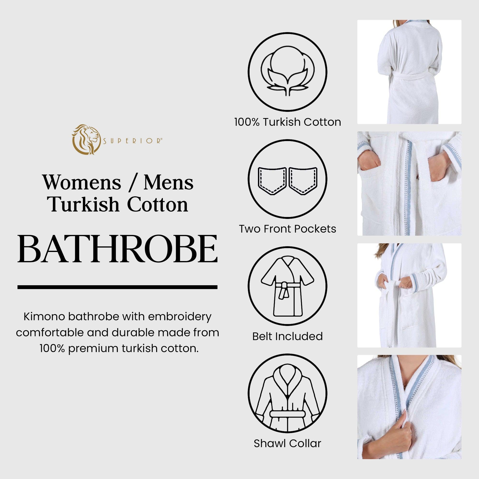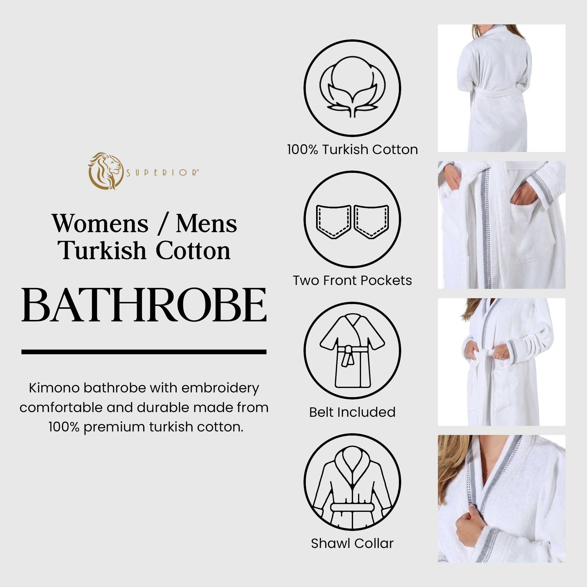 Turkish Cotton Terry Kimono Embroidered Super-Soft Unisex Bathrobe