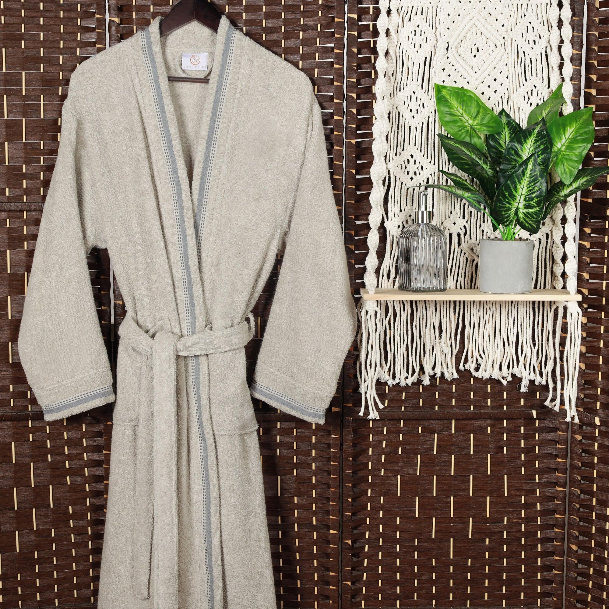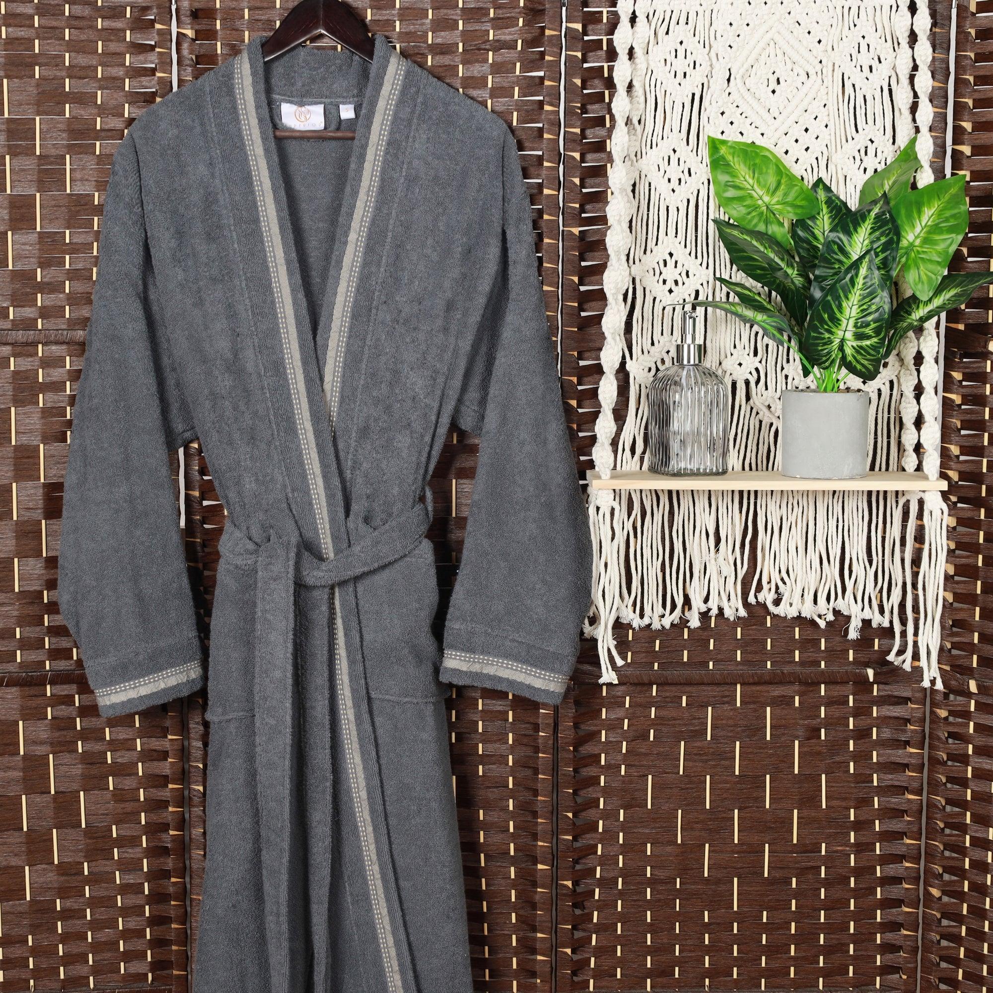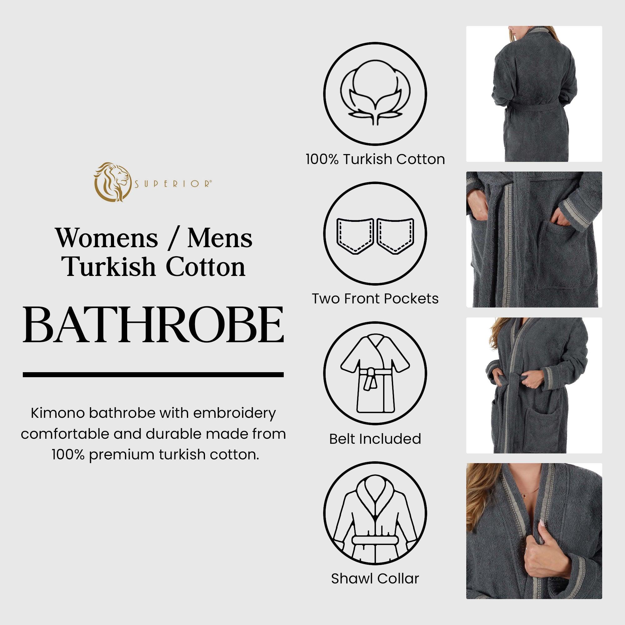 Turkish Cotton Terry Kimono Embroidered Super-Soft Unisex Bathrobe