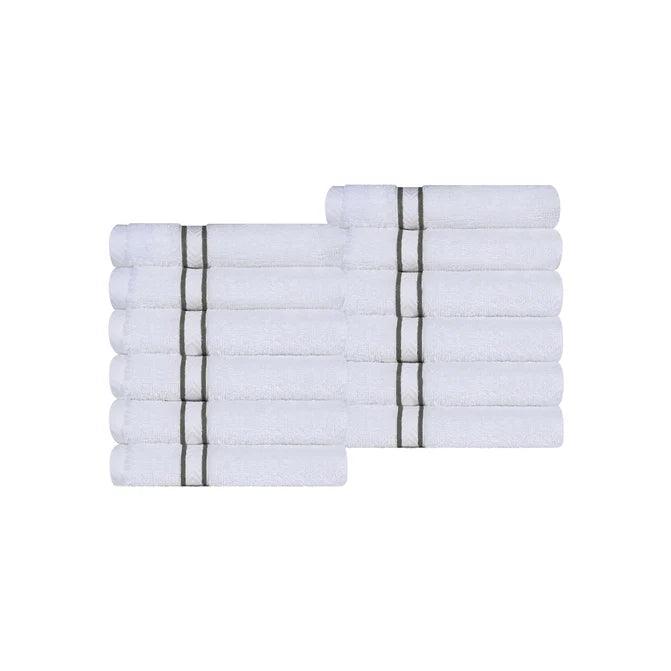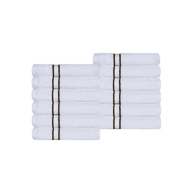 Give your bathroom an upgrade with the Ultra-Plush Turkish Cotton Super Absorbent Solid 12-Piece Face Towel/ Washcloth Set. The extra-long fibers found in Turkish Cotton are highly absorbent to ensure that you will be dried quickly and comfortably. The heavy towel weight gives this towel an ultra-plush look that will be an elegant addition to any master bath, powder room, or guest bathroom. Displaying a dobby border, each towel is crafted to fit perfectly into any modern, traditional, or transitional style. This towel set comes in a variety of colors which will complement any bathroom decor.