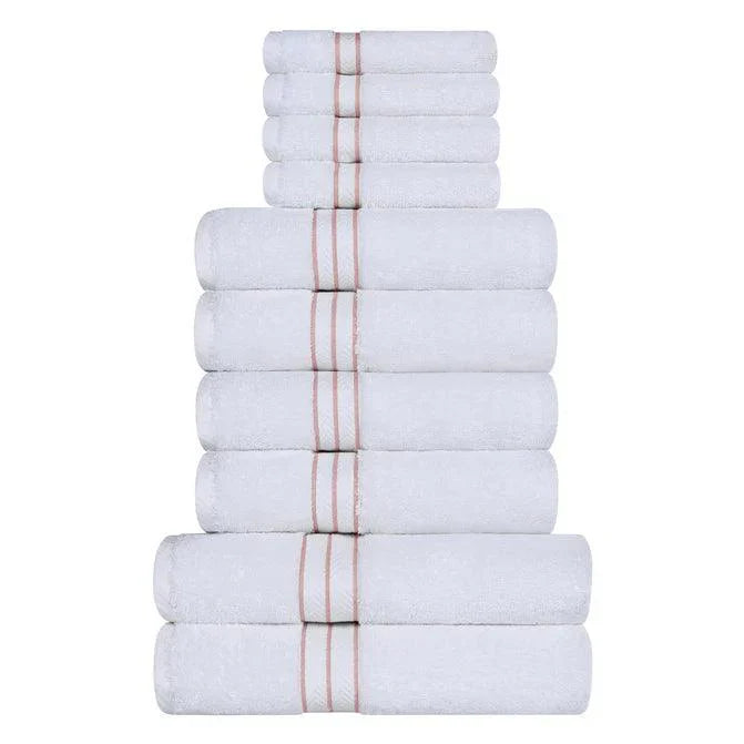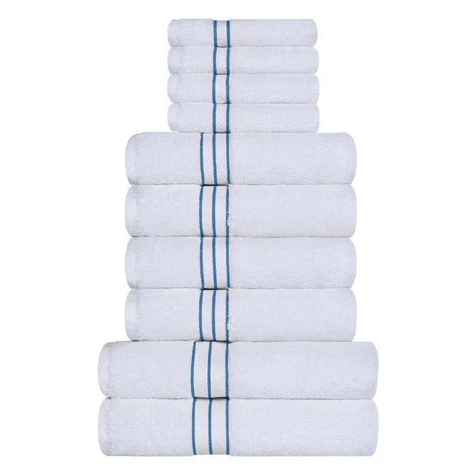 Give your bathroom an upgrade with the Ultra-Plush Turkish Cotton Super Absorbent Solid 10-Piece Towel Set. The extra-long fibers found in Turkish Cotton are highly absorbent to ensure that you will be dried quickly and comfortably. The heavy towel weight gives this towel an ultra-plush look that will be an elegant addition to any master bath, powder room, or guest bathroom. Displaying a dobby border, each towel is crafted to fit perfectly into any modern, traditional, or transitional style. This towel set comes in a variety of colors which will complement any bathroom decor.
