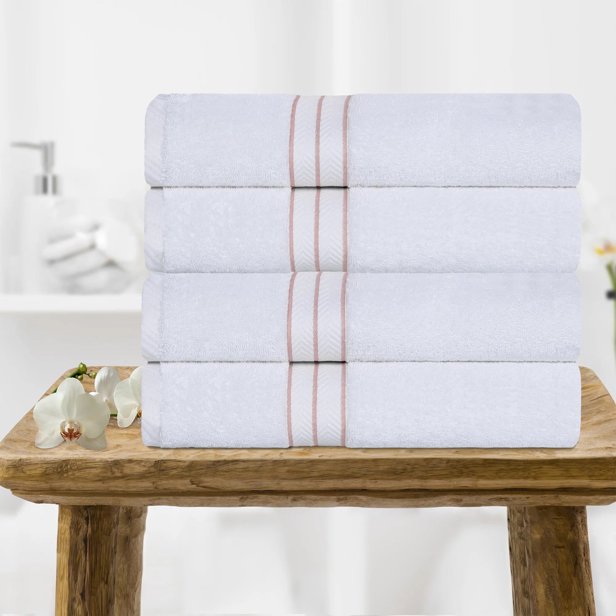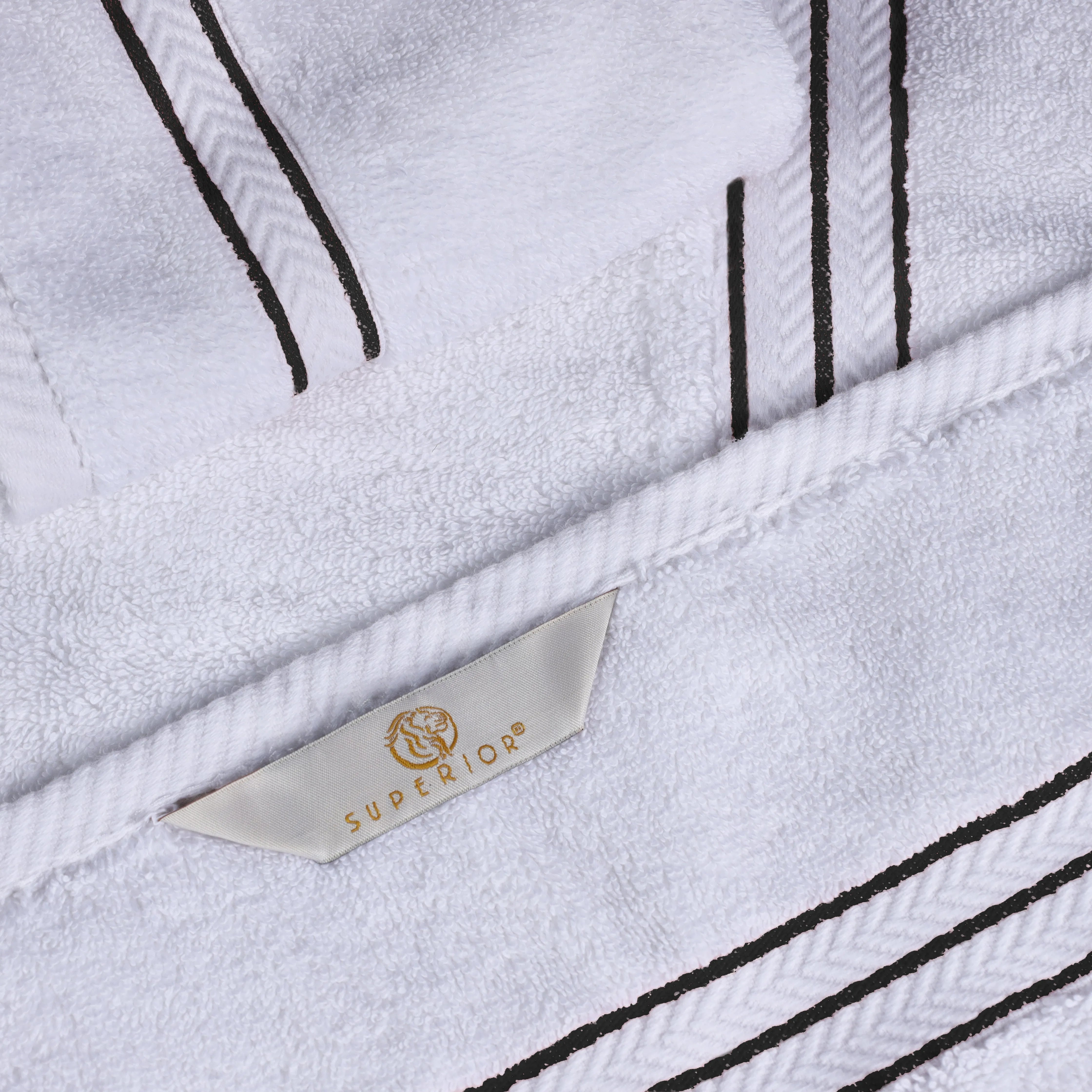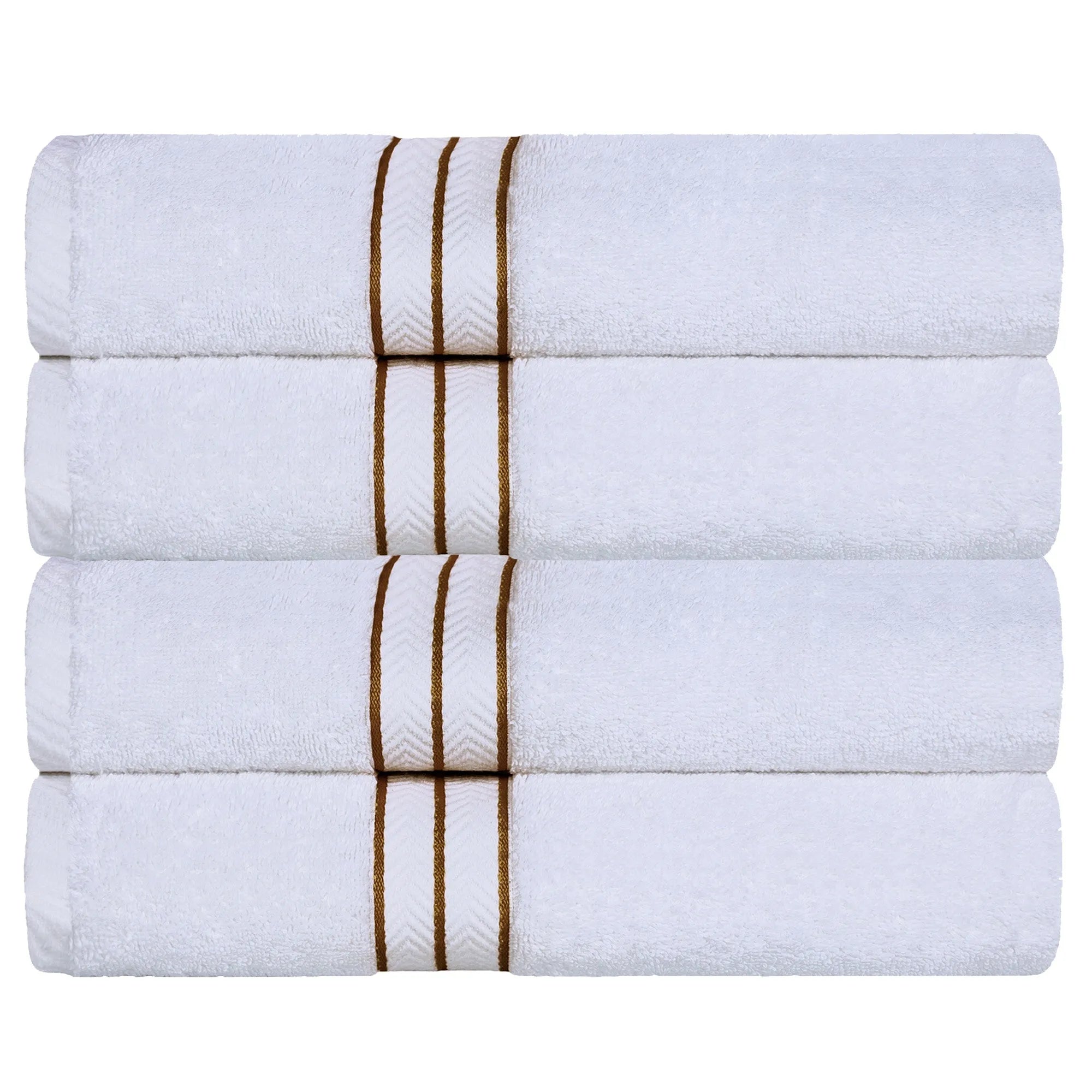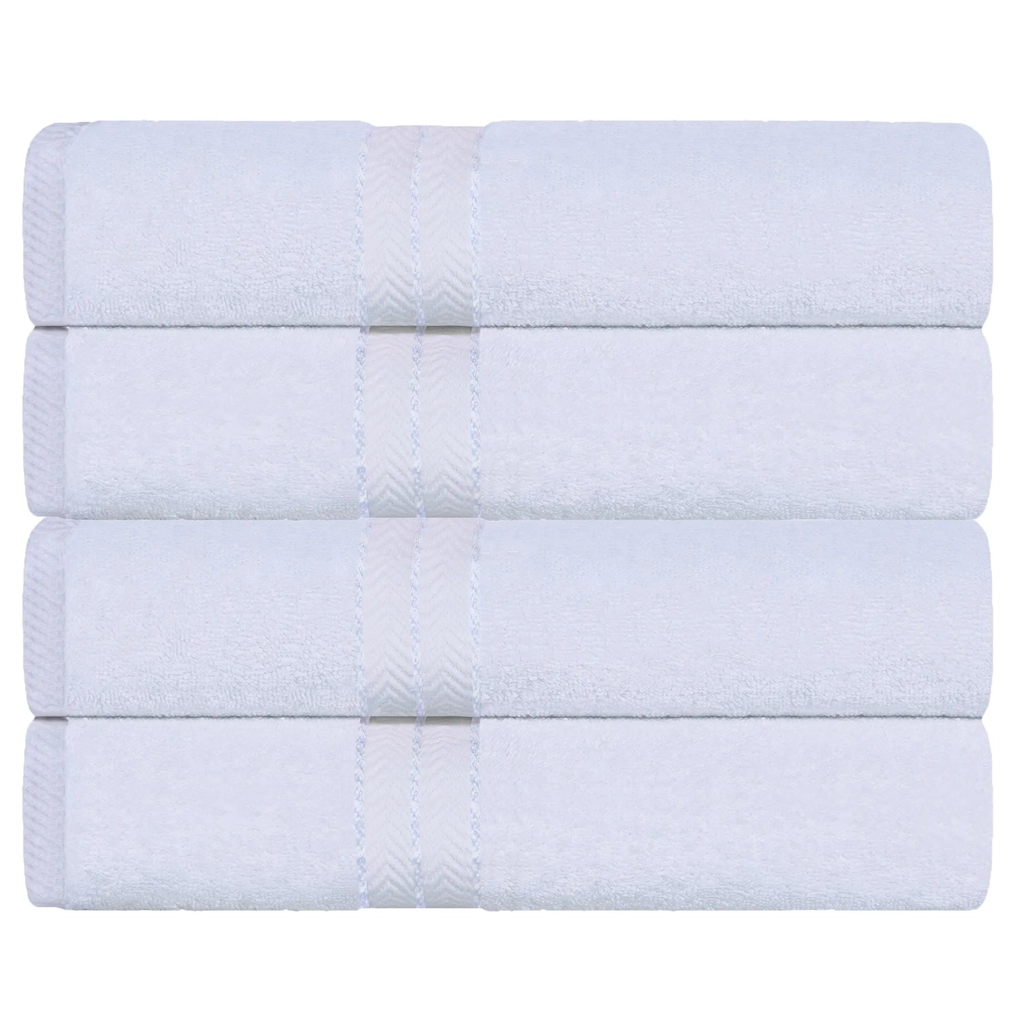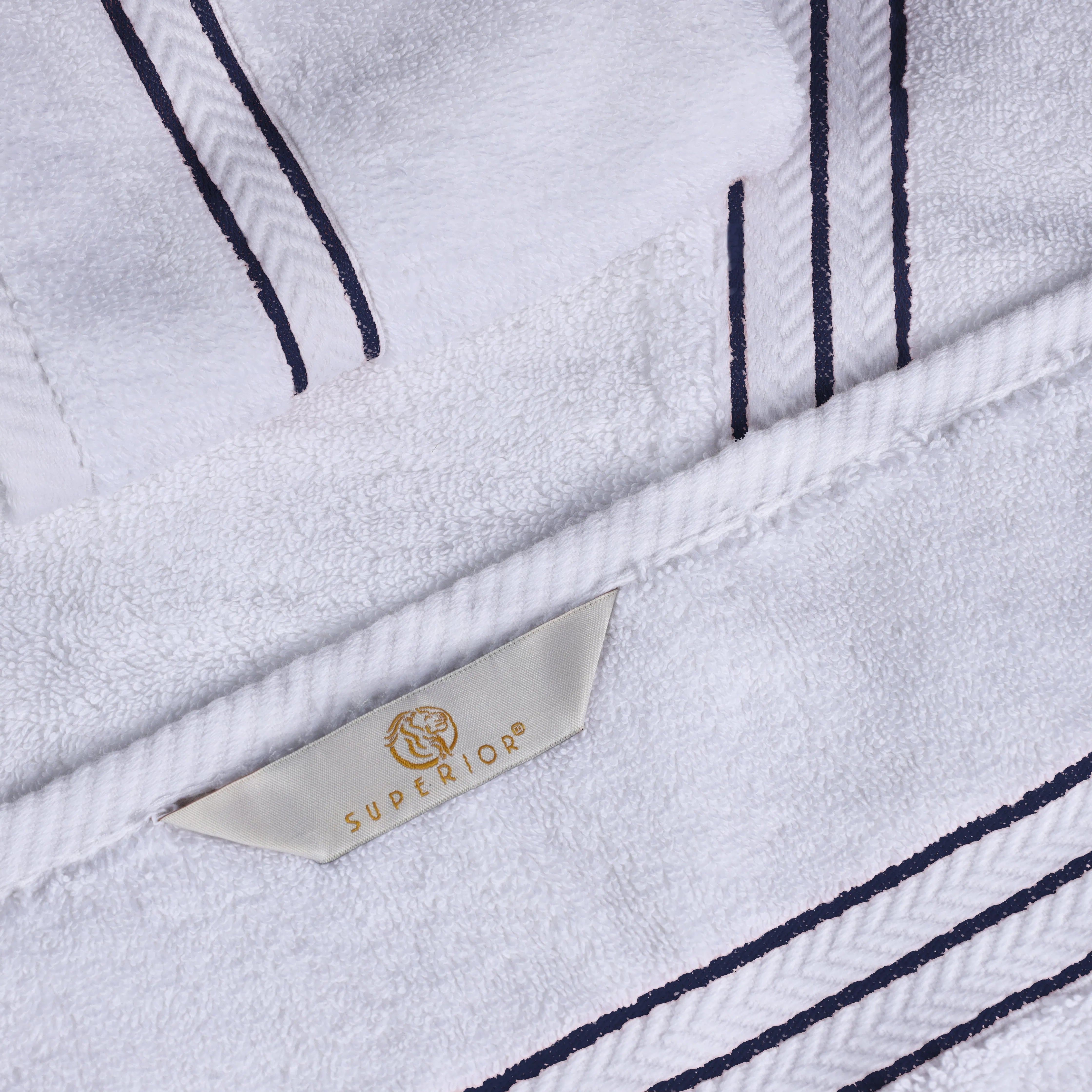 Each towel showcases a classic white color with a decorative chevron dobby border and color-accenting trim, adding an elegant pop of style to your bathroom decor.