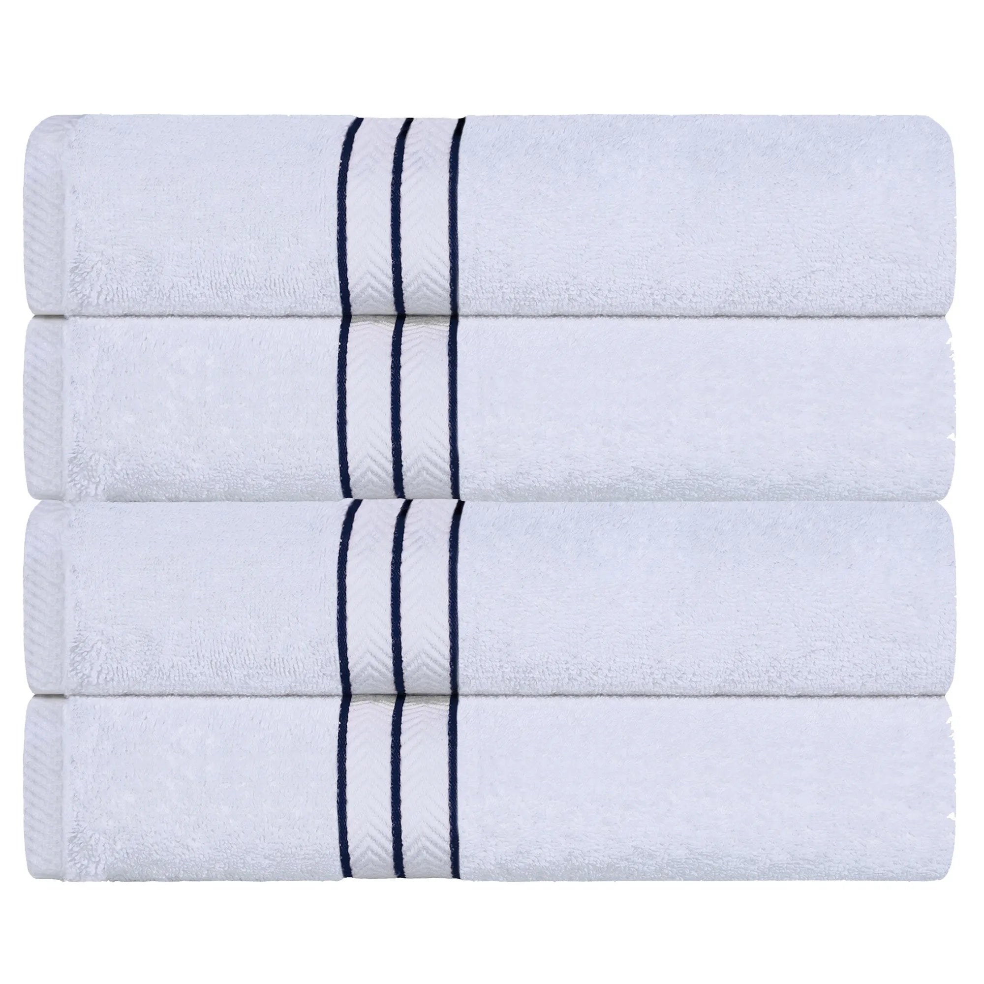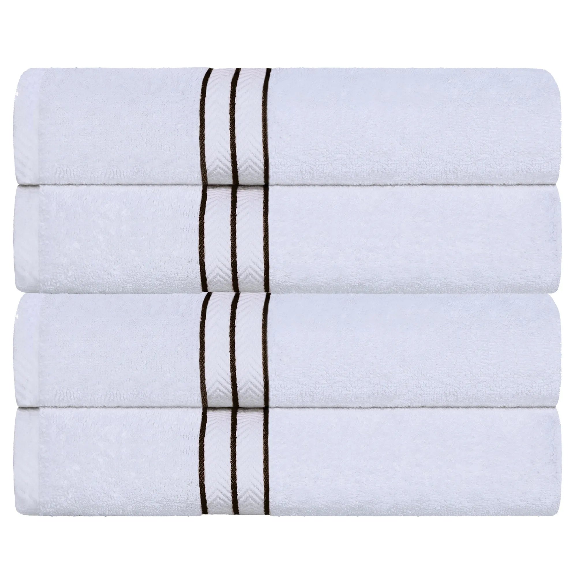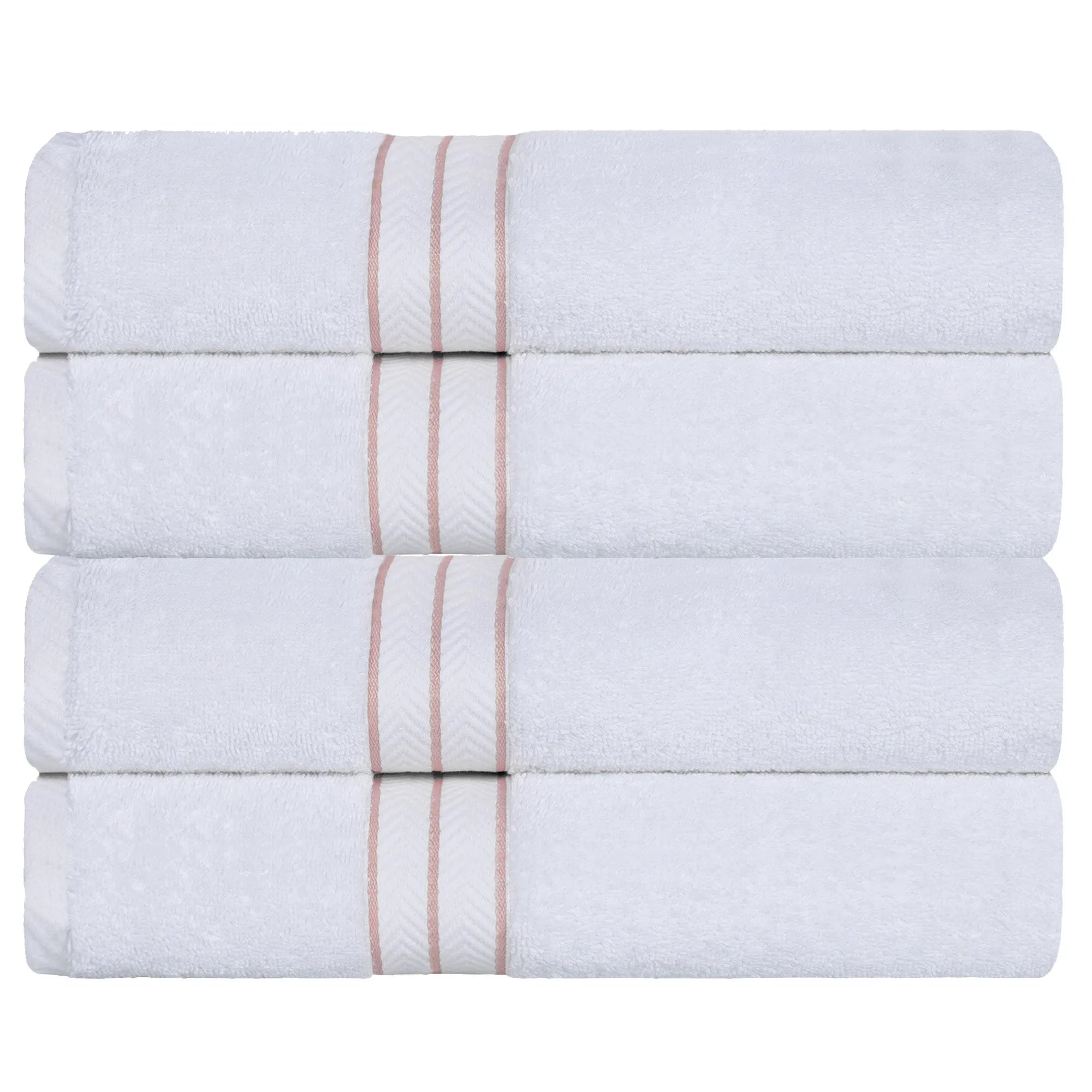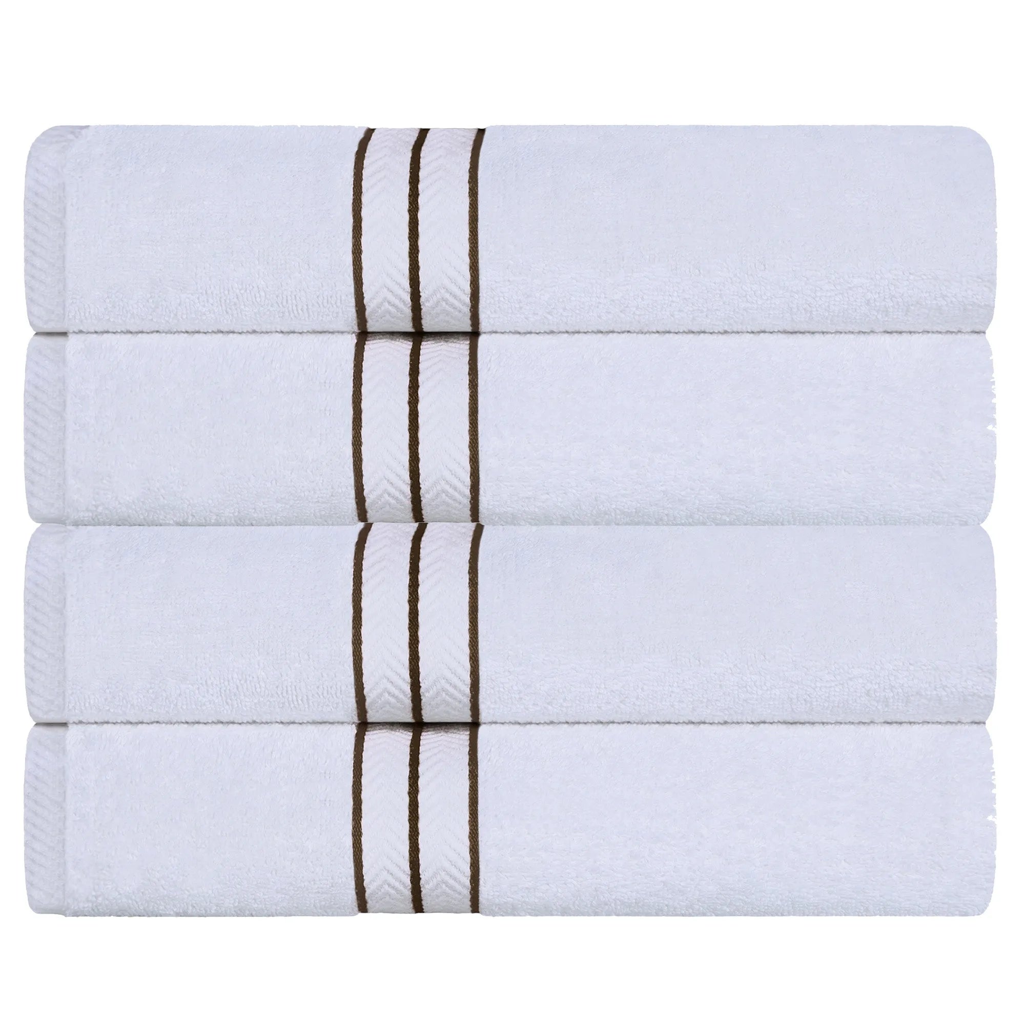 Each towel showcases a classic white color with a decorative chevron dobby border and color-accenting trim, adding an elegant pop of style to your bathroom decor.