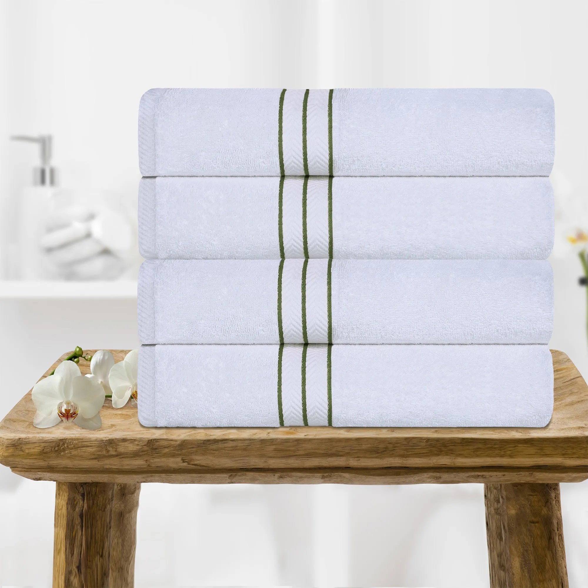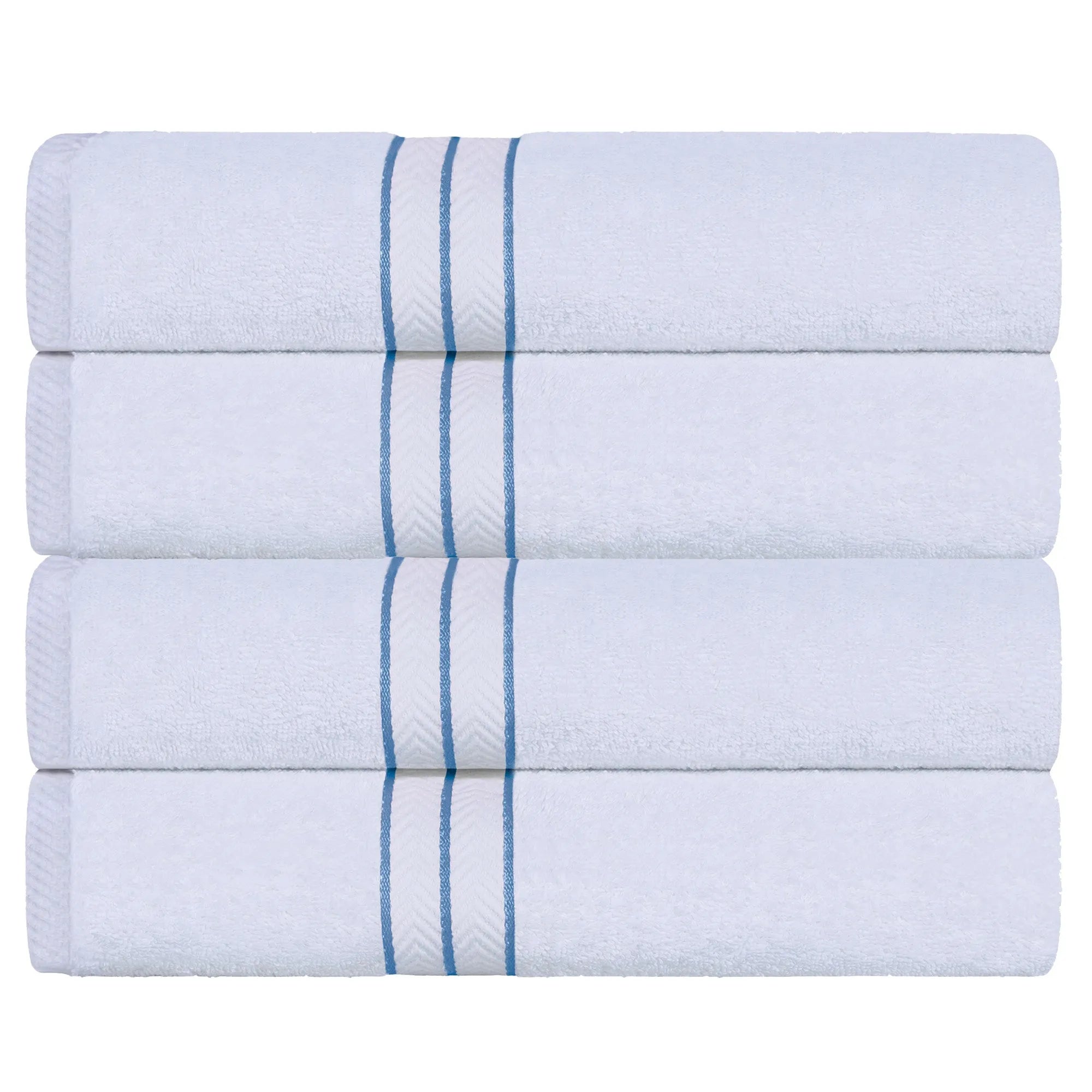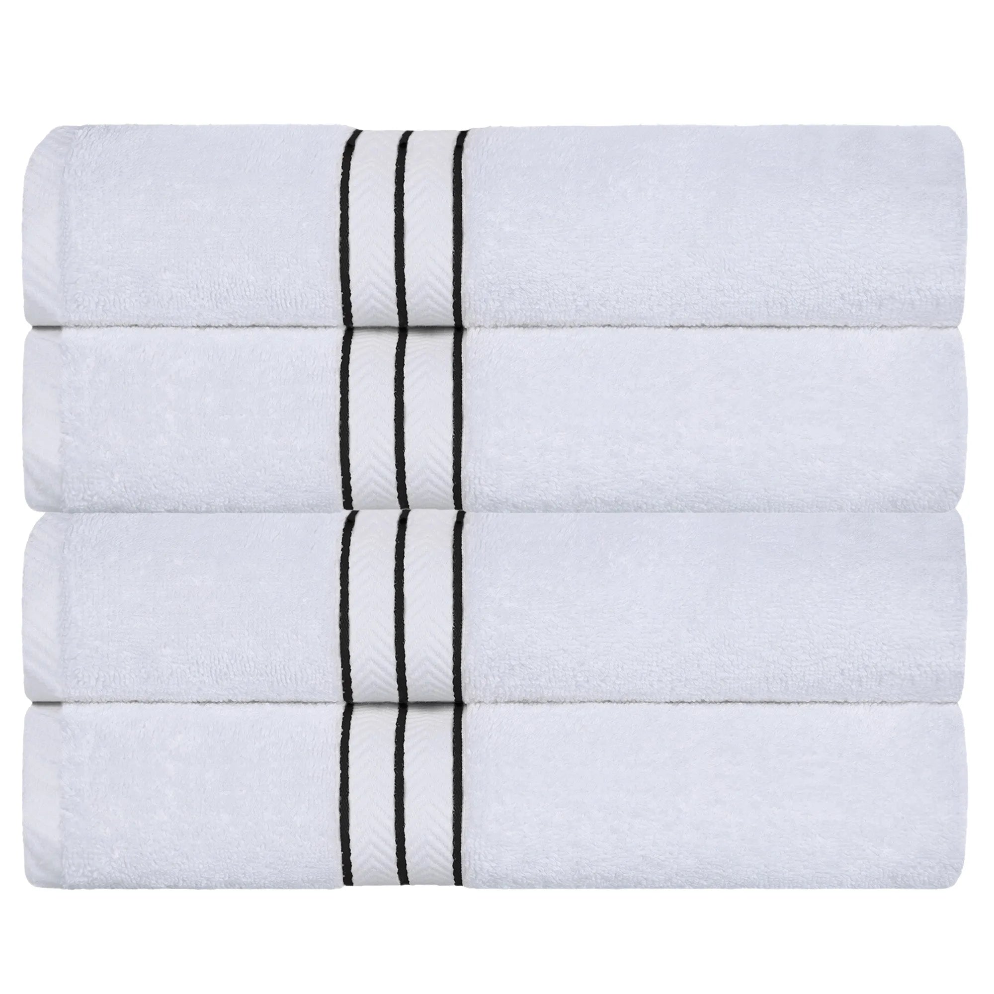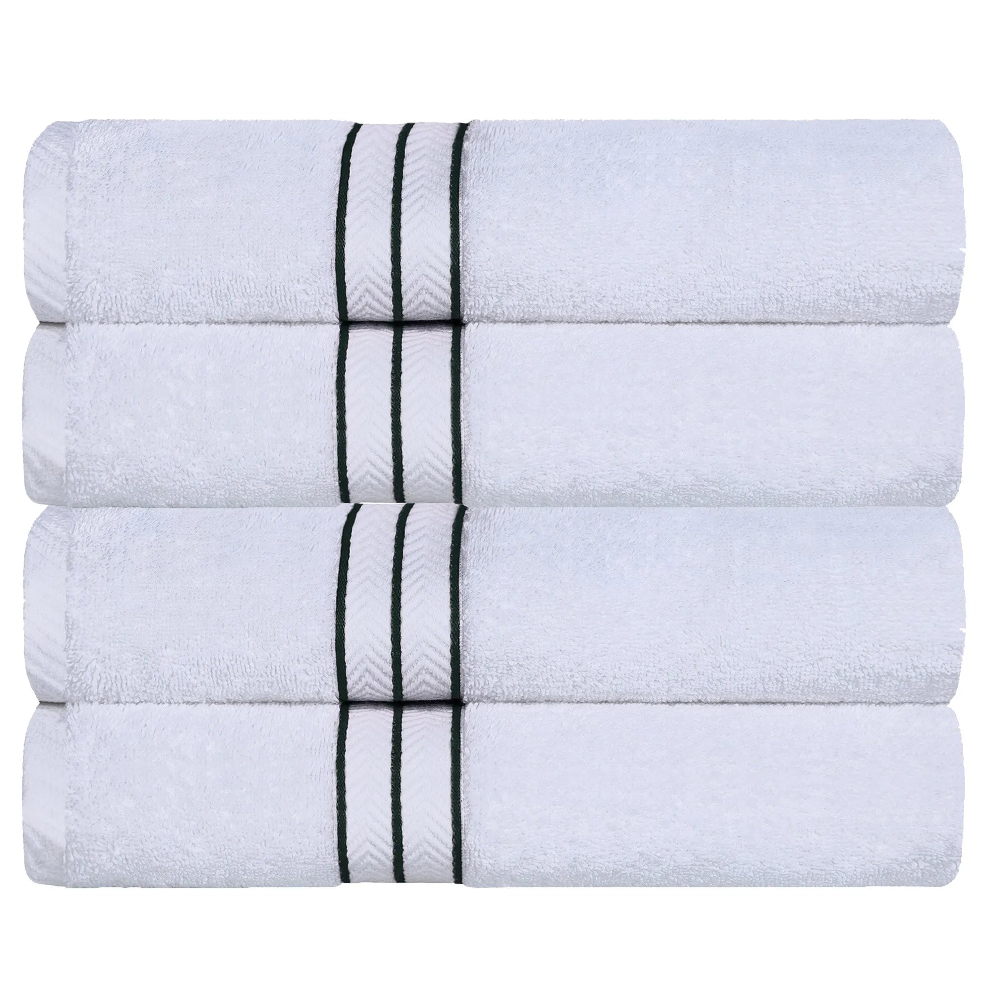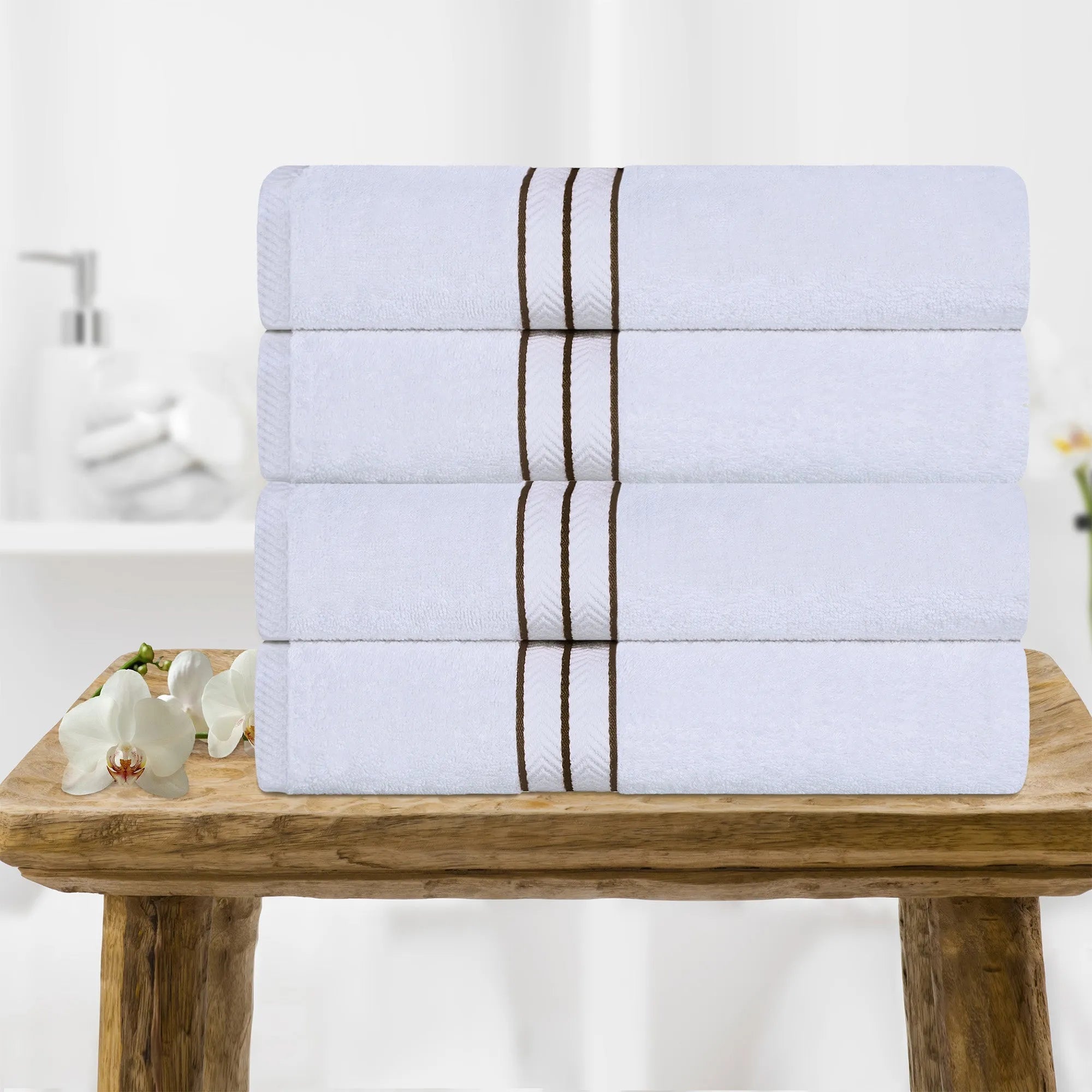 Each towel showcases a classic white color with a decorative chevron dobby border and color-accenting trim, adding an elegant pop of style to your bathroom decor.