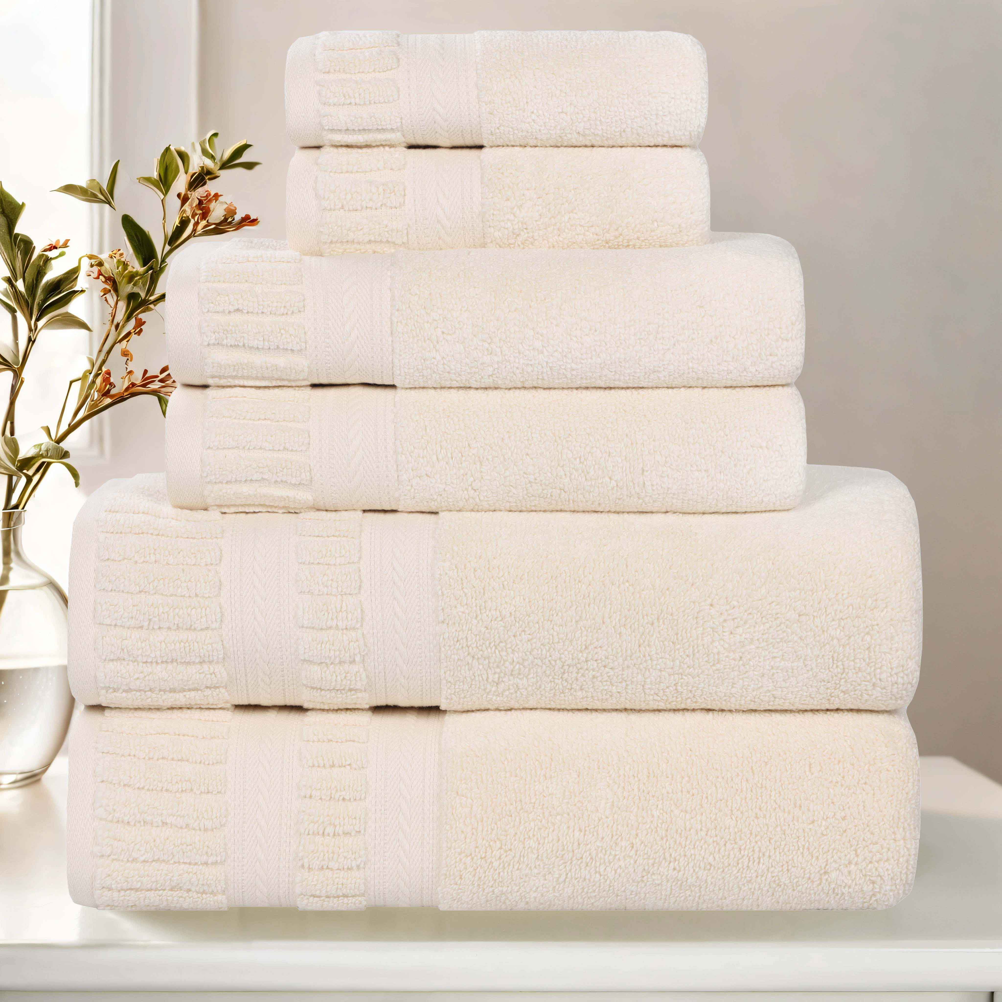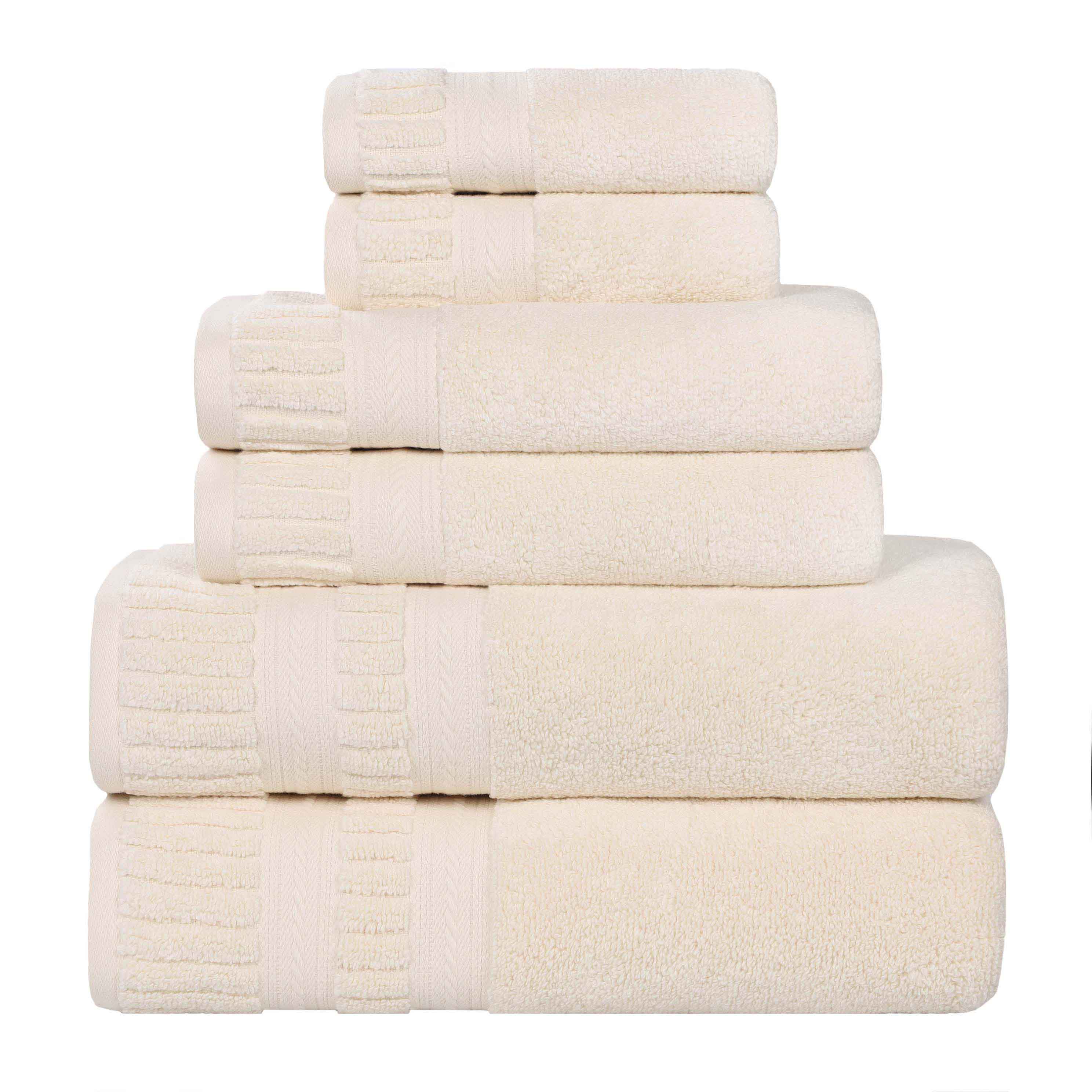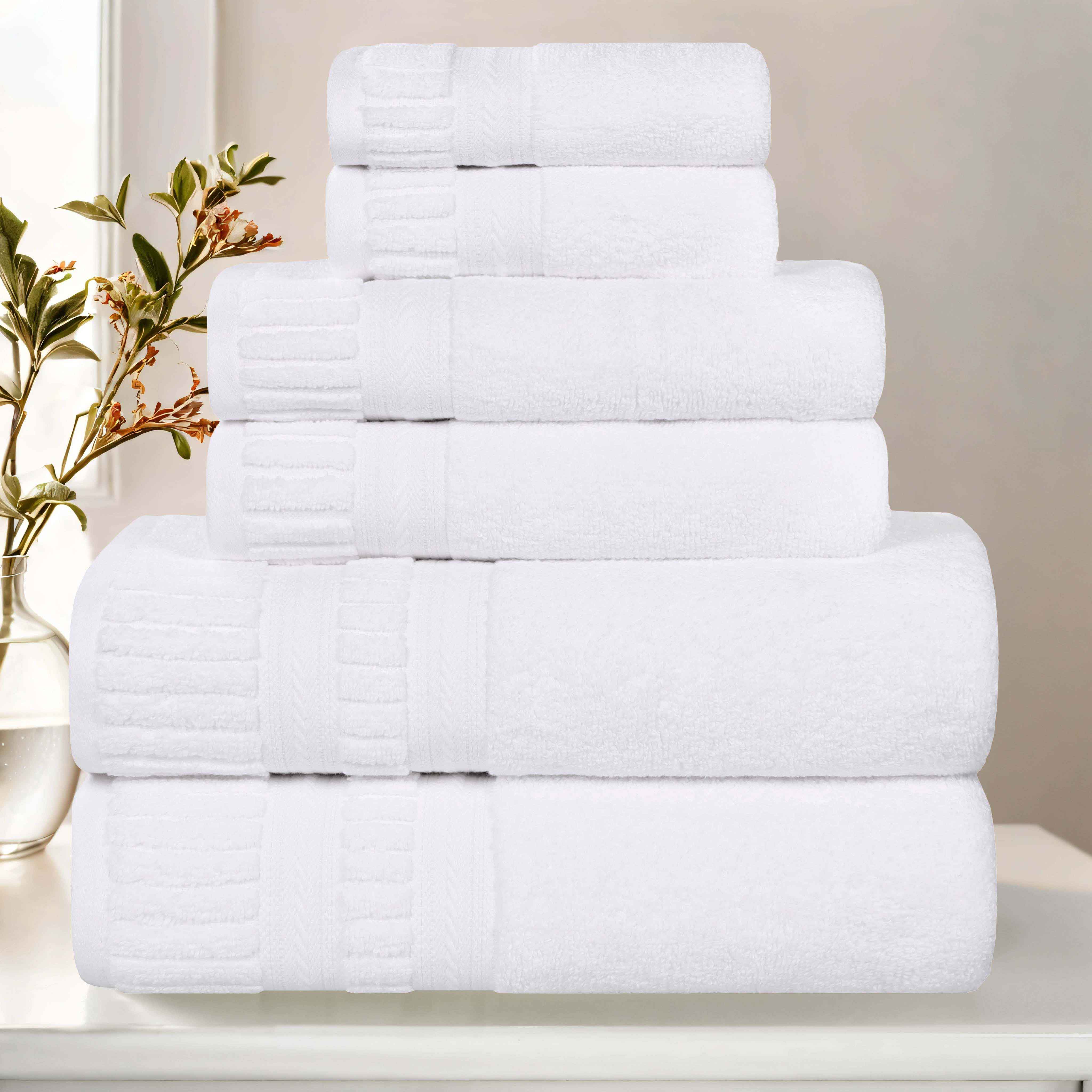 Envelop your family in the enduring comfort and timeless elegance of our Venice Zero Twist Cotton 6 Piece Towel Set. Meticulously crafted from 100% premium cotton, these towels represent the pinnacle of luxurious softness and exceptional durability. Each piece is a testament to artistry and craftsmanship, featuring a symphony of textures that delight the senses. The luxuriously ribbed border, complemented by a delicate dobby weave, creates an aura of understated sophistication that elevates any bathroom decor. The zero-twist construction ensures a feather-light touch against the skin, while the medium weight strikes the perfect balance between lavish absorbency and quick-drying practicality. Experience the difference that quality craftsmanship makes, as these towels become an integral part of your family's cherished moments for years to come.