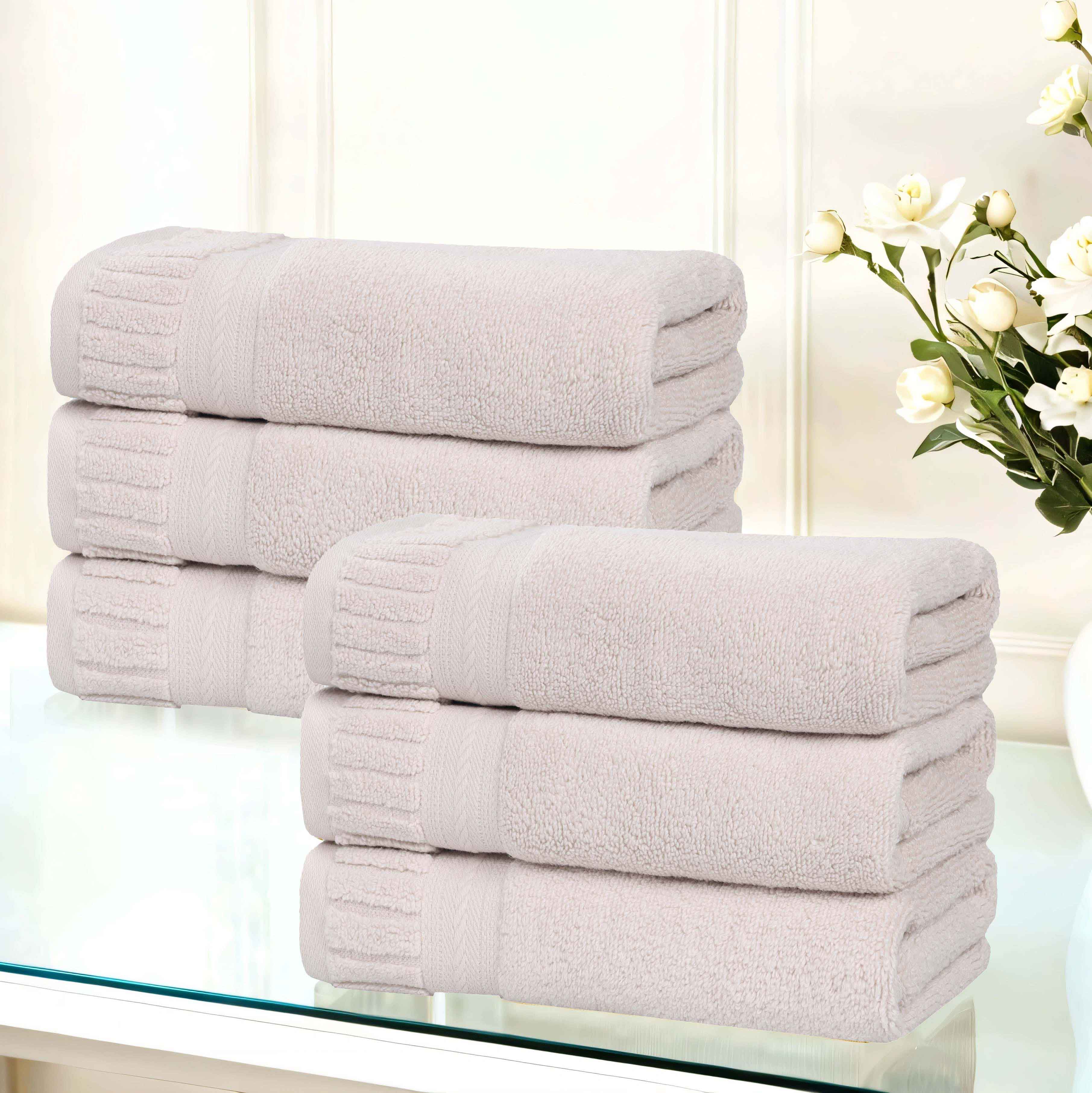 Elevate everyday moments into cherished rituals with our Venice Zero Twist Cotton Hand Towels. Meticulously crafted from the finest 100% cotton, each towel in this distinguished set embodies a harmonious blend of enduring style and exceptional value. The interplay of textures, with a luxuriously ribbed border and a delicate dobby weave, exudes an air of understated sophistication, while the zero-twist construction delivers unparalleled softness and remarkable absorbency. Experience the quick-drying convenience and enduring quality that define a truly discerning home, where even the simplest of tasks become an opportunity for indulgence.
